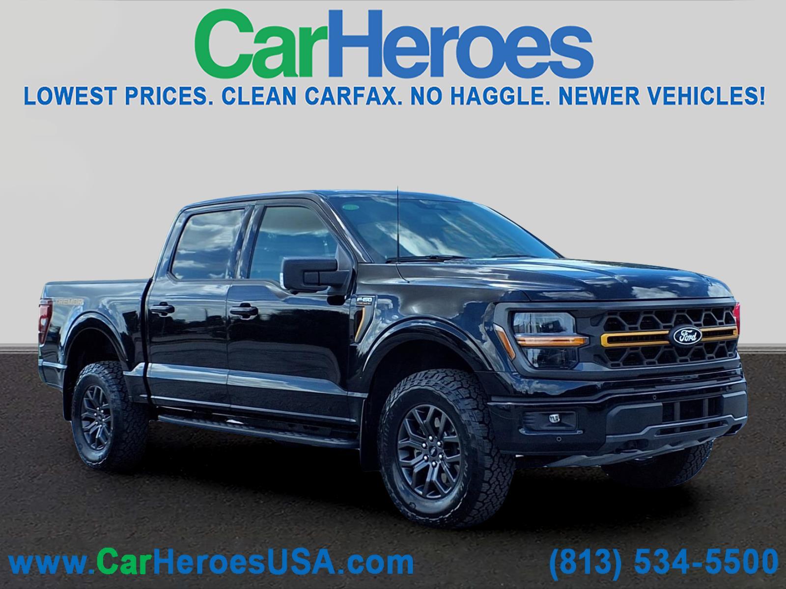 BED UTILITY PACKAGE! TOW/HAUL PACKAGE! CERTIFIED 90 DAYS / 3,000 MILES NATIONWIDE LIMITED WARRANTY ON EVERY QUALIFIED VEHICLE! 4.9 OUT OF 5 STARS! 4,200 GOOGLE REVIEWS! THE HIGHEST RATED DEALER IN FLORIDA! CARHEROES = LOWEST PRICES. LARGEST SELECTION. NO HAGGLE. DRIVE HAPPY! **To receive the lower advertised price or Preferred Payment discounted price, the vehicle must be purchased using one of the following preferred payment methods: Capital One Auto Navigator pre approval, or Financing through the dealership with an Approved lender. **YOU MAY CONTACT THE DEALERSHIP FOR A LIST OF APPROVED LENDERS**. A list of approved lenders may be requested by email or talk to a sales representative. If buyer is purchasing the vehicle using any other payment method CarHeroes price (see carheroesusa.com/inventory) will apply. **All prices advertised on any Credit union or third party lenders buying service or third party website are Preferred Payment discounted prices. Customer may choose to receive the Preferred Payment discounted price if they pay for the vehicle with a preferred payment method.** Odometer is 1485 miles below market average! Recent Arrival! 2025 Ford F-150 Tremor 4WD 4D SuperCrew 3.5L V6 EcoBoost 10-Speed Automatic Agate Black Metallic 4WD, 4 Pickup Box Tie-Down Plates, Bed Utility Package, Electronic Locking w/3.73 Axle Ratio, Integrated Trailer Brake Controller, LED Box Lighting, Power Tailgate, Tow/Haul Package.