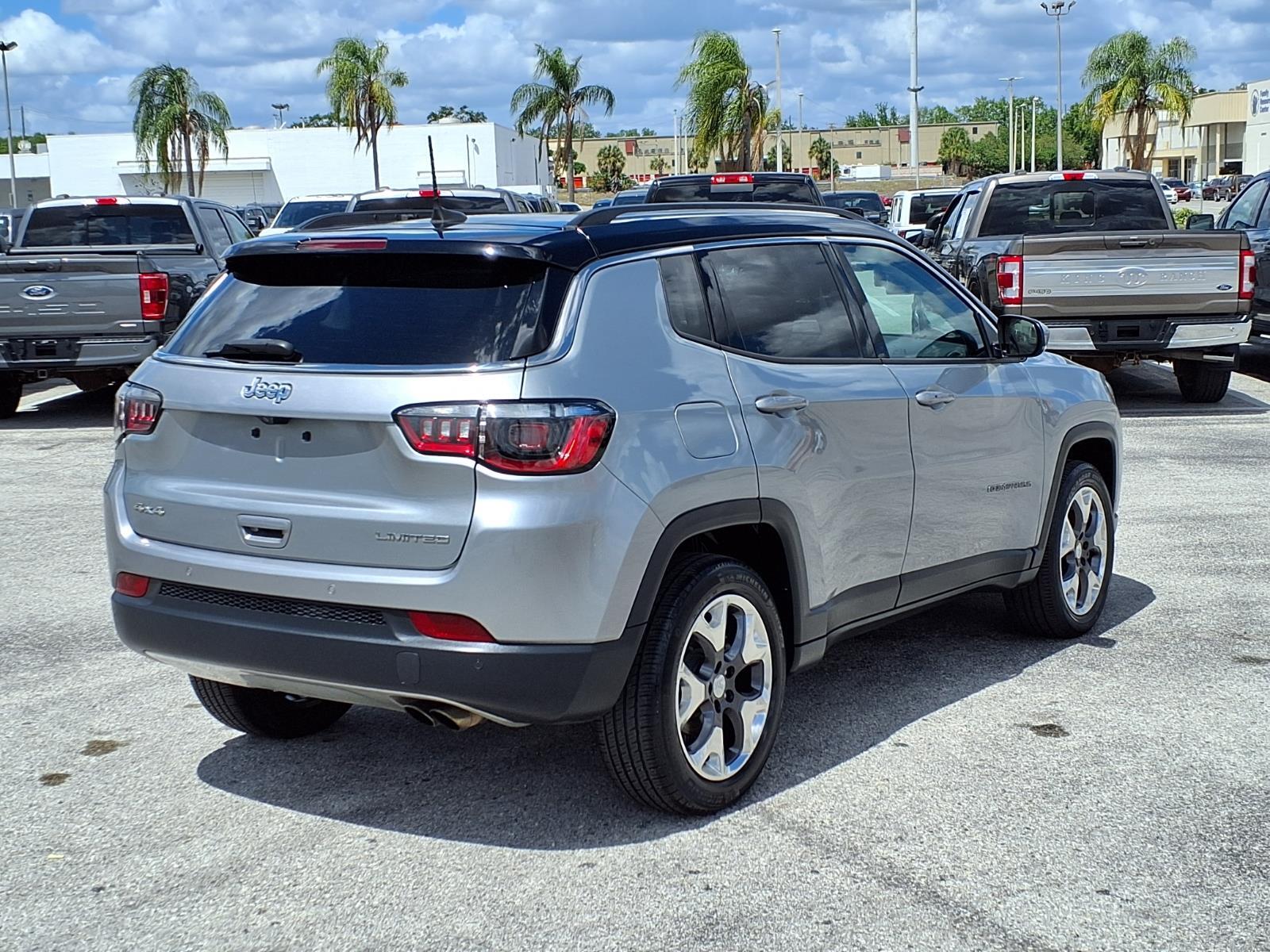 Clean CARFAX. CERTIFIED 90 DAYS / 3,000 MILES NATIONWIDE LIMITED WARRANTY ON EVERY QUALIFIED VEHICLE! 4.9 OUT OF 5 STARS! 4,200 GOOGLE REVIEWS! THE HIGHEST RATED DEALER IN FLORIDA! CARHEROES = LOWEST PRICES. LARGEST SELECTION. NO HAGGLE. DRIVE HAPPY! **To receive the lower advertised price or Preferred Payment discounted price, the vehicle must be purchased using one of the following preferred payment methods: Capital One Auto Navigator pre approval, or Financing through the dealership with an Approved lender. **YOU MAY CONTACT THE DEALERSHIP FOR A LIST OF APPROVED LENDERS**. A list of approved lenders may be requested by email or talk to a sales representative. If buyer is purchasing the vehicle using any other payment method CarHeroes price (see carheroesusa.com/inventory) will apply. **All prices advertised on any Credit union or third party lenders buying service or third party website are Preferred Payment discounted prices. Customer may choose to receive the Preferred Payment discounted price if they pay for the vehicle with a preferred payment method.** Recent Arrival! 2021 Jeep Compass Limited 4WD 4D Sport Utility 2.4L I4 9-Speed 948TE Automatic Billet Silver Metallic Clearcoat 4WD, Power Front/Fixed Rear Full Sunroof, Premium Alpine Speaker System, Quick Order Package 2GG, Sun and Sound Group.