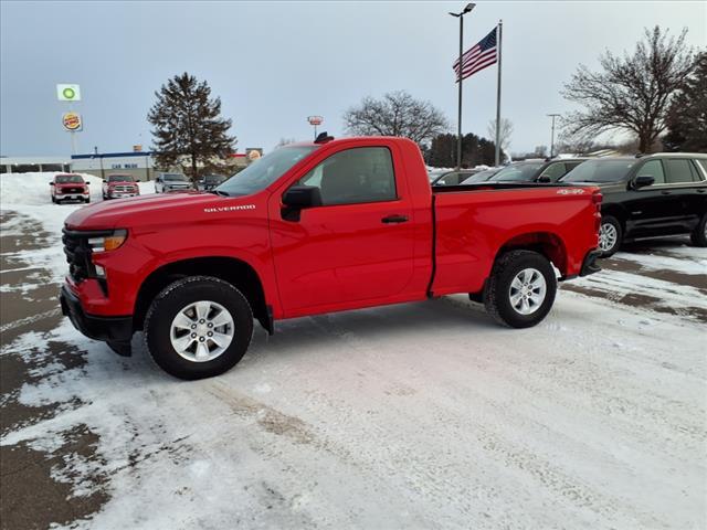 Red Hot 2024 Chevrolet Silverado 1500 WT 4WD 8-Speed Automatic 2.7L I4 Turbocharged DOHC 16V LEV3-SULEV30 310hp 8-Speed Automatic, 4WD, Black Cloth.