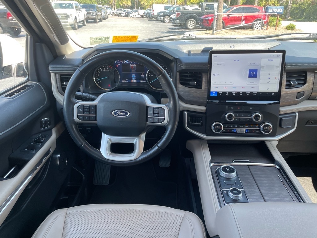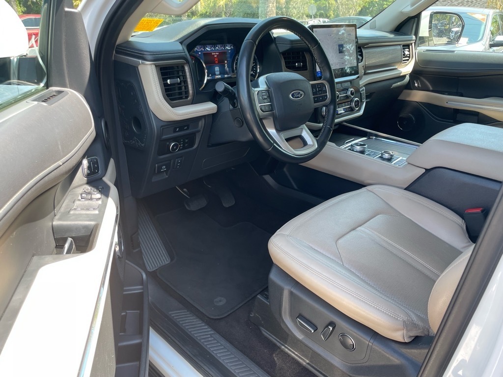 2023 Oxford White Ford Expedition Max Limited EcoBoost 3.5L V6 GTDi DOHC 24V Twin Turbocharged 10-Speed Automatic 4WD Priced below KBB Fair Purchase Price! Clean CARFAX. 12 Speakers, 2nd Row Power-Folding 40/20/40 Leather Bench Seat, 3.31 Axle Ratio, 3rd row seats: split-bench, 4-Wheel Disc Brakes, ABS brakes, Adjustable pedals, Air Conditioning, Alloy wheels, AM/FM radio: SiriusXM with 360L, Auto High-beam Headlights, Auto-dimming door mirrors, Auto-dimming Rear-View mirror, Automatic temperature control, Brake assist, Bumpers: body-color, Compass, Delay-off headlights, Driver door bin, Driver vanity mirror, Dual front impact airbags, Dual front side impact airbags, Electronic Stability Control, Emergency communication system: SYNC 4 911 Assist, Equipment Group 301A Mid Package, Exterior Parking Camera Rear, Four wheel independent suspension, Front anti-roll bar, Front Bucket Seats, Front Center Armrest, Front dual zone A/C, Front fog lights, Front reading lights, Fully automatic headlights, Garage door transmitter, Heated & Ventilated Leather Front Captains Chairs, Heated door mirrors, Heated front seats, Heated rear seats, Heated steering wheel, Illuminated entry, Leather steering wheel, Low tire pressure warning, Memory seat, Navigation system: Connected Navigation, Occupant sensing airbag, Outside temperature display, Overhead airbag, Overhead console, Panic alarm, Passenger door bin, Passenger vanity mirror, Pedal memory, Power door mirrors, Power driver seat, Power Liftgate, Power moonroof, Power passenger seat, Power steering, Power windows, Radio data system, Radio: B&O Sound System by Bang & Olufsen, Rain sensing wipers, Rear air conditioning, Rear anti-roll bar, Rear window defroster, Rear window wiper, Reclining 3rd row seat, Remote keyless entry, Second Row Power Windows Removal, Security system, SiriusXM w/360L, Speed control, Speed-sensing steering, Speed-Sensitive Wipers, Split folding rear seat, Spoiler, Steering wheel memory, Steering wheel mounted