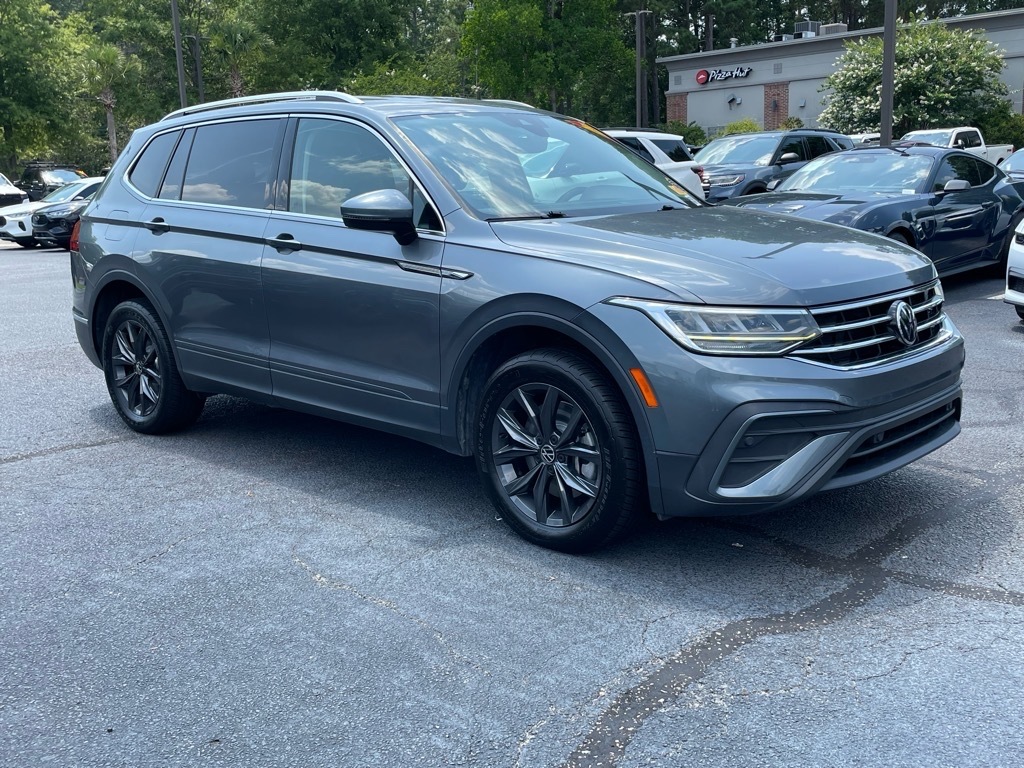 2022 Platinum Gray Metallic Volkswagen Tiguan 2.0T SE 2.0L TSI DOHC 8-Speed Automatic with Tiptronic FWD Priced below KBB Fair Purchase Price! Clean CARFAX. 3-Row Rubber Monster Mats w/Logo Kit (Set of 5), 3.33 Axle Ratio, 3rd row seats: bench, 4-Wheel Disc Brakes, 4-Wheel Independent Suspension, 6 Speakers, ABS brakes, Air Conditioning, Alloy wheels, AM/FM radio: SiriusXM with 360L, Auto-Dimming Rear-View Mirror, Auto-dimming Rear-View mirror, Automatic temperature control, Brake assist, Bumpers: body-color, Cargo Area Retractable Privacy Cover, Compass, Delay-off headlights, Driver door bin, Driver vanity mirror, Dual front impact airbags, Dual front side impact airbags, Electronic Stability Control, Emergency communication system: Car-Net, Exterior Parking Camera Rear, First Aid Kit, Four wheel independent suspension, Front anti-roll bar, Front Bucket Seats, Front Center Armrest, Front dual zone A/C, Front reading lights, Fully automatic headlights, Heated door mirrors, Heated Front Comfort Seats, Heated front seats, Heavy Duty Trunk Liner w/VW CarGo Blocks, Illuminated entry, Leather Shift Knob, Low tire pressure warning, Occupant sensing airbag, Outside temperature display, Overhead airbag, Overhead console, Panic alarm, Passenger door bin, Passenger vanity mirror, Perforated V-Tex Leatherette Seating Surfaces, Power door mirrors, Power driver seat, Power Liftgate, Power steering, Power windows, Radio data system, Radio: MIB3 Composition Media AM/FM/HD, Rain sensing wipers, Rear anti-roll bar, Rear reading lights, Rear seat center armrest, Rear window defroster, Rear window wiper, Remote keyless entry, Roadside Assistance Kit, Roof rack: rails only, Security system, Speed control, Speed-sensing steering, Split folding rear seat, Spoiler, Steering wheel mounted audio controls, Tachometer, Telescoping steering wheel, Tilt steering wheel, Traction control, Trip computer, Turn signal indicator mirrors, Variably intermittent wipers, VW Care, Wheels: 18Dark Graphite