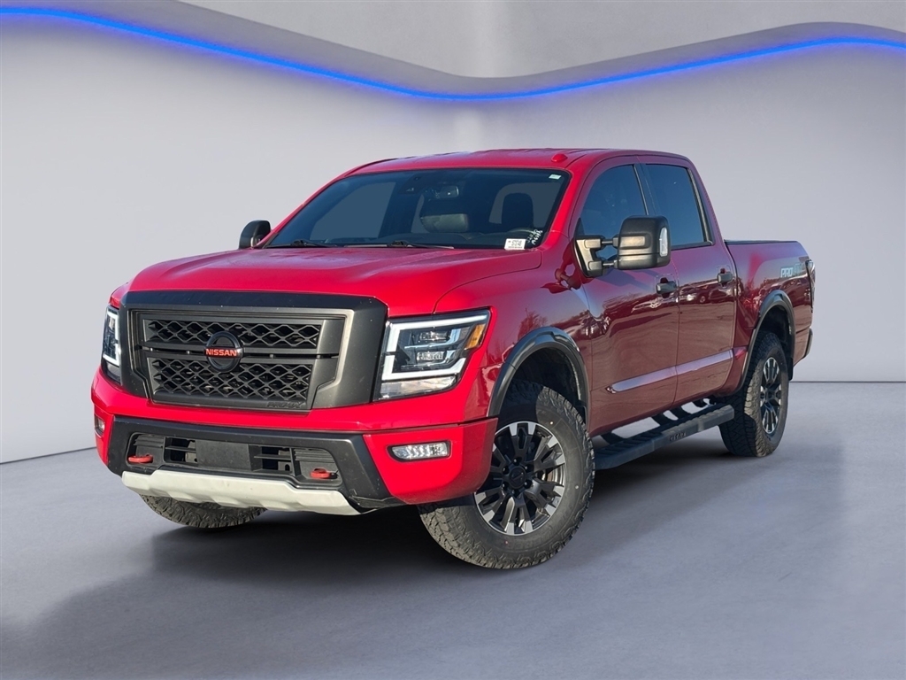 Priced below KBB Fair Purchase Price! CARFAX One-Owner. Certified.2021 Nissan Titan PRO-4X Red Alert 4D Crew Cab 4WD 5.6L V8 DOHC 32V 400hp 9-Speed AutomaticBluetooth, Hands Free Phone, Service Records Available, Fully Detailed, We have all of your financing needs covered. Ask us how to get pre-approved today!, Titan PRO-4X, MTN VIEW CERTIFIED Certified, 4D Crew Cab, 5.6L V8 DOHC 32V 400hp, 9-Speed Automatic, 4WD, Red Alert, Black Vinyl, 3.692 Axle Ratio, 4-Wheel Disc Brakes, 6 Speakers, ABS brakes, Air Conditioning, All Season Floor Mats, Alloy wheels, AM/FM radio: SiriusXM, Auto High-beam Headlights, Auto-dimming Rear-View mirror, Auto-leveling suspension, Automatic temperature control, Black Tow Mirror Kit, Blind Spot Warning, Brake assist, Cloth Seat Trim w/Vinyl Bolsters, Compass, Delay-off headlights, Driver door bin, Driver vanity mirror, Dual front impact airbags, Dual front side impact airbags, Electronic Stability Control, Emergency communication system: NissanConnect Services, Front anti-roll bar, Front Bucket Seats, Front Captain's Seats, Front Center Armrest, Front dual zone A/C, Front fog lights, Front reading lights, Front wheel independent suspension, Fully automatic headlights, Garage door transmitter: HomeLink, Heated door mirrors, Illuminated entry, Knee airbag, Leather steering wheel, Low tire pressure warning, Navigation system: NissanConnect Navigation, NissanConnect featuring Apple CarPlay and Android Auto, Occupant sensing airbag, Off Road Protection Package, Outside temperature display, Overhead airbag, Overhead console, Panic alarm, Passenger door bin, Passenger vanity mirror, Power door mirrors, Power driver seat, Power steering, Power windows, PRO-4X Badged Floor Mats (DISC), PRO-4X Illuminated Kick Plate, Pro4X Mud Flaps, Pro4X Rugged Step Boards, Radio data system, Radio: NissanConnect w/Navigation, Rain sensing wipers, Rear anti-roll bar, Rear Parking Sensors, Rear seat center armrest, Rear step bumper, Rear window defroster, Remote keyless entry, Security system, Speed control, Speed-sensing steering, Speed-Sensitive Wipers, Split folding rear seat, Steering wheel mounted audio controls, Tachometer, Telescoping steering wheel, Tilt steering wheel, Traction control, Trip computer, Variably intermittent wipers, Voltmeter, Wheels: 18 x 8 Painted Dark Finish Alloy, Titan PRO-4X, 4D Crew Cab, 5.6L V8 DOHC 32V 400hp, 9-Speed Automatic, 4WD, Red Alert, Black Vinyl.Mtn. View @ 153 prides itself on value p