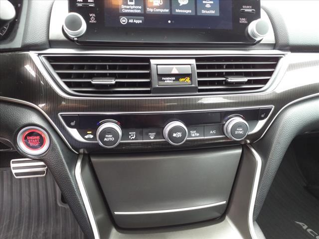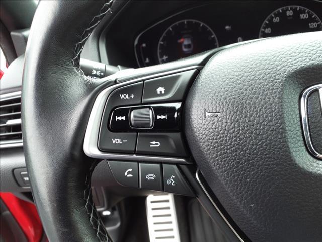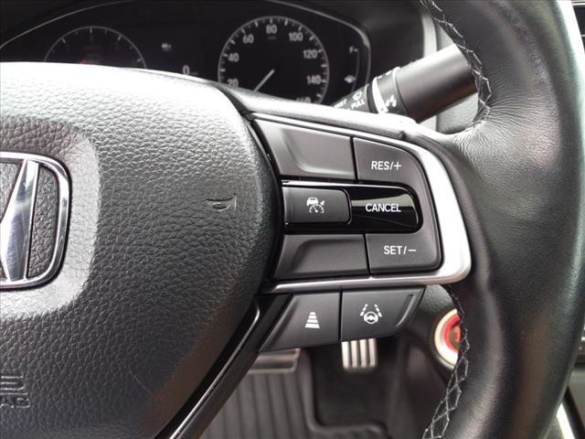 Dual front airbags, front seat-mounted side impact airbags, dual front/rear side curtain airbags with rollover sensor, dual front seat knee airbags, four-wheel disc brakes with anti-lock, brake assist, electronic brake distribution, hill start assist, engine immobilizer, rear-view camera, LED daytime running lights, automatic LED headlights, collision mitigation braking system, road departure mitigation system, forward collision warning, lane departure warning, lane keeping assist system, adaptive cruise control, traffic sign recognition system, automatic high-beam headlights, security system, push-button engine start, Bluetooth hands-free phone system, and tire pressure monitoring system. Sport adds LED fog lights and HondaLink.