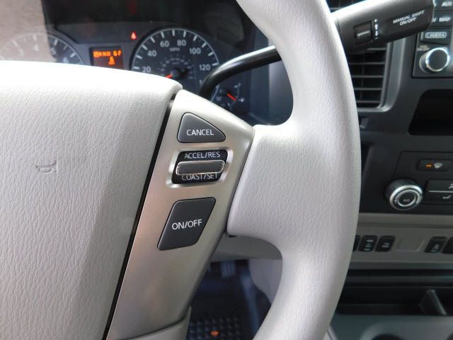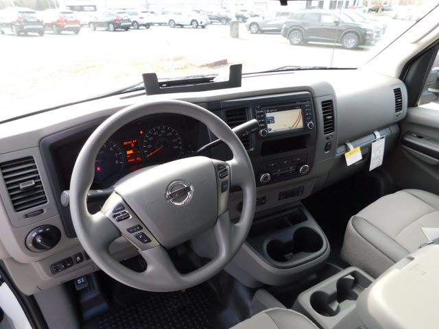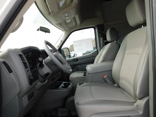 Inside the cab is a roomy comfortable interior with wide, supportive seating and an expansive instrument panel. The passenger seat includes a segment-exclusive fold-down feature, providing a convenient worktable. An available lockable center console offers innovative storage compartments and space to hold binders, hanging file folders and a laptop computer. Other convenient storage spaces include a wide overhead console (available with High Roof models), underseat storage drawers (NV2500 HD and NV3500 HD models) and large door pockets.