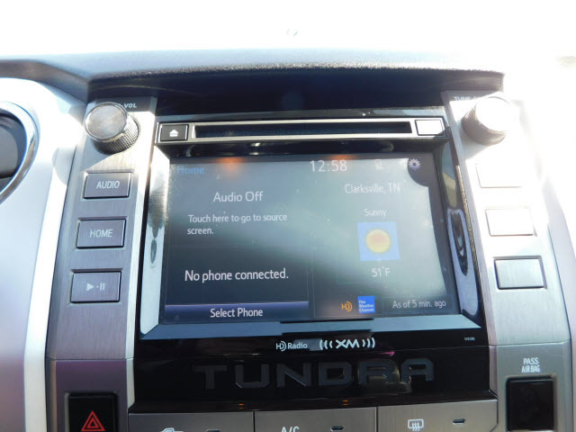 Dual front airbags, dual front seat side-impact airbags, dual front seat knee airbags, dual roll-sensing side curtain airbags, four-wheel disc brakes with anti-lock, brake assist, electronic brake force distribution, smart stop technology, traction control, vehicle stability control, automatic limited slip differential, pre-collision system with pedestrian protection, lane departure alert, sway warning system, automatic high beams, dynamic radar cruise control, daytime running lights, automatic power door locks, remote keyless entry, trailer sway control, anti theft system, engine immobilizer, and tire pressure monitoring system. SR5 Double Cab adds fog lights. TRD Double Cab adds navigation system. Limited Double Cab adds Bluetooth hands-free phone system and integrated trailer brake controller. Platinum CrewMax adds front and rear parking assist sonar system, blind spot monitor, and rear cross traffic alert.