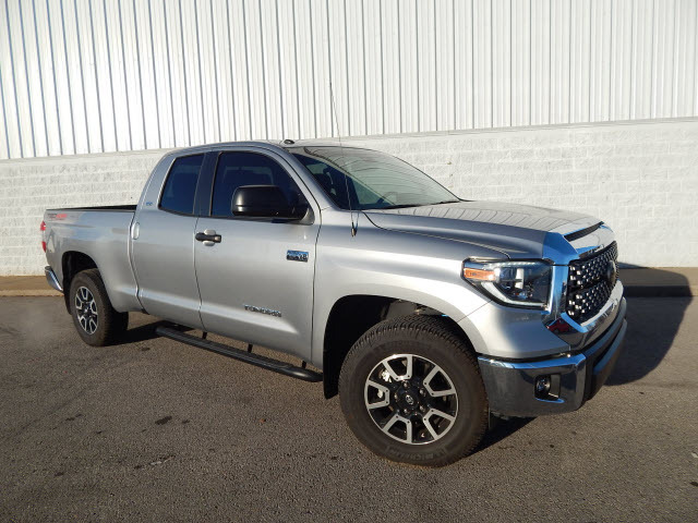 The brawny chiseled look of the Tundra is the ideal platform for the optional TRD Pro Off-Road Package. Model specific features include: split five-spoke TRD Off-Road Package alloy wheels with black accents and all-terrain P275/65R18 tires, trail-tuned Bilstein shock absorbers, engine skid plate, fuel tank skid plate, front tow hooks, LED fog lights (SR5), TRD Off Road floor mats (SR5/Limited), and bed side TRD Off-Road decal.