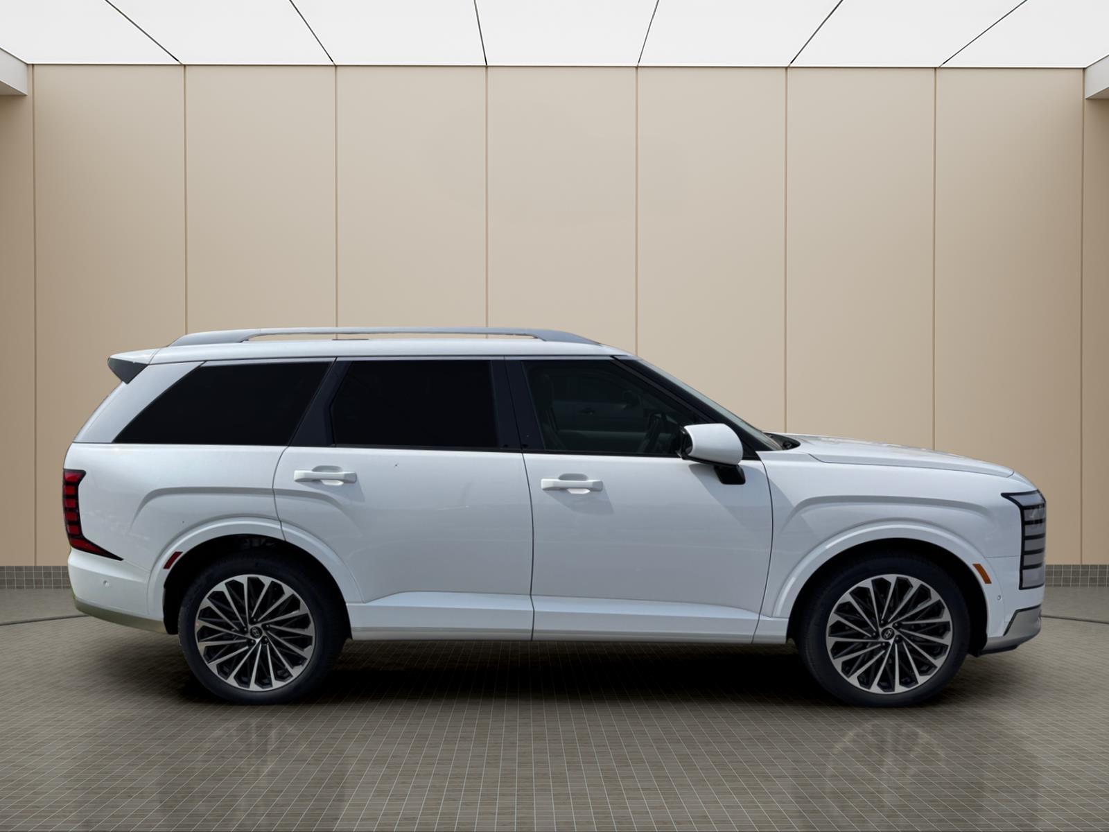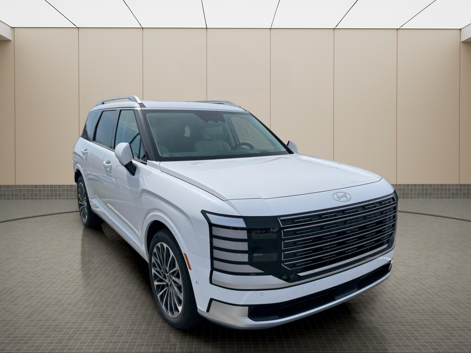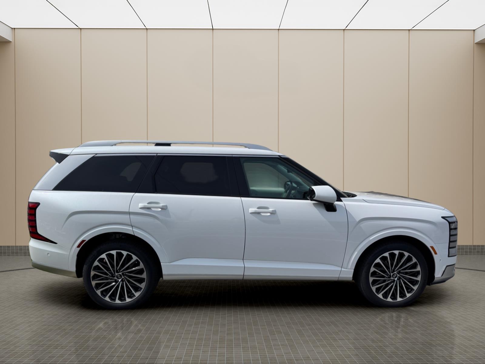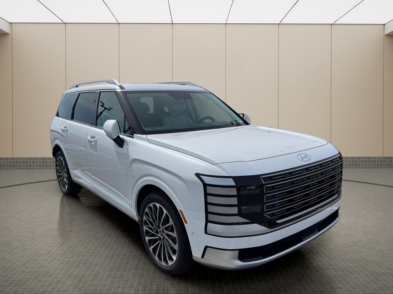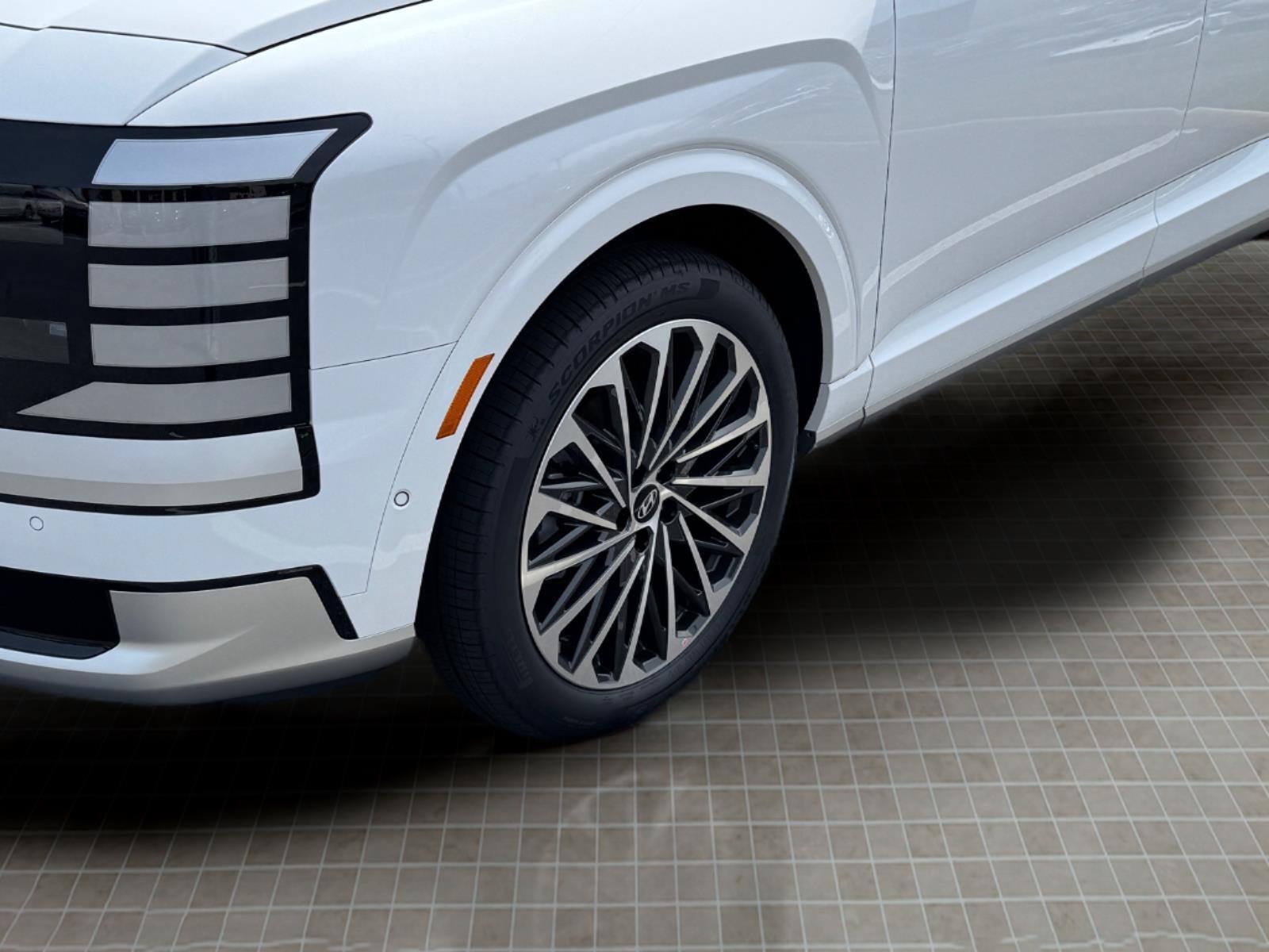INFORMATION ABOUT THIS VEHICLE AND IT FEATURES:, 2.5L Turbocharged GDI 4-Cylinder Hybrid. Option Group 01, 2.5L Turbocharged GDI 4-Cylinder Hybrid, 100W Charging Cable, 14 Speakers, 3rd row seats: split-bench, 4-Wheel Disc Brakes, ABS brakes, Air Conditioning, Alloy wheels, AM/FM radio: SiriusXM, Apple CarPlay & Android Auto, Audio memory, Auto High-beam Headlights, Auto-dimming door mirrors, Auto-dimming Rear-View mirror, Auto-leveling suspension, Automatic temperature control, Brake assist, Bumpers: body-color, Cargo Cover, Cargo Net, Carpeted Floor Mats, Compass, Delay-off headlights, Driver door bin, Driver vanity mirror, Dual front impact airbags, Dual front side impact airbags, Electronic Stability Control, Emergency communication system: None, Exterior Parking Camera Rear, First Aid Kit, Four wheel independent suspension, Front anti-roll bar, Front Bucket Seats, Front Center Armrest, Front dual zone A/C, Front reading lights, Fully automatic headlights, Garage door transmitter: HomeLink, Genuine wood console insert, Genuine wood dashboard insert, Heads-Up Display, Heated and Ventilated Front Bucket Seats, Heated door mirrors, Heated front seats, Heated rear seats, Heated steering wheel, HVAC memory, Illuminated entry, Knee airbag, Leather steering wheel, Low tire pressure warning, Memory seat, Navigation System, Occupant sensing airbag, Outside temperature display, Overhead airbag, Overhead console, Panic alarm, Passenger door bin, Passenger vanity mirror, Power door mirrors, Power driver seat, Power Liftgate, Power moonroof, Power passenger seat, Power steering, Power windows, Premium Nappa Leather Seat Trim, Radio data system, Radio: Infotainment Navigation System, Rain sensing wipers, Rear air conditioning, Rear anti-roll bar, Rear audio controls, Rear reading lights, Rear side impact airbag, Rear window defroster, Rear window wiper, Reclining 3rd row seat, Remote keyless entry, Security system, Speed control, Split folding rear seat, Spoiler, Steering wheel mounted audio controls, Tachometer, Telescoping steering wheel, Tilt steering wheel, Traction control, Trip computer, Turn signal indicator mirrors, Variably intermittent wipers, Ventilated front seats, Ventilated rear seats, and Wheels: 21x 8.5J Alloy. Creamy White Pearl 2026 Hyundai Palisade Hybrid Calligraphy AWD 6-Speed Automatic 2.5L Turbocharged GDI 4-Cylinder Hybrid 29/30 City/Highway MPG