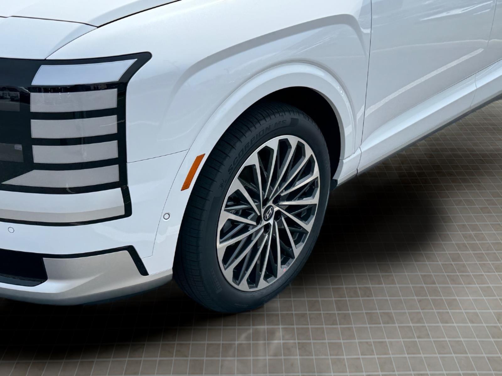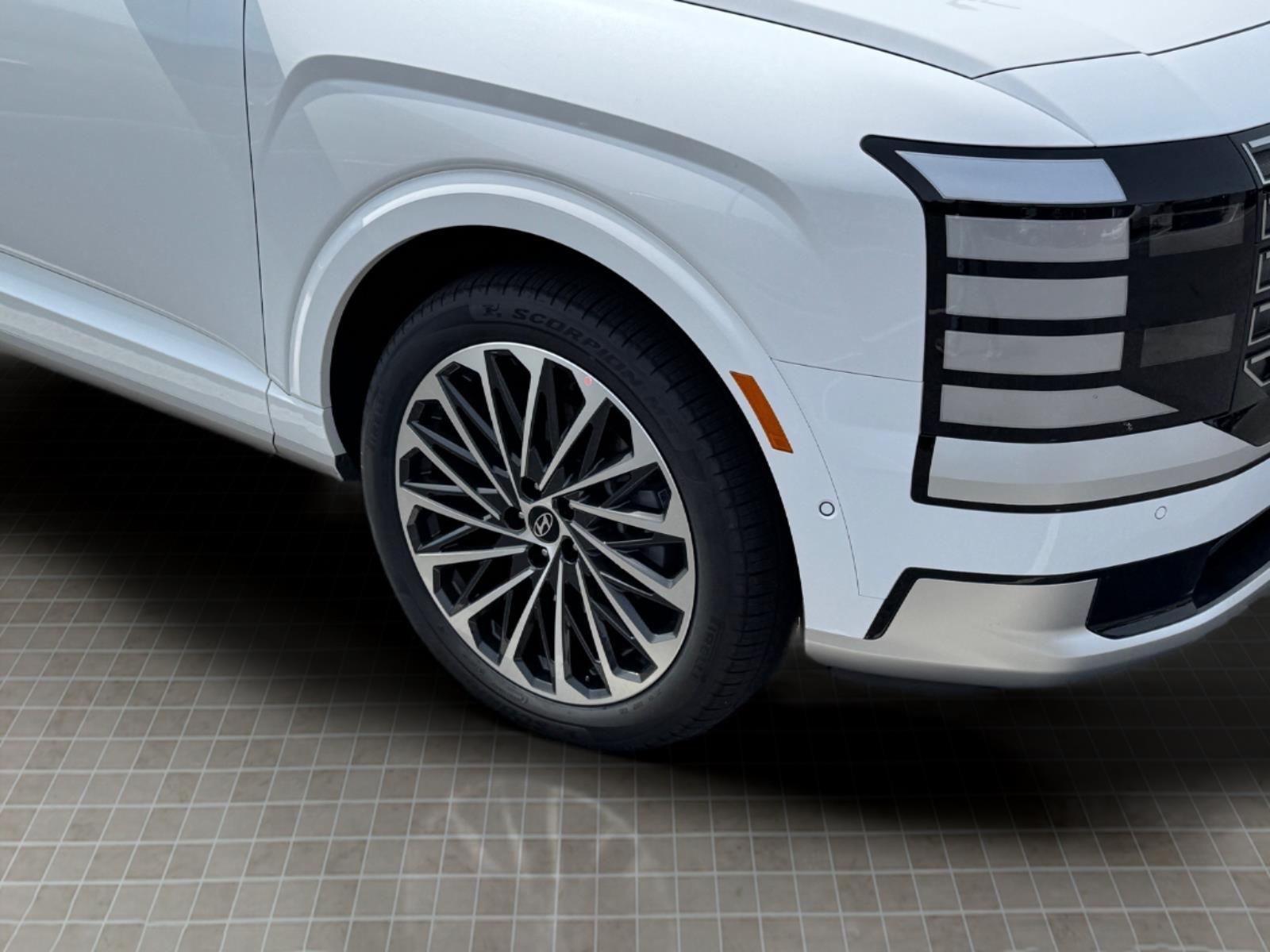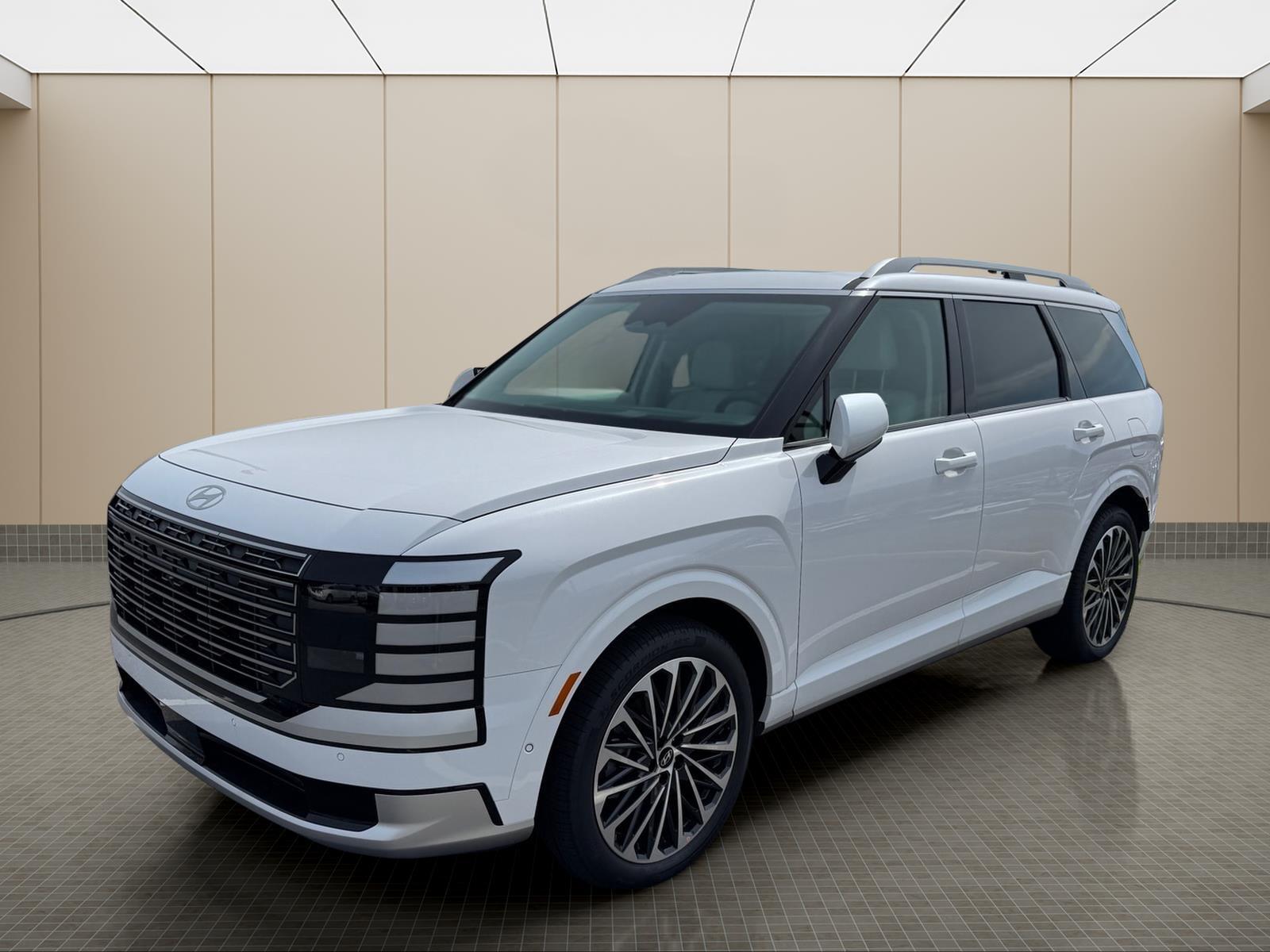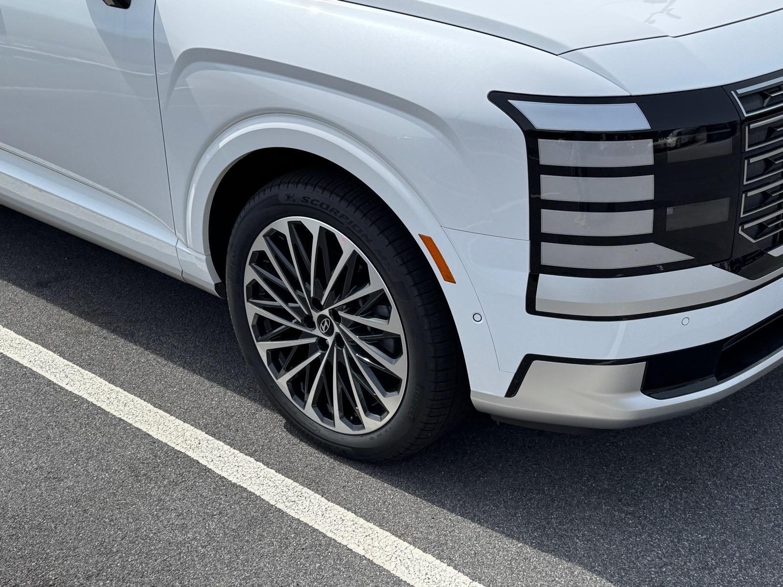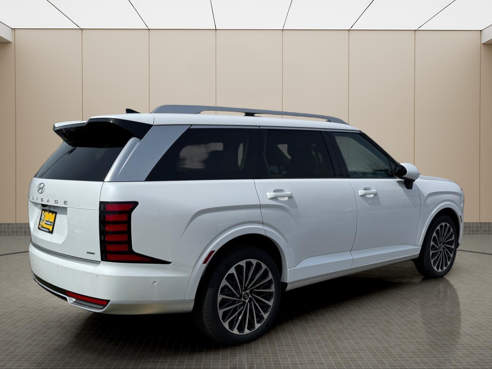 INFORMATION ABOUT THIS VEHICLE AND IT FEATURES:, 2.5L Turbocharged GDI 4-Cylinder Hybrid. Option Group 01, 2.5L Turbocharged GDI 4-Cylinder Hybrid, 100W Charging Cable, 14 Speakers, 3rd row seats: split-bench, 4-Wheel Disc Brakes, ABS brakes, Air Conditioning, Alloy wheels, AM/FM radio: SiriusXM, Apple CarPlay & Android Auto, Audio memory, Auto High-beam Headlights, Auto-dimming door mirrors, Auto-dimming Rear-View mirror, Auto-leveling suspension, Automatic temperature control, Brake assist, Bumpers: body-color, Cargo Cover, Cargo Net, Carpeted Floor Mats, Compass, Delay-off headlights, Driver door bin, Driver vanity mirror, Dual front impact airbags, Dual front side impact airbags, Electronic Stability Control, Emergency communication system: None, Exterior Parking Camera Rear, First Aid Kit, Four wheel independent suspension, Front anti-roll bar, Front Bucket Seats, Front Center Armrest, Front dual zone A/C, Front reading lights, Fully automatic headlights, Garage door transmitter: HomeLink, Genuine wood console insert, Genuine wood dashboard insert, Heads-Up Display, Heated and Ventilated Front Bucket Seats, Heated door mirrors, Heated front seats, Heated rear seats, Heated steering wheel, HVAC memory, Illuminated entry, Knee airbag, Leather steering wheel, Low tire pressure warning, Memory seat, Navigation System, Occupant sensing airbag, Outside temperature display, Overhead airbag, Overhead console, Panic alarm, Passenger door bin, Passenger vanity mirror, Power door mirrors, Power driver seat, Power Liftgate, Power moonroof, Power passenger seat, Power steering, Power windows, Premium Nappa Leather Seat Trim, Radio data system, Radio: Infotainment Navigation System, Rain sensing wipers, Rear air conditioning, Rear anti-roll bar, Rear audio controls, Rear reading lights, Rear side impact airbag, Rear window defroster, Rear window wiper, Reclining 3rd row seat, Remote keyless entry, Security system, Speed control, Split folding rear seat, Spoiler, Steering wheel mounted audio controls, Tachometer, Telescoping steering wheel, Tilt steering wheel, Traction control, Trip computer, Turn signal indicator mirrors, Variably intermittent wipers, Ventilated front seats, Ventilated rear seats, and Wheels: 21x 8.5J Alloy. Creamy White Pearl 2026 Hyundai Palisade Hybrid Calligraphy AWD 6-Speed Automatic 2.5L Turbocharged GDI 4-Cylinder Hybrid 29/30 City/Highway MPG