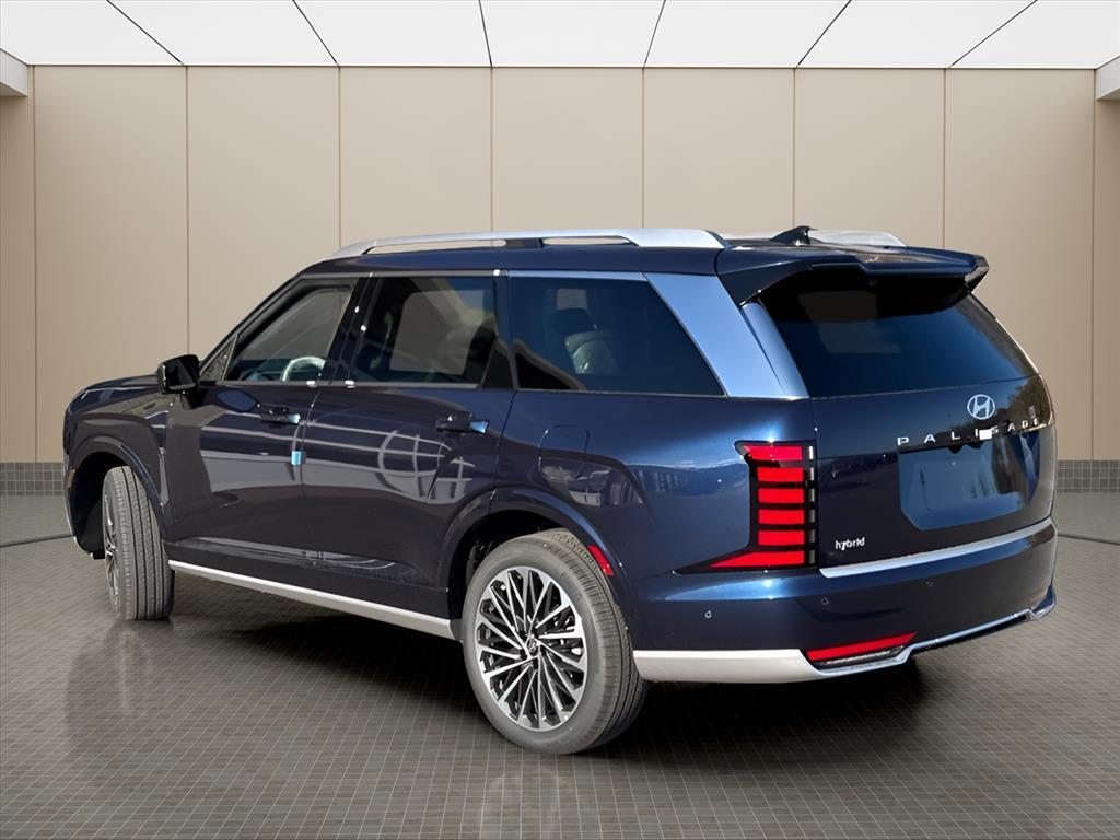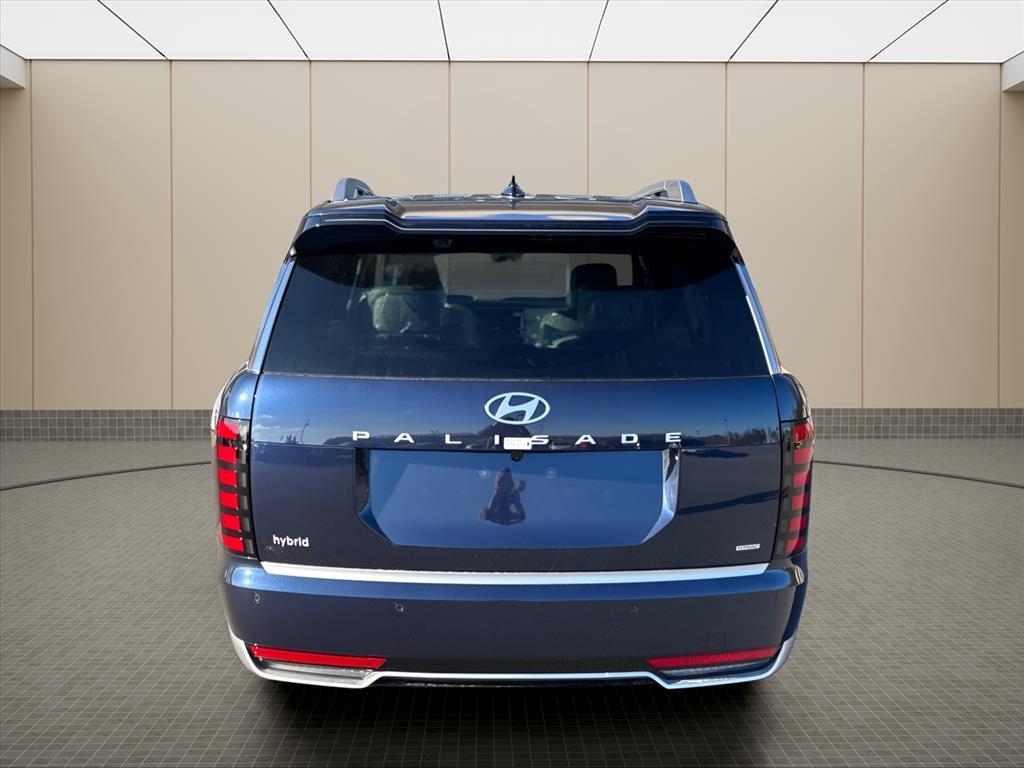 INFORMATION ABOUT THIS VEHICLE AND IT FEATURES:, 2.5L Turbocharged GDI 4-Cylinder Hybrid. Option Group 01, 2.5L Turbocharged GDI 4-Cylinder Hybrid, 14 Speakers, 3rd row seats: split-bench, 4-Wheel Disc Brakes, ABS brakes, Air Conditioning, Alloy wheels, AM/FM radio: SiriusXM, Apple CarPlay & Android Auto, Audio memory, Auto High-beam Headlights, Auto-dimming door mirrors, Auto-dimming Rear-View mirror, Auto-leveling suspension, Automatic temperature control, Brake assist, Bumpers: body-color, Cargo Blocks, Cargo Cover, Cargo Net, Carpeted Floor Mats, Compass, Delay-off headlights, Driver door bin, Driver vanity mirror, Dual front impact airbags, Dual front side impact airbags, Electronic Stability Control, Emergency communication system: None, Exterior Parking Camera Rear, First Aid Kit, Four wheel independent suspension, Front anti-roll bar, Front Bucket Seats, Front Center Armrest, Front dual zone A/C, Front reading lights, Fully automatic headlights, Garage door transmitter: HomeLink, Genuine wood console insert, Genuine wood dashboard insert, Heads-Up Display, Heated and Ventilated Front Bucket Seats, Heated door mirrors, Heated front seats, Heated rear seats, Heated steering wheel, HVAC memory, Illuminated entry, Knee airbag, Leather steering wheel, Low tire pressure warning, Memory seat, Navigation System, Occupant sensing airbag, Outside temperature display, Overhead airbag, Overhead console, Panic alarm, Passenger door bin, Passenger vanity mirror, Power door mirrors, Power driver seat, Power Liftgate, Power moonroof, Power passenger seat, Power steering, Power windows, Premium Nappa Leather Seat Trim, Radio data system, Radio: Infotainment Navigation System, Rain sensing wipers, Rear air conditioning, Rear anti-roll bar, Rear audio controls, Rear reading lights, Rear side impact airbag, Rear window defroster, Rear window wiper, Reclining 3rd row seat, Remote keyless entry, Roadside Assistance Kit, Security system, Speed control, Split folding rear seat, Spoiler, Steering wheel mounted audio controls, Tachometer, Telescoping steering wheel, Tilt steering wheel, Traction control, Trip computer, Turn signal indicator mirrors, Variably intermittent wipers, Ventilated front seats, Ventilated rear seats, and Wheels: 21x 8.5J Alloy. Classy Blue Pearl 2026 Hyundai Palisade Hybrid Calligraphy AWD 6-Speed Automatic 2.5L Turbocharged GDI 4-Cylinder Hybrid Recent Arrival!