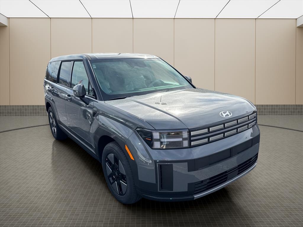 INFORMATION ABOUT THIS VEHICLE AND IT FEATURES:, I4. Option Group 01, I4, 18x 7.5J Alloy Wheels, 3rd row seats: bench, 4-Wheel Disc Brakes, 6 Speakers, ABS brakes, Air Conditioning, Alloy wheels, AM/FM radio: SiriusXM, Apple CarPlay & Android Auto, Auto High-beam Headlights, Automatic temperature control, Brake assist, Bumpers: body-color, Cargo Cover/Screen, Cargo Net, Cargo Tray, Carpeted Floor Mats, Delay-off headlights, Driver door bin, Driver vanity mirror, Dual front impact airbags, Dual front side impact airbags, Electronic Stability Control, Emergency communication system, Exterior Parking Camera Rear, First Aid Kit, Four wheel independent suspension, Front anti-roll bar, Front Bucket Seats, Front Center Armrest, Front dual zone A/C, Front reading lights, Fully automatic headlights, Heated door mirrors, Illuminated entry, Knee airbag, Leather steering wheel, Low tire pressure warning, Occupant sensing airbag, Outside temperature display, Overhead airbag, Overhead console, Panic alarm, Passenger door bin, Passenger vanity mirror, Power door mirrors, Power Liftgate, Power steering, Power windows, Radio: AM/FM/HD Display Audio, Rear anti-roll bar, Rear seat center armrest, Rear side impact airbag, Rear window defroster, Rear window wiper, Remote keyless entry, Security system, Speed control, Speed-sensing steering, Split folding rear seat, Spoiler, Steering wheel mounted audio controls, Tachometer, Telescoping steering wheel, Tilt steering wheel, Traction control, Trip computer, Variably intermittent wipers, and YES Essentials Stain-Resistant Cloth Seat Trim. Hampton Gray 2026 Hyundai Santa Fe Hybrid SE AWD 6-Speed Automatic with Shiftronic I4 35/34 City/Highway MPG