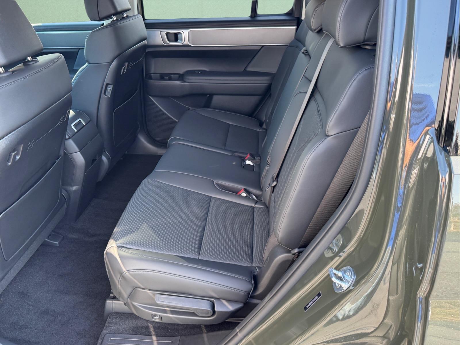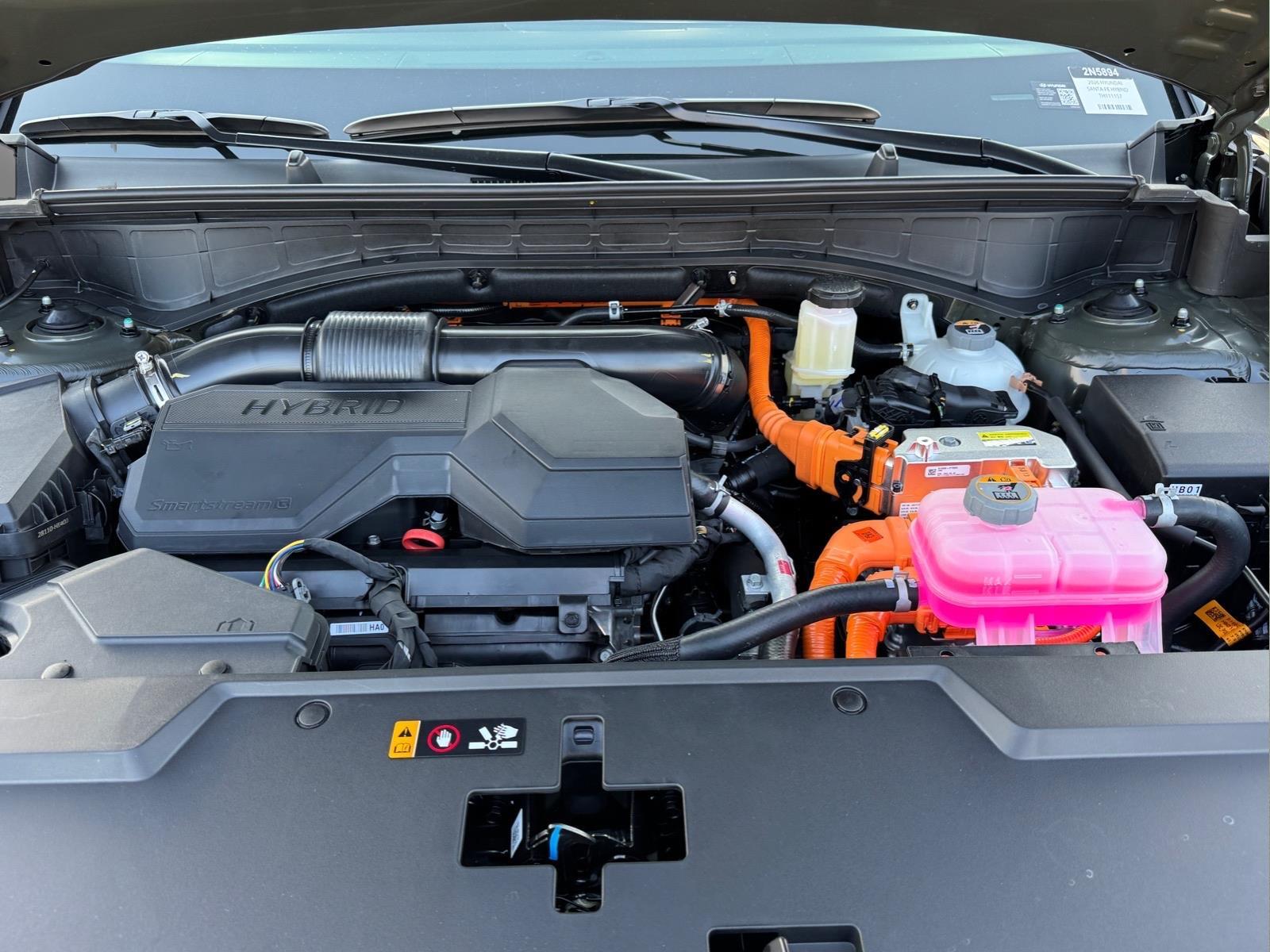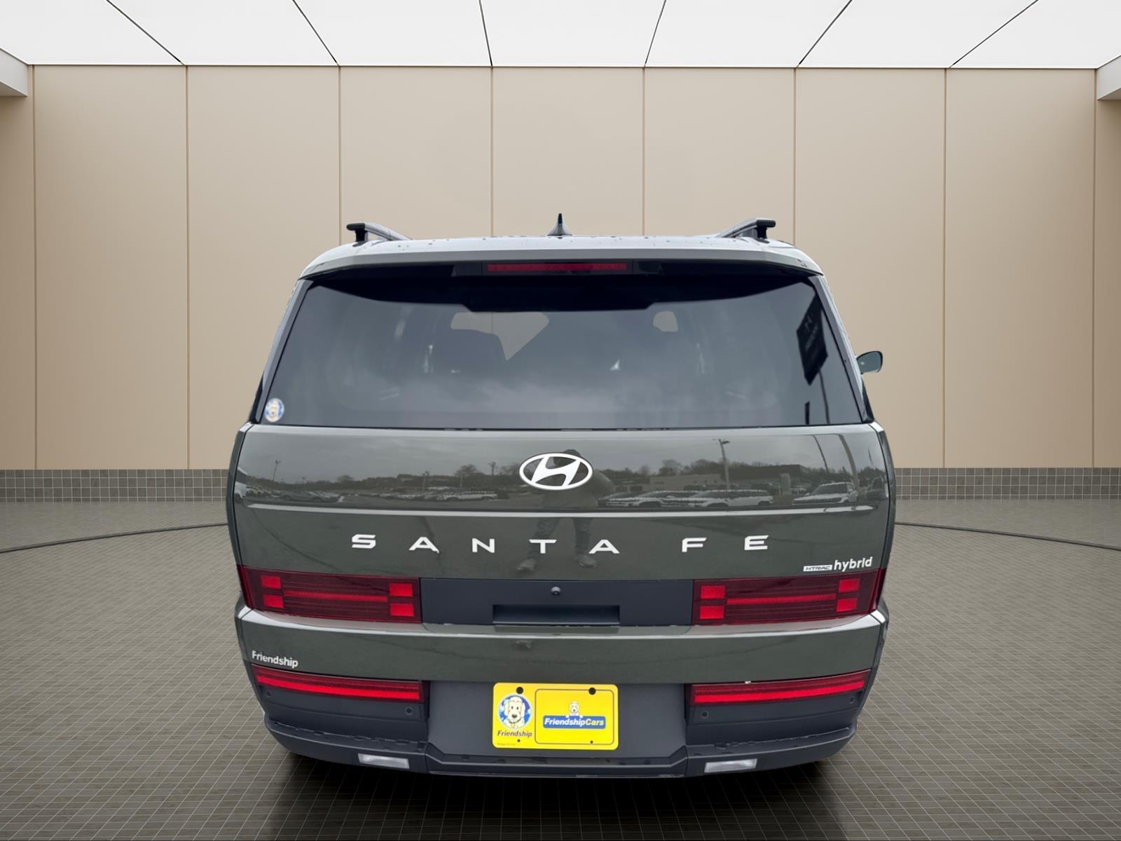 INFORMATION ABOUT THIS VEHICLE AND IT FEATURES:, I4. Option Group 01, Tow and Go Package (Tow Hitch and Tow Hitch Ball Mount Kit), I4, 18x 7.5J Alloy Wheels, 3rd row seats: bench, 4-Wheel Disc Brakes, 6 Speakers, ABS brakes, Air Conditioning, Alloy wheels, AM/FM radio: SiriusXM, Apple CarPlay & Android Auto, Auto High-beam Headlights, Automatic temperature control, Brake assist, Bumpers: body-color, Cargo Blocks, Cargo Cover/Screen, Cargo Net, Cargo Tray, Carpeted Floor Mats, Delay-off headlights, Driver door bin, Driver vanity mirror, Dual front impact airbags, Dual front side impact airbags, Electronic Stability Control, Emergency communication system, Exterior Parking Camera Rear, First Aid Kit, Four wheel independent suspension, Front anti-roll bar, Front Bucket Seats, Front Center Armrest, Front dual zone A/C, Front reading lights, Fully automatic headlights, H-Tex Leatherette Seat Trim, Heated door mirrors, Heated Front Bucket Seats, Heated front seats, Illuminated entry, Knee airbag, Leather steering wheel, Low tire pressure warning, Occupant sensing airbag, Outside temperature display, Overhead airbag, Overhead console, Panic alarm, Passenger door bin, Passenger vanity mirror, Power door mirrors, Power driver seat, Power Liftgate, Power steering, Power windows, Radio: AM/FM/HD Display Audio, Rear anti-roll bar, Rear seat center armrest, Rear side impact airbag, Rear window defroster, Rear window wiper, Remote keyless entry, Roadside Assistance Kit, Security system, Speed control, Speed-sensing steering, Split folding rear seat, Spoiler, Steering wheel mounted audio controls, Tachometer, Telescoping steering wheel, Tilt steering wheel, Traction control, Trip computer, Turn signal indicator mirrors, and Variably intermittent wipers. Rockwood Green 2026 Hyundai Santa Fe Hybrid SEL AWD 6-Speed Automatic with Shiftronic I4 35/34 City/Highway MPG