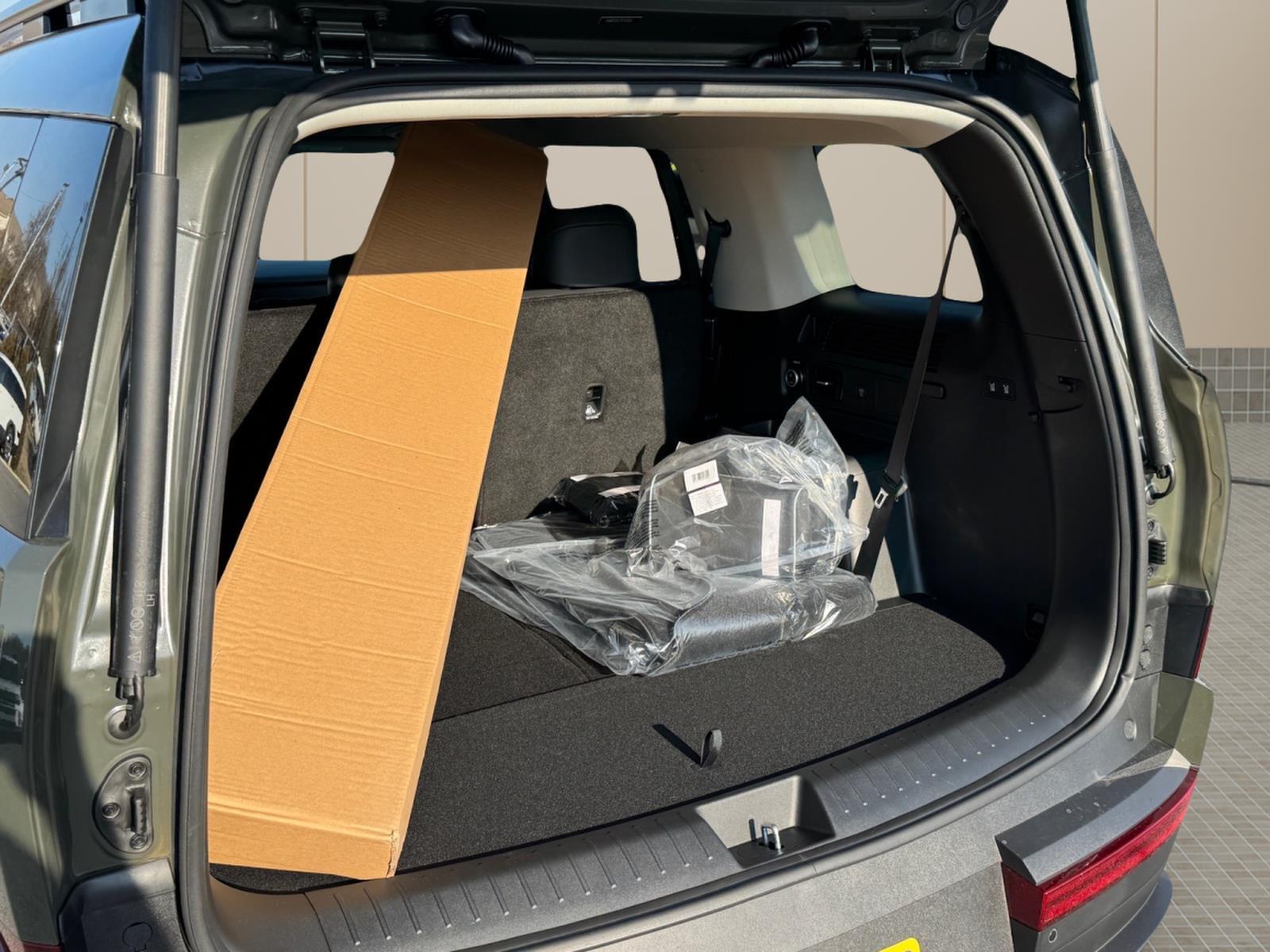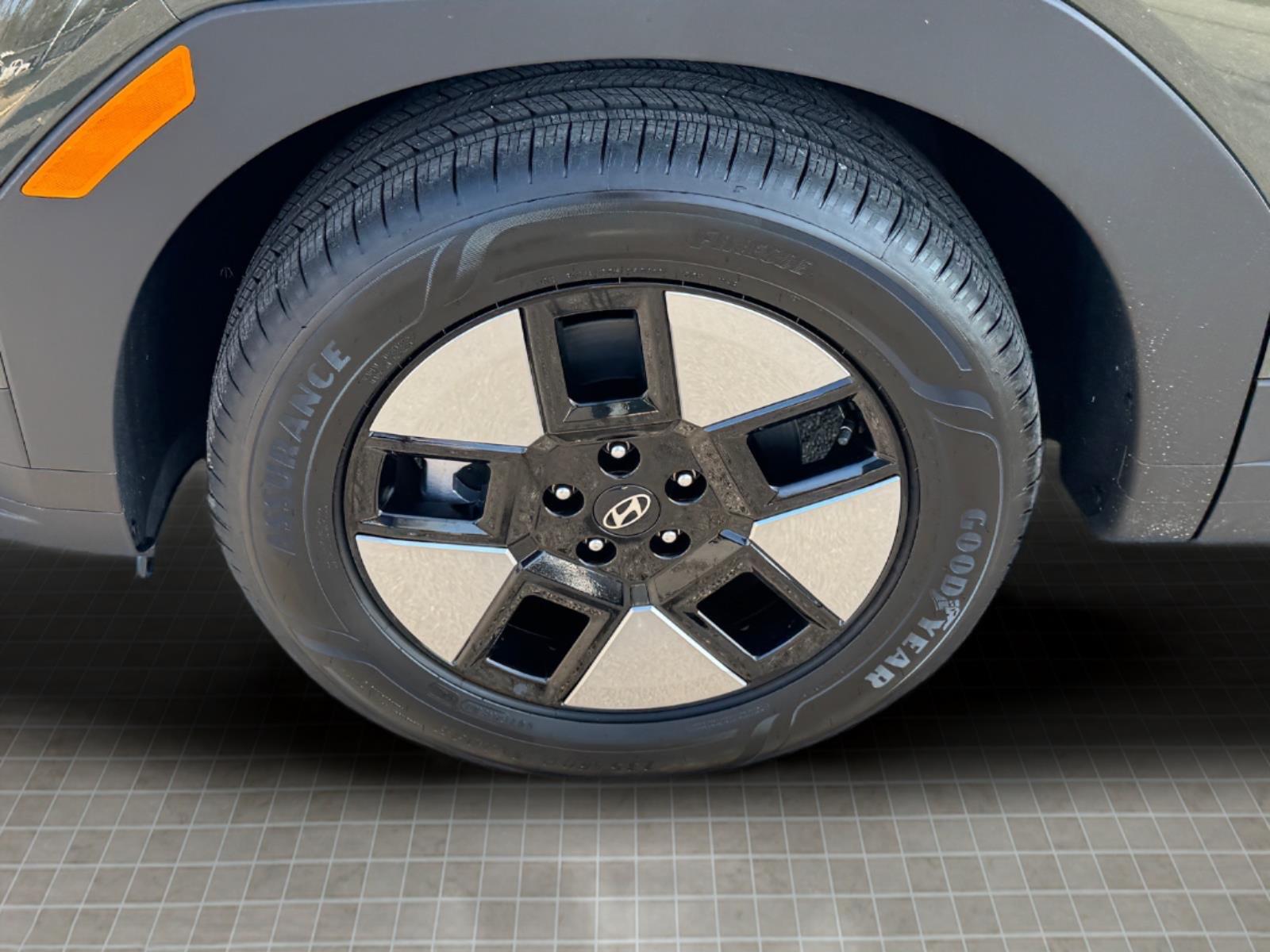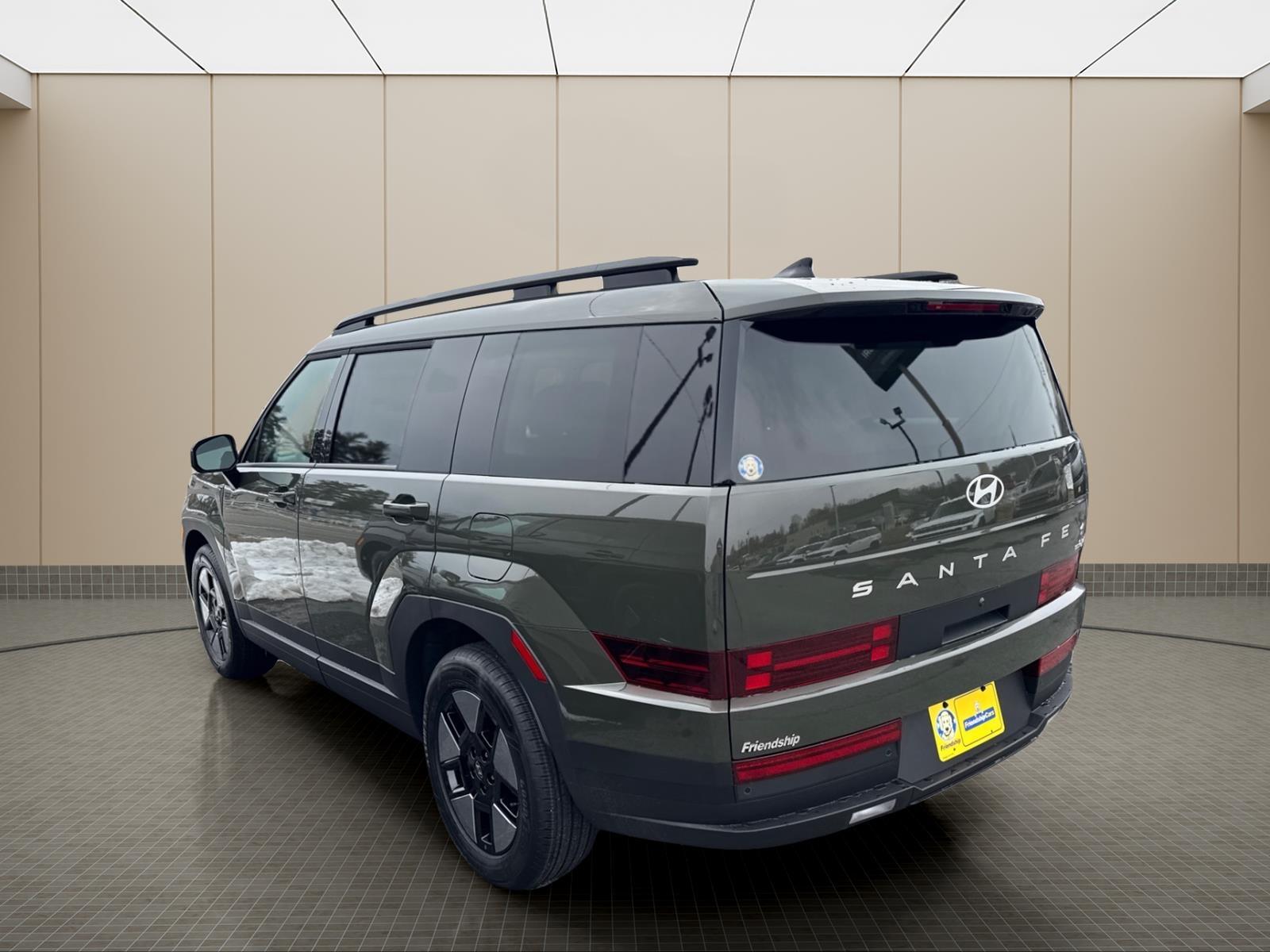 INFORMATION ABOUT THIS VEHICLE AND IT FEATURES:, I4. Option Group 01, Tow and Go Package (Tow Hitch and Tow Hitch Ball Mount Kit), I4, 18x 7.5J Alloy Wheels, 3rd row seats: bench, 4-Wheel Disc Brakes, 6 Speakers, ABS brakes, Air Conditioning, Alloy wheels, AM/FM radio: SiriusXM, Apple CarPlay & Android Auto, Auto High-beam Headlights, Automatic temperature control, Brake assist, Bumpers: body-color, Cargo Blocks, Cargo Cover/Screen, Cargo Net, Cargo Tray, Carpeted Floor Mats, Delay-off headlights, Driver door bin, Driver vanity mirror, Dual front impact airbags, Dual front side impact airbags, Electronic Stability Control, Emergency communication system, Exterior Parking Camera Rear, First Aid Kit, Four wheel independent suspension, Front anti-roll bar, Front Bucket Seats, Front Center Armrest, Front dual zone A/C, Front reading lights, Fully automatic headlights, H-Tex Leatherette Seat Trim, Heated door mirrors, Heated Front Bucket Seats, Heated front seats, Illuminated entry, Knee airbag, Leather steering wheel, Low tire pressure warning, Occupant sensing airbag, Outside temperature display, Overhead airbag, Overhead console, Panic alarm, Passenger door bin, Passenger vanity mirror, Power door mirrors, Power driver seat, Power Liftgate, Power steering, Power windows, Radio: AM/FM/HD Display Audio, Rear anti-roll bar, Rear seat center armrest, Rear side impact airbag, Rear window defroster, Rear window wiper, Remote keyless entry, Roadside Assistance Kit, Security system, Speed control, Speed-sensing steering, Split folding rear seat, Spoiler, Steering wheel mounted audio controls, Tachometer, Telescoping steering wheel, Tilt steering wheel, Traction control, Trip computer, Turn signal indicator mirrors, and Variably intermittent wipers. Rockwood Green 2026 Hyundai Santa Fe Hybrid SEL AWD 6-Speed Automatic with Shiftronic I4 35/34 City/Highway MPG