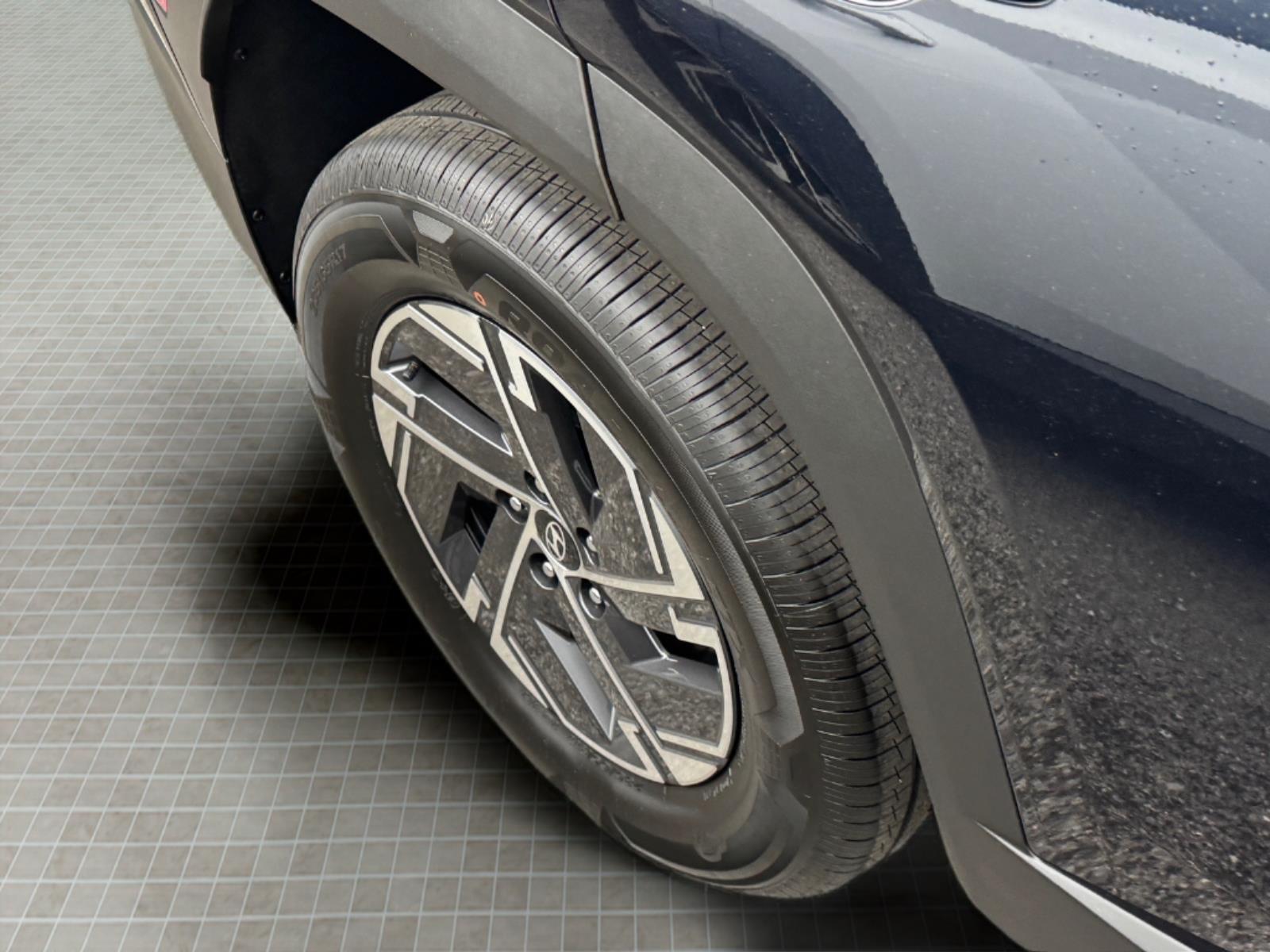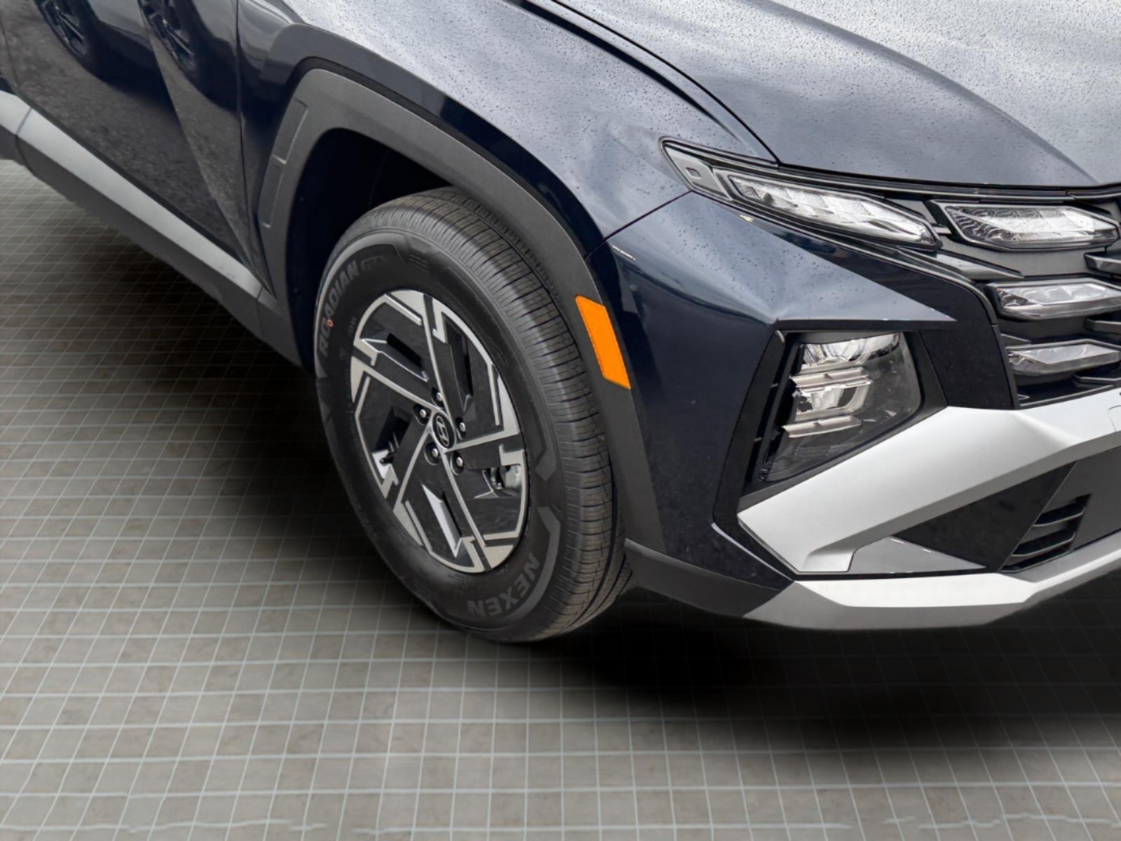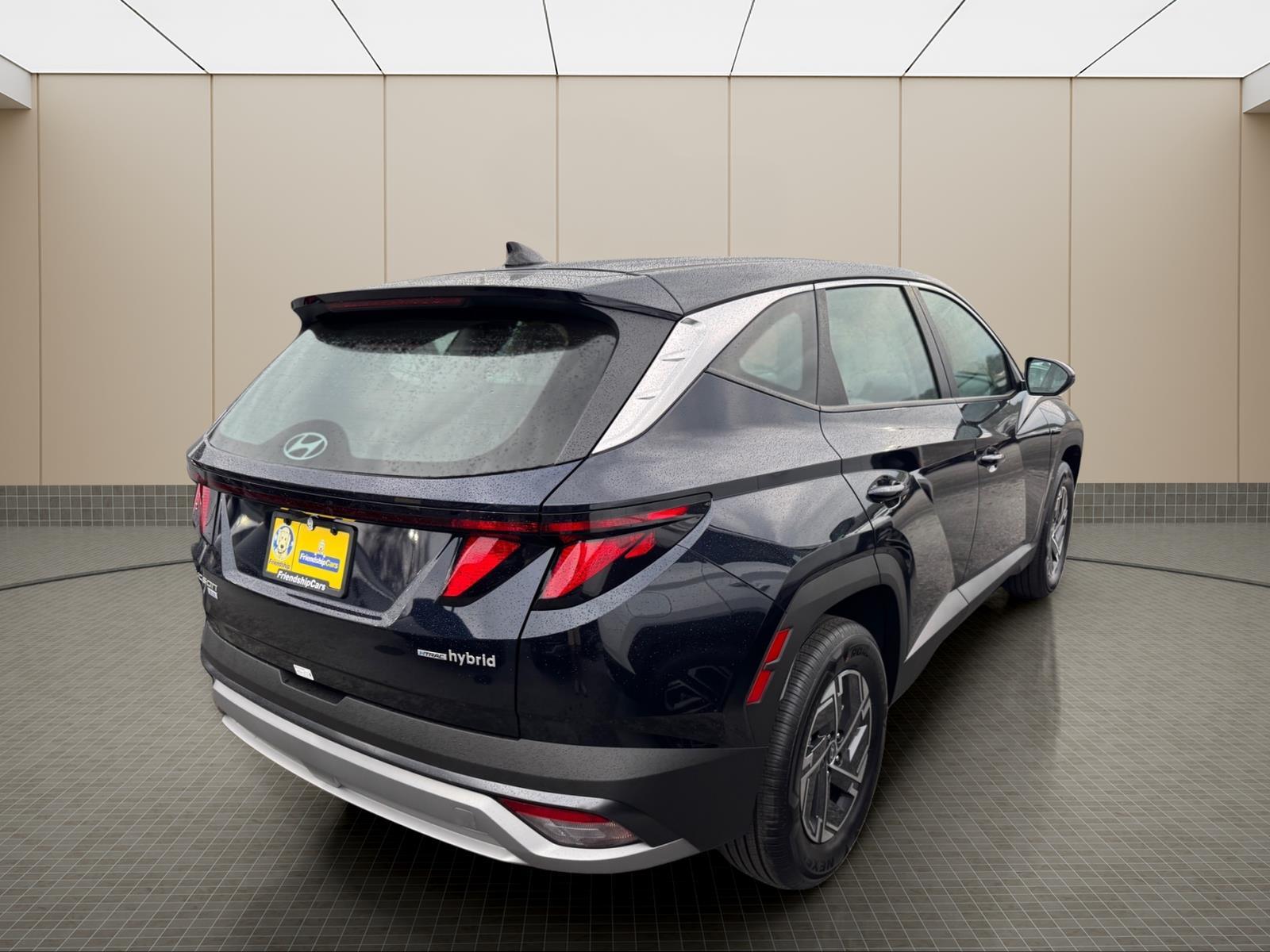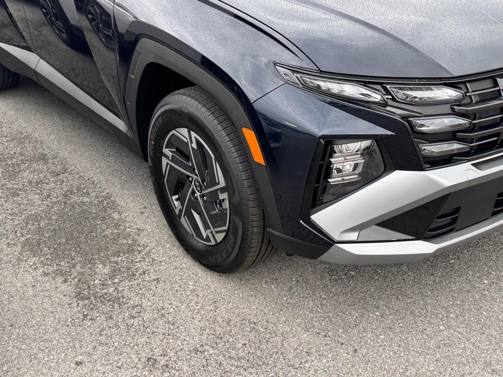 INFORMATION ABOUT THIS VEHICLE AND IT FEATURES:, 1.6L Turbo GDI 4-Cylinder. Option Group 01, 1.6L Turbo GDI 4-Cylinder, 17x 7.0J Alloy Wheels, 4-Wheel Disc Brakes, 6 Speakers, ABS brakes, Air Conditioning, Alloy wheels, AM/FM radio: SiriusXM, Apple CarPlay & Android Auto, Auto High-beam Headlights, Automatic temperature control, Brake assist, Bumpers: body-color, Carpeted Floor Mats, Delay-off headlights, Driver door bin, Driver vanity mirror, Dual front impact airbags, Dual front side impact airbags, Electronic Stability Control, Emergency communication system: None, Four wheel independent suspension, Front anti-roll bar, Front Bucket Seats, Front Center Armrest, Front dual zone A/C, Front reading lights, Fully automatic headlights, Illuminated entry, Low tire pressure warning, Occupant sensing airbag, Outside temperature display, Overhead airbag, Overhead console, Panic alarm, Passenger door bin, Passenger vanity mirror, Power door mirrors, Power steering, Power windows, Radio data system, Radio: AM/FM/HD Audio System, Rear anti-roll bar, Rear reading lights, Rear seat center armrest, Rear side impact airbag, Rear window defroster, Rear window wiper, Remote keyless entry, Security system, Speed control, Split folding rear seat, Spoiler, Stain and Odor Resistant Cloth Seat Trim, Steering wheel mounted audio controls, Tachometer, Telescoping steering wheel, Tilt steering wheel, Traction control, Trip computer, and Variably intermittent wipers. Deep Sea 2026 Hyundai Tucson Hybrid Blue SE AWD 6-Speed Automatic 1.6L Turbo GDI 4-Cylinder 38/38 City/Highway MPG