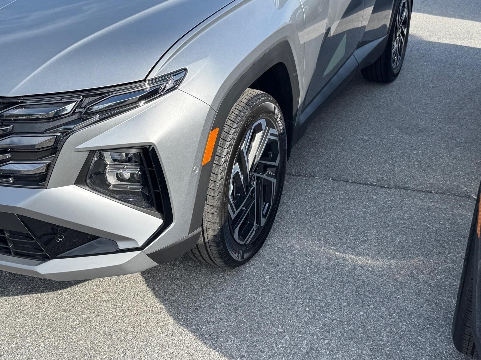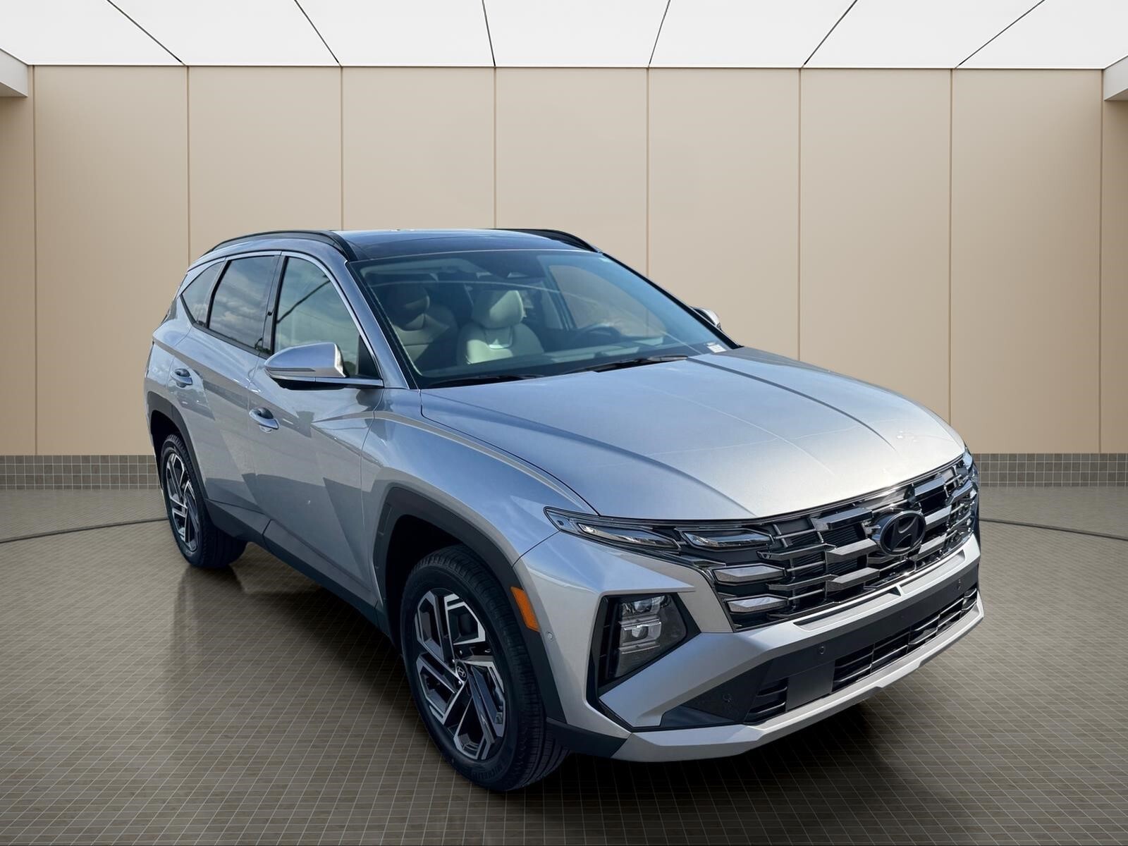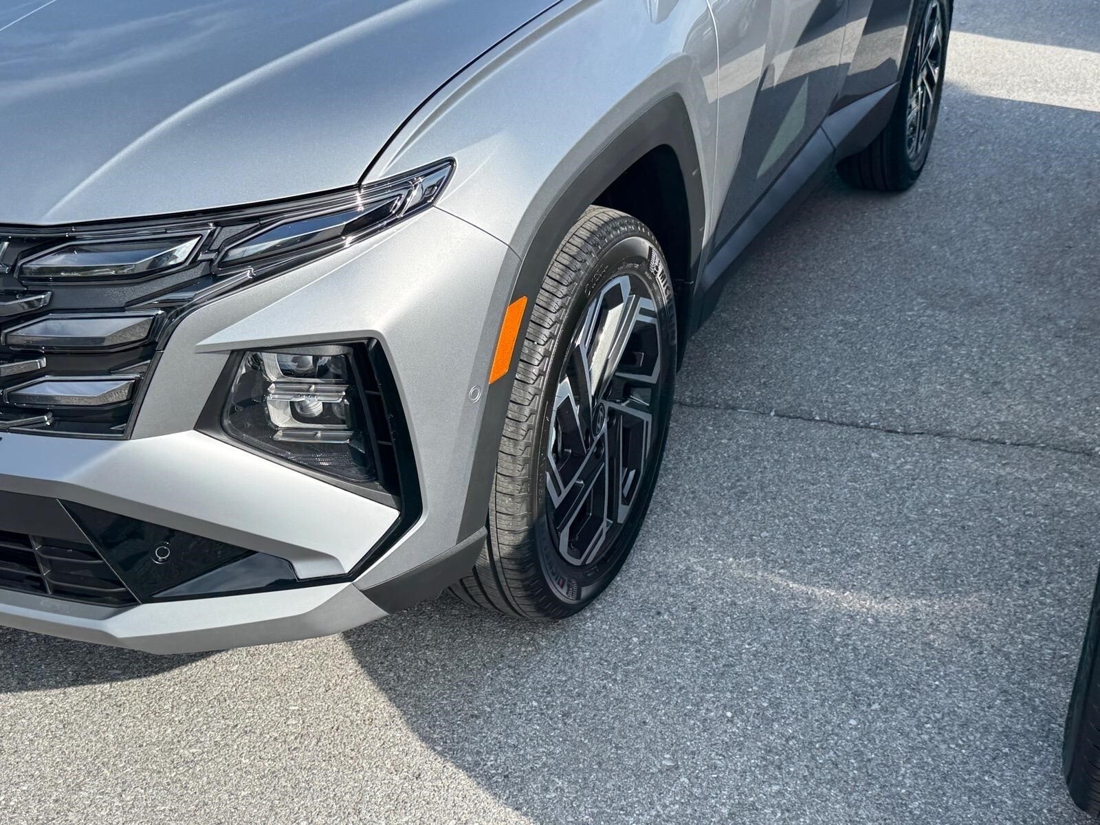 INFORMATION ABOUT THIS VEHICLE AND IT FEATURES:, AWD. Option Group 01, AWD, 4-Wheel Disc Brakes, 8 Speakers, ABS brakes, Air Conditioning, Alloy wheels, AM/FM radio: SiriusXM, Apple CarPlay & Android Auto, Auto High-beam Headlights, Auto-dimming Rear-View mirror, Automatic temperature control, Brake assist, Bumpers: body-color, Cargo Net, Cargo Organizer, Cargo Tray, Carpeted Floor Mats, Delay-off headlights, Driver door bin, Driver vanity mirror, Dual front impact airbags, Dual front side impact airbags, Electronic Stability Control, Emergency communication system: None, First Aid Kit, Four wheel independent suspension, Front anti-roll bar, Front Bucket Seats, Front Center Armrest, Front dual zone A/C, Front reading lights, Fully automatic headlights, Garage door transmitter: HomeLink, Heads-Up Display, Heated and Ventilated Front Bucket Seats, Heated door mirrors, Heated front seats, Heated rear seats, Heated steering wheel, Illuminated entry, Leather Seat Trim, Leather Shift Knob, Leather steering wheel, Low tire pressure warning, Memory seat, Mudguards, Navigation System, Occupant sensing airbag, Outside temperature display, Overhead airbag, Overhead console, Panic alarm, Passenger door bin, Passenger vanity mirror, Power door mirrors, Power driver seat, Power Liftgate, Power moonroof, Power passenger seat, Power steering, Power windows, Radio data system, Radio: Bose Premium w/AM/FM/HD Audio System, Rain sensing wipers, Rear anti-roll bar, Rear reading lights, Rear seat center armrest, Rear side impact airbag, Rear window defroster, Rear window wiper, Remote keyless entry, Security system, Speed control, Split folding rear seat, Spoiler, Steering wheel mounted audio controls, Tachometer, Telescoping steering wheel, Tilt steering wheel, Traction control, Trip computer, Turn signal indicator mirrors, Variably intermittent wipers, Ventilated front seats, and Wheels: 19x 7.5J Alloy. Shimmering Silver 2026 Hyundai Tucson Limited AWD 8-Speed Automatic with SHIFTRONIC 2.5L I4 DGI DOHC 16V LEV3-SULEV30 187hp Recent Arrival! 24/30 City/Highway MPG