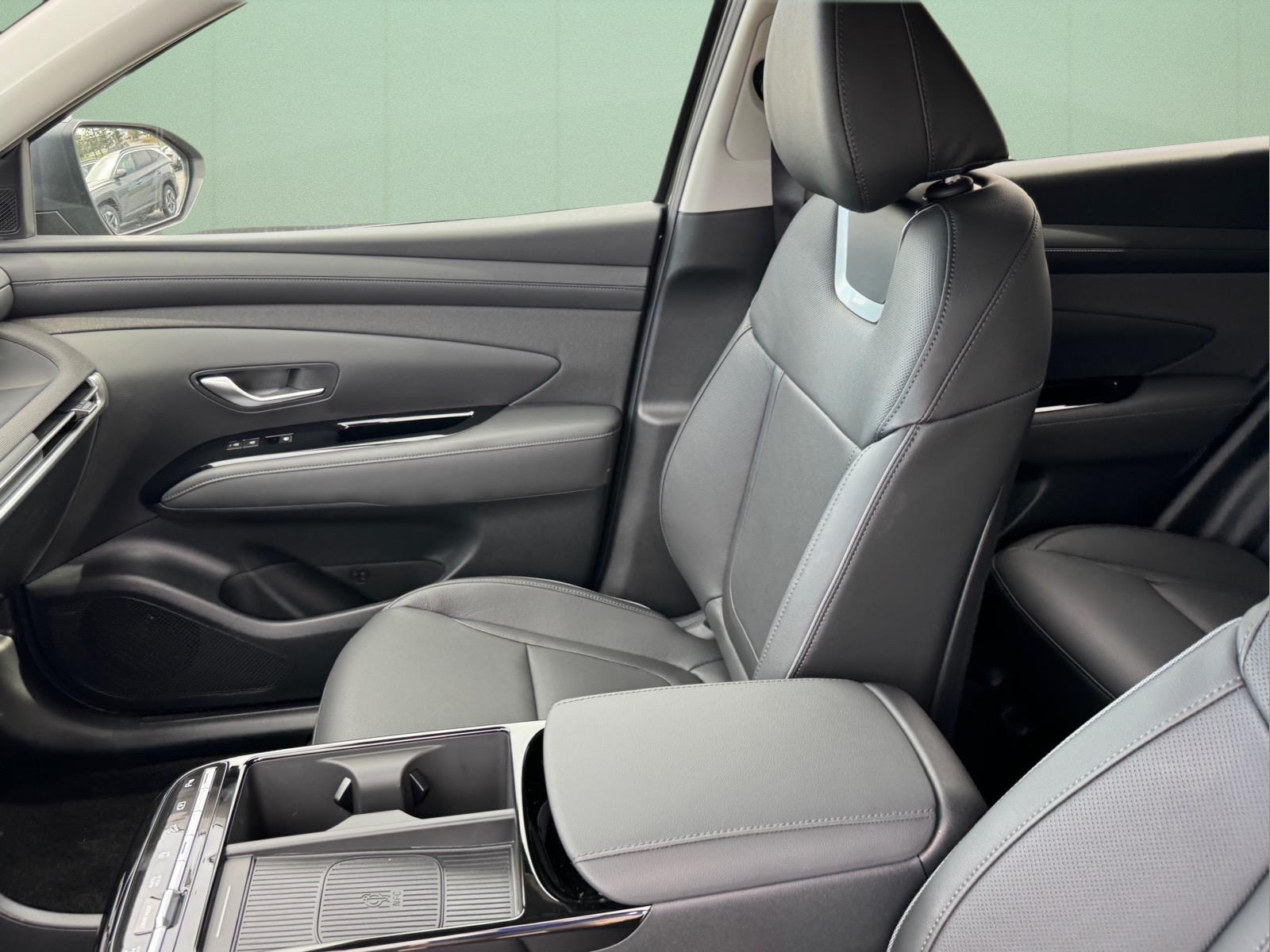 INFORMATION ABOUT THIS VEHICLE AND IT FEATURES:, AWD. Option Group 01, AWD, 4-Wheel Disc Brakes, 8 Speakers, ABS brakes, Air Conditioning, Alloy wheels, AM/FM radio: SiriusXM, Apple CarPlay & Android Auto, Auto High-beam Headlights, Auto-dimming Rear-View mirror, Automatic temperature control, Brake assist, Bumpers: body-color, Cargo Cover, Cargo Net, Cargo Tray, Carpeted Floor Mats, Delay-off headlights, Driver door bin, Driver vanity mirror, Dual front impact airbags, Dual front side impact airbags, Electronic Stability Control, Emergency communication system: None, First Aid Kit, Four wheel independent suspension, Front anti-roll bar, Front Bucket Seats, Front Center Armrest, Front dual zone A/C, Front reading lights, Fully automatic headlights, Garage door transmitter: HomeLink, Heads-Up Display, Heated and Ventilated Front Bucket Seats, Heated door mirrors, Heated front seats, Heated rear seats, Heated steering wheel, Illuminated entry, Leather Seat Trim, Leather Shift Knob, Leather steering wheel, Low tire pressure warning, Memory seat, Navigation System, Occupant sensing airbag, Outside temperature display, Overhead airbag, Overhead console, Panic alarm, Passenger door bin, Passenger vanity mirror, Power door mirrors, Power driver seat, Power Liftgate, Power moonroof, Power passenger seat, Power steering, Power windows, Radio data system, Radio: Bose Premium w/AM/FM/HD Audio System, Rain sensing wipers, Rear anti-roll bar, Rear reading lights, Rear seat center armrest, Rear side impact airbag, Rear window defroster, Rear window wiper, Remote keyless entry, Security system, Speed control, Split folding rear seat, Spoiler, Steering wheel mounted audio controls, Tachometer, Telescoping steering wheel, Tilt steering wheel, Traction control, Trip computer, Turn signal indicator mirrors, Variably intermittent wipers, Ventilated front seats, and Wheels: 19x 7.5J Alloy. Rockwood Green 2026 Hyundai Tucson Limited AWD 8-Speed Automatic with SHIFTRONIC 2.5L I4 DGI DOHC 16V LEV3-SULEV30 187hp Recent Arrival! 24/30 City/Highway MPG