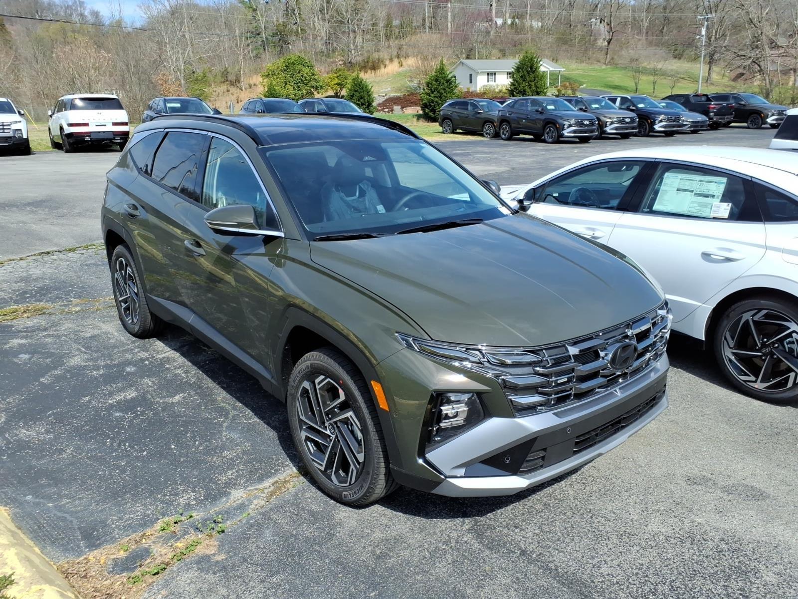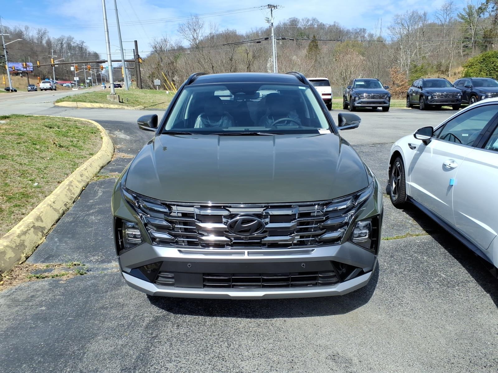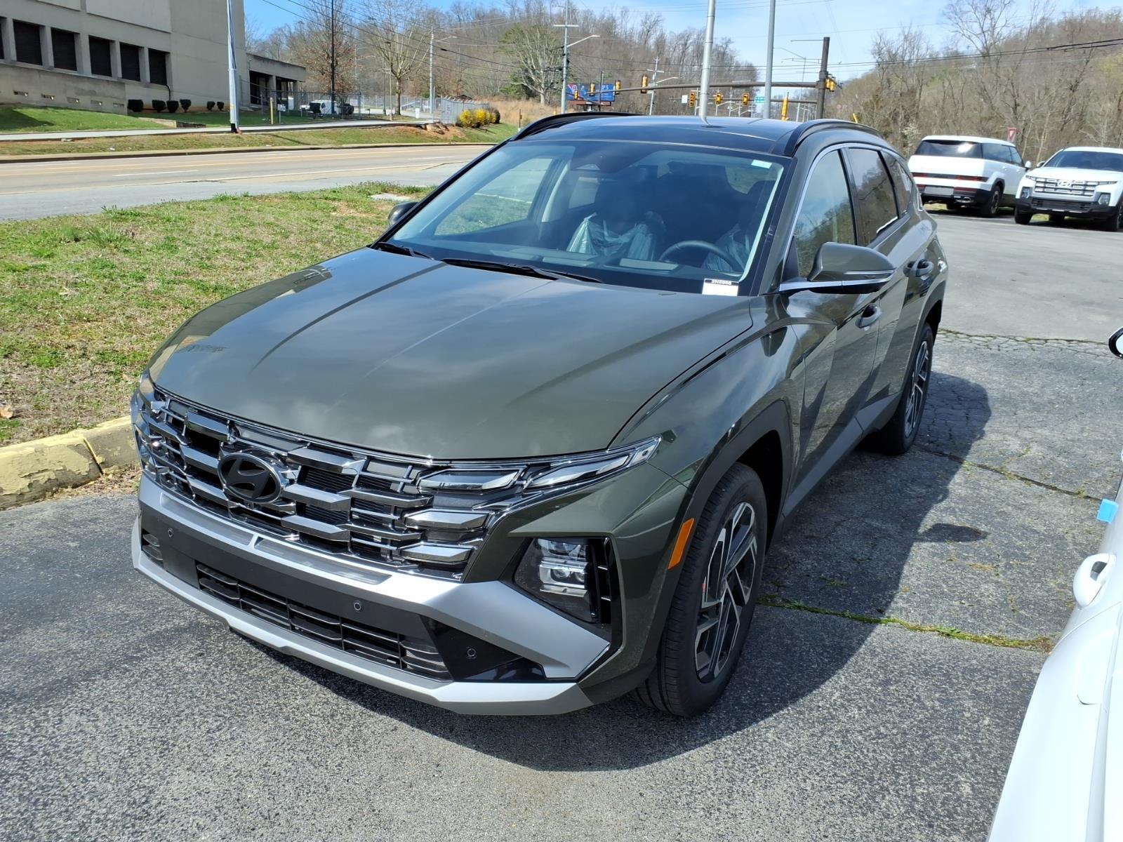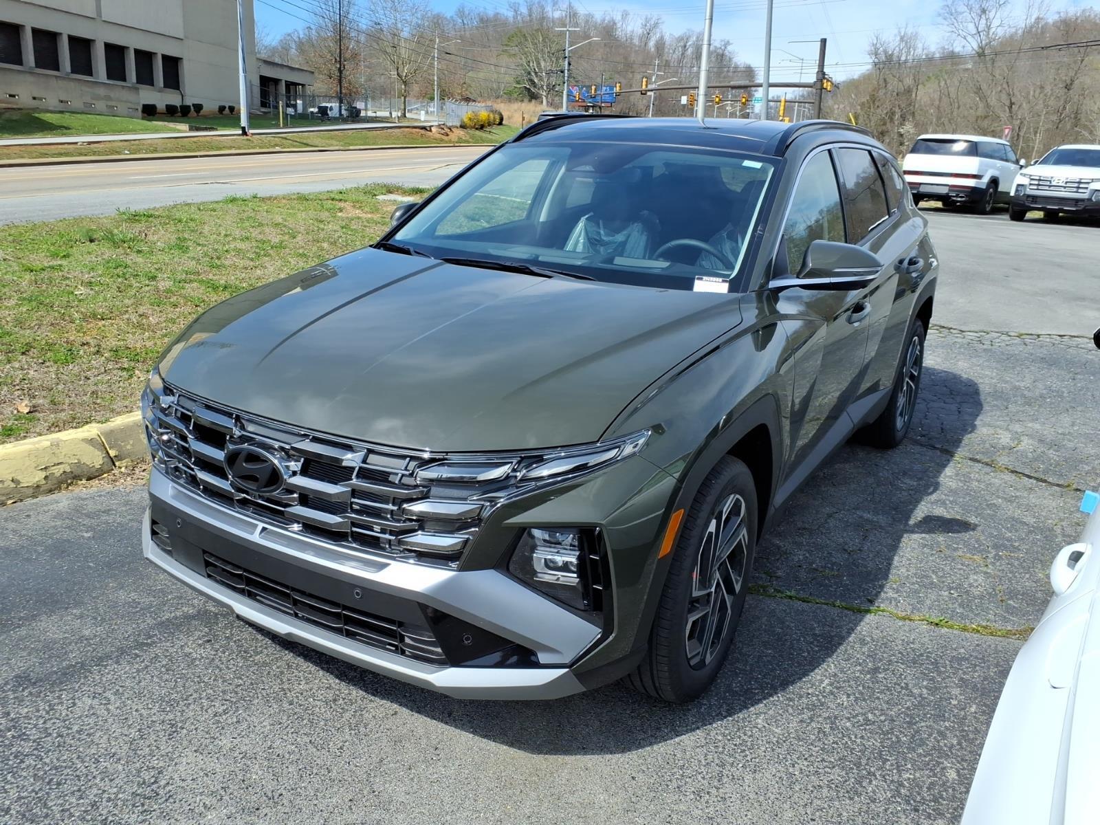 INFORMATION ABOUT THIS VEHICLE AND IT FEATURES:, AWD. Option Group 01, AWD, 4-Wheel Disc Brakes, 8 Speakers, ABS brakes, Air Conditioning, Alloy wheels, AM/FM radio: SiriusXM, Apple CarPlay & Android Auto, Auto High-beam Headlights, Auto-dimming Rear-View mirror, Automatic temperature control, Brake assist, Bumpers: body-color, Cargo Net, Carpeted Floor Mats, Delay-off headlights, Driver door bin, Driver vanity mirror, Dual front impact airbags, Dual front side impact airbags, Electronic Stability Control, Emergency communication system: None, First Aid Kit, Four wheel independent suspension, Front anti-roll bar, Front Bucket Seats, Front Center Armrest, Front dual zone A/C, Front reading lights, Fully automatic headlights, Garage door transmitter: HomeLink, Heads-Up Display, Heated and Ventilated Front Bucket Seats, Heated door mirrors, Heated front seats, Heated rear seats, Heated steering wheel, Illuminated entry, Leather Seat Trim, Leather Shift Knob, Leather steering wheel, Low tire pressure warning, Memory seat, Navigation System, Occupant sensing airbag, Outside temperature display, Overhead airbag, Overhead console, Panic alarm, Passenger door bin, Passenger vanity mirror, Power door mirrors, Power driver seat, Power Liftgate, Power moonroof, Power passenger seat, Power steering, Power windows, Radio data system, Radio: Bose Premium w/AM/FM/HD Audio System, Rain sensing wipers, Rear anti-roll bar, Rear reading lights, Rear seat center armrest, Rear side impact airbag, Rear window defroster, Rear window wiper, Remote keyless entry, Roadside Assistance Kit, Security system, Speed control, Split folding rear seat, Spoiler, Steering wheel mounted audio controls, Tachometer, Telescoping steering wheel, Tilt steering wheel, Tow Hitch, Traction control, Trip computer, Turn signal indicator mirrors, Variably intermittent wipers, Ventilated front seats, and Wheels: 19x 7.5J Alloy. Rockwood Green 2026 Hyundai Tucson Limited AWD 8-Speed Automatic with SHIFTRONIC 2.5L I4 DGI DOHC 16V LEV3-SULEV30 187hp 24/30 City/Highway MPG