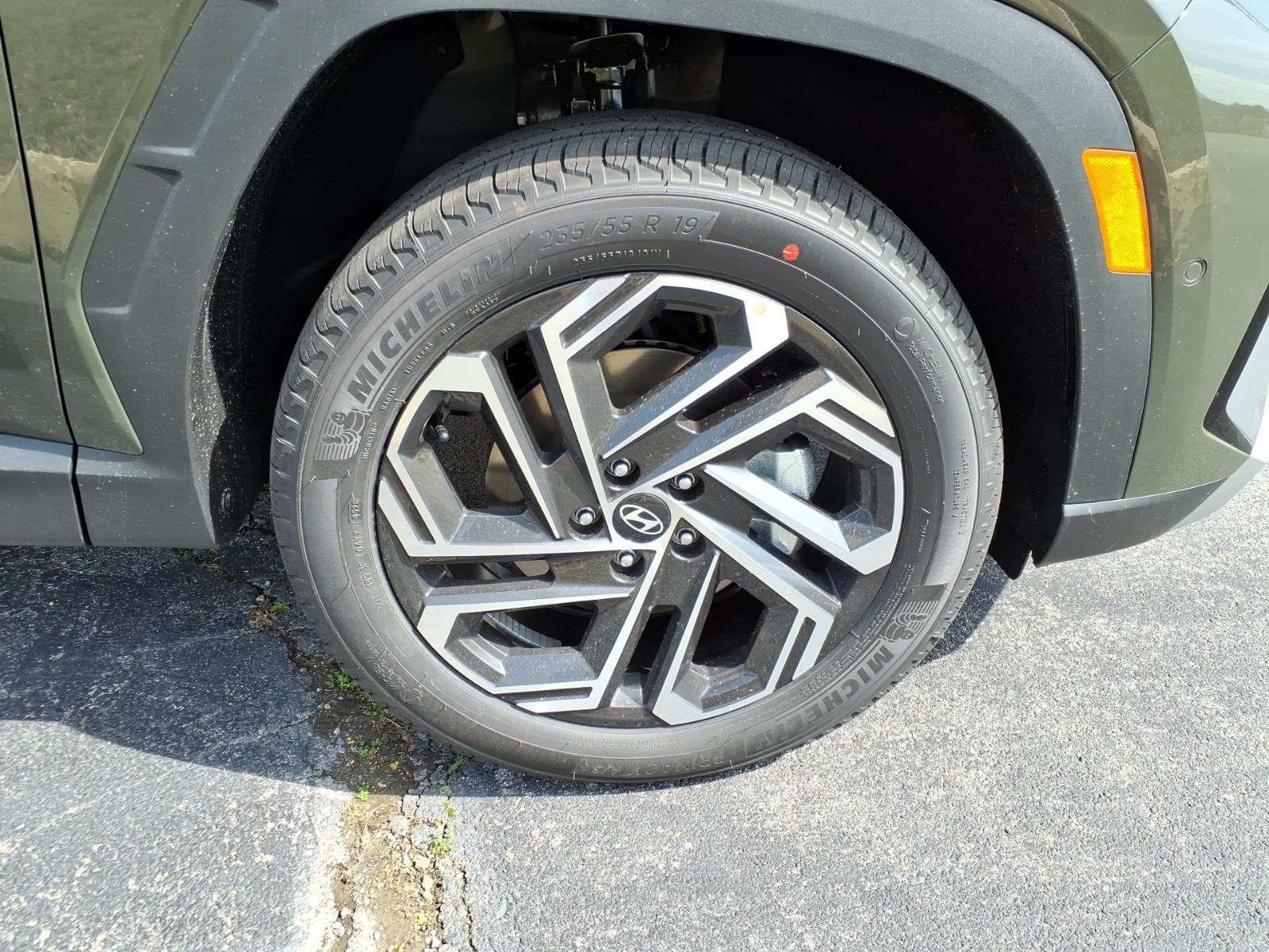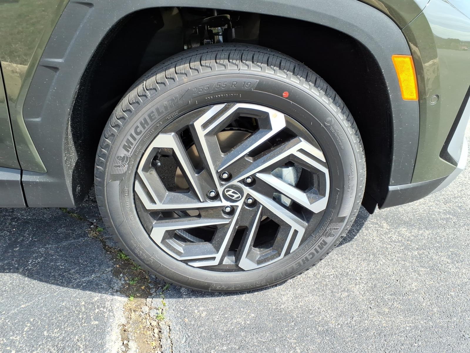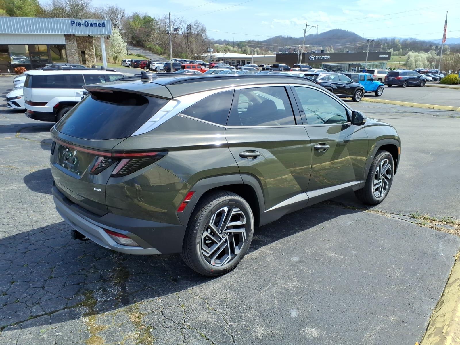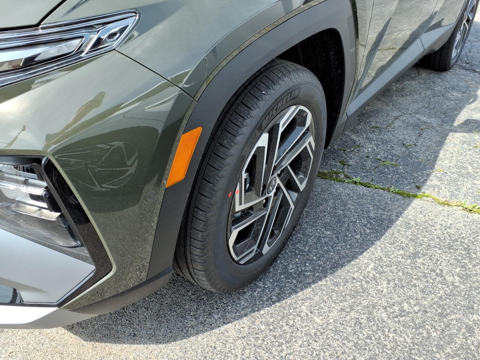 INFORMATION ABOUT THIS VEHICLE AND IT FEATURES:, AWD. Option Group 01, AWD, 4-Wheel Disc Brakes, 8 Speakers, ABS brakes, Air Conditioning, Alloy wheels, AM/FM radio: SiriusXM, Apple CarPlay & Android Auto, Auto High-beam Headlights, Auto-dimming Rear-View mirror, Automatic temperature control, Brake assist, Bumpers: body-color, Cargo Net, Carpeted Floor Mats, Delay-off headlights, Driver door bin, Driver vanity mirror, Dual front impact airbags, Dual front side impact airbags, Electronic Stability Control, Emergency communication system: None, First Aid Kit, Four wheel independent suspension, Front anti-roll bar, Front Bucket Seats, Front Center Armrest, Front dual zone A/C, Front reading lights, Fully automatic headlights, Garage door transmitter: HomeLink, Heads-Up Display, Heated and Ventilated Front Bucket Seats, Heated door mirrors, Heated front seats, Heated rear seats, Heated steering wheel, Illuminated entry, Leather Seat Trim, Leather Shift Knob, Leather steering wheel, Low tire pressure warning, Memory seat, Navigation System, Occupant sensing airbag, Outside temperature display, Overhead airbag, Overhead console, Panic alarm, Passenger door bin, Passenger vanity mirror, Power door mirrors, Power driver seat, Power Liftgate, Power moonroof, Power passenger seat, Power steering, Power windows, Radio data system, Radio: Bose Premium w/AM/FM/HD Audio System, Rain sensing wipers, Rear anti-roll bar, Rear reading lights, Rear seat center armrest, Rear side impact airbag, Rear window defroster, Rear window wiper, Remote keyless entry, Roadside Assistance Kit, Security system, Speed control, Split folding rear seat, Spoiler, Steering wheel mounted audio controls, Tachometer, Telescoping steering wheel, Tilt steering wheel, Tow Hitch, Traction control, Trip computer, Turn signal indicator mirrors, Variably intermittent wipers, Ventilated front seats, and Wheels: 19x 7.5J Alloy. Rockwood Green 2026 Hyundai Tucson Limited AWD 8-Speed Automatic with SHIFTRONIC 2.5L I4 DGI DOHC 16V LEV3-SULEV30 187hp 24/30 City/Highway MPG