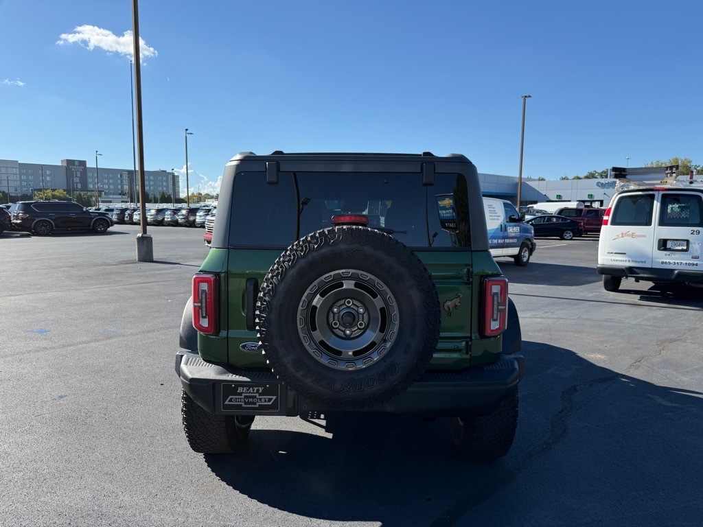 Beaty Chevrolet Company is proud to offer this gorgeous-looking 2022 Ford Bronco Everglades in Green Metallic Beautifully equipped with 4-Wheel Disc Brakes, 6 Speakers, ABS brakes, Air Conditioning, AM/FM radio: SiriusXM with 360L, AM/FM Stereo, Auto High-beam Headlights, Brake assist, Compass, Delay-off headlights, Driver door bin, Driver vanity mirror, Dual front impact airbags, Dual front side impact airbags, Electronic Stability Control, Emergency communication system: 911 Assist, Exterior Parking Camera Rear, Front anti-roll bar, Front Bucket Seats, Front Center Armrest, Front reading lights, Front wheel independent suspension, Fully automatic headlights, Heated door mirrors, Illuminated entry, Integrated roll-over protection, Keyless Entry Keypad, Low tire pressure warning, Occupant sensing airbag, Outside temperature display, Overhead airbag, Overhead console, Panic alarm, Passenger door bin, Passenger vanity mirror, Power door mirrors, Power steering, Power windows, Radio data system, Remote keyless entry, Security system, SiriusXM Radio w/360L, Speed control, Split folding rear seat, Steering wheel mounted audio controls, SYNC 4, Tachometer, Telescoping steering wheel, Tilt steering wheel, Traction control, Trip computer, and Variably intermittent wipers! Vin decoding may not always be 100% accurate. Vehicle descriptions may not always be accurate. Please see Dealership Sales Associate.Beaty Chevrolet is Family Owned and Operated since 1933.