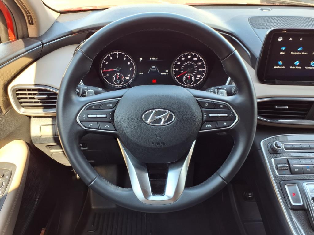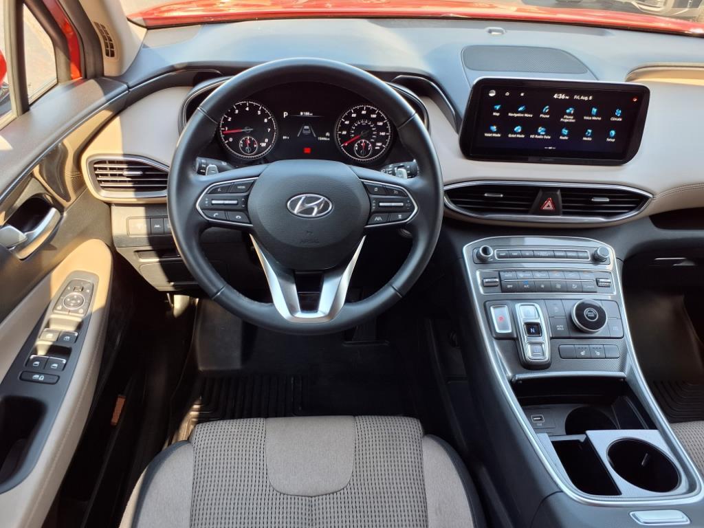 Check out all these great options: Cargo Package (Cargo Net, Cargo Tray, and First Aid Kit), Option Group 01, 18 x 7.5J Alloy Wheels, 4-Wheel Disc Brakes, 6 Speakers, ABS brakes, Air Conditioning, Alloy wheels, AM/FM radio: SiriusXM, Apple CarPlay & Android Auto, Auto High-beam Headlights, Automatic temperature control, Axle Ratio: 3.798, Brake assist, Bumper Applique, Bumpers: body-color, Cargo Cover/Screen, Carpeted Floor Mats, Delay-off headlights, Driver door bin, Driver vanity mirror, Dual front impact airbags, Dual front side impact airbags, Electronic Stability Control, Emergency communication system, Exterior Parking Camera Rear, Four wheel independent suspension, Front anti-roll bar, Front Bucket Seats, Front Center Armrest, Front dual zone A/C, Front reading lights, Fully automatic headlights, Heated door mirrors, Heated Front Bucket Seats, Heated front seats, Illuminated entry, Leather steering wheel, Low tire pressure warning, Navigation System, Occupant sensing airbag, Outside temperature display, Overhead airbag, Overhead console, Panic alarm, Passenger door bin, Passenger vanity mirror, Power door mirrors, Power driver seat, Power Liftgate, Power steering, Power windows, Radio: AM/FM Display Audio, Rear anti-roll bar, Rear seat center armrest, Rear window defroster, Rear window wiper, Remote keyless entry, Security system, Speed control, Speed-sensing steering, Split folding rear seat, Spoiler, Stain-Resistant Cloth Seat Trim, Steering wheel mounted audio controls, Tachometer, Telescoping steering wheel, Tilt steering wheel, Traction control, Trip computer, Turn signal indicator mirrors, and Variably intermittent wipers. Calypso Red 2023 Hyundai Santa Fe SEL FWD 8-Speed Automatic with SHIFTRONIC 2.5L I4Odometer is 27066 miles below market average! 25/28 City/Highway MPG