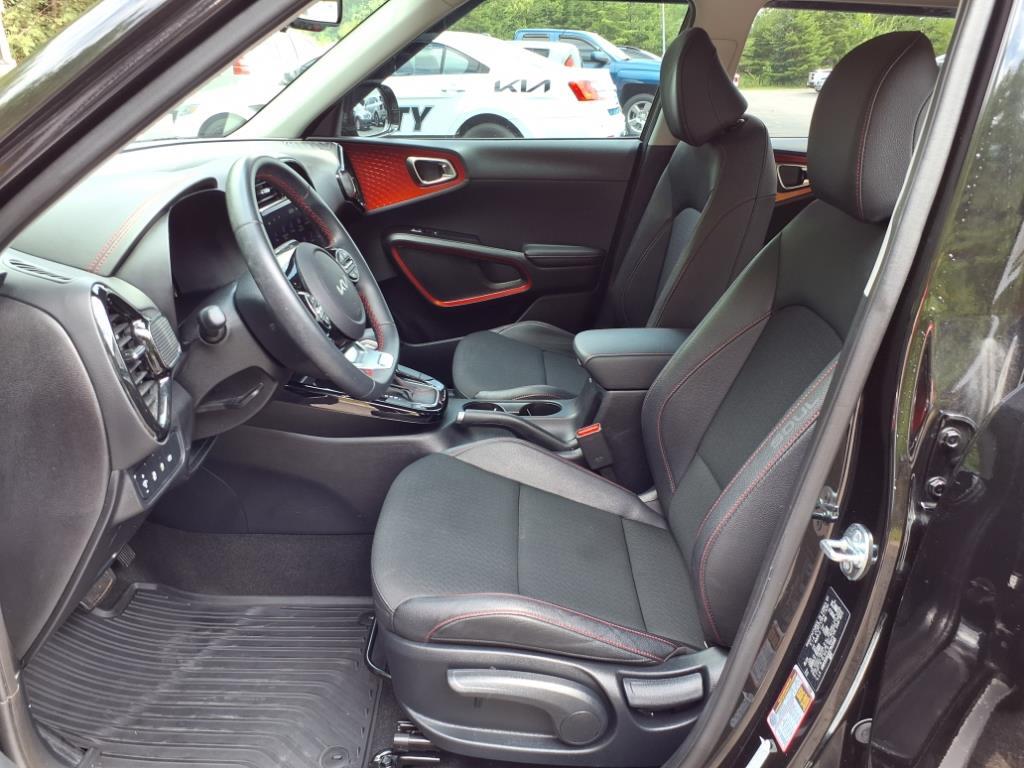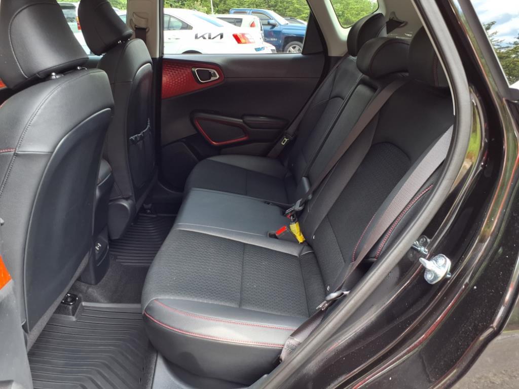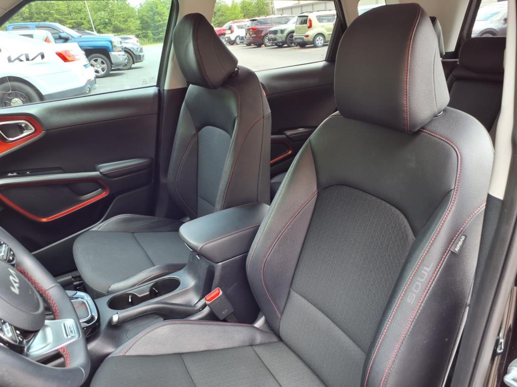 Check out all these great options: 4-Wheel Disc Brakes, 6 Speakers, 7.5J x 18 Alloy Wheels, ABS brakes, Air Conditioning, Alloy wheels, AM/FM radio: SiriusXM, Apple CarPlay & Android Auto, Auto High-beam Headlights, Automatic temperature control, Brake assist, Bumpers: body-color, Carpeted Floor Mats, Combination Cloth/Artificial Leather Seat Trim, Compass, Cross Bars, Delay-off headlights, Driver door bin, Driver vanity mirror, Dual front impact airbags, Dual front side impact airbags, Electronic Stability Control, Emergency communication system, Exterior Parking Camera Rear, Front anti-roll bar, Front Bucket Seats, Front Center Armrest, Front dual zone A/C, Front reading lights, Front wheel independent suspension, Fully automatic headlights, Heated door mirrors, Illuminated entry, Leather Shift Knob, Leather steering wheel, Low tire pressure warning, Mudguards (MUL), Navigation System, Occupant sensing airbag, Outside temperature display, Overhead airbag, Overhead console, Panic alarm, Passenger door bin, Passenger vanity mirror, Power door mirrors, Power moonroof, Power steering, Power windows, Radio data system, Radio: AM/FM/MP3/HD Audio System, Rear seat center armrest, Rear window defroster, Rear window wiper, Remote keyless entry, Speed control, Speed-sensing steering, Split folding rear seat, Sport steering wheel, Steering wheel mounted audio controls, Tachometer, Telescoping steering wheel, Tilt steering wheel, Traction control, Trip computer, Turn signal indicator mirrors, and Variably intermittent wipers. Fusion Black 2025 Kia Soul GT-Line FWD CVT 2.0L I4 DOHC27/33 City/Highway MPG