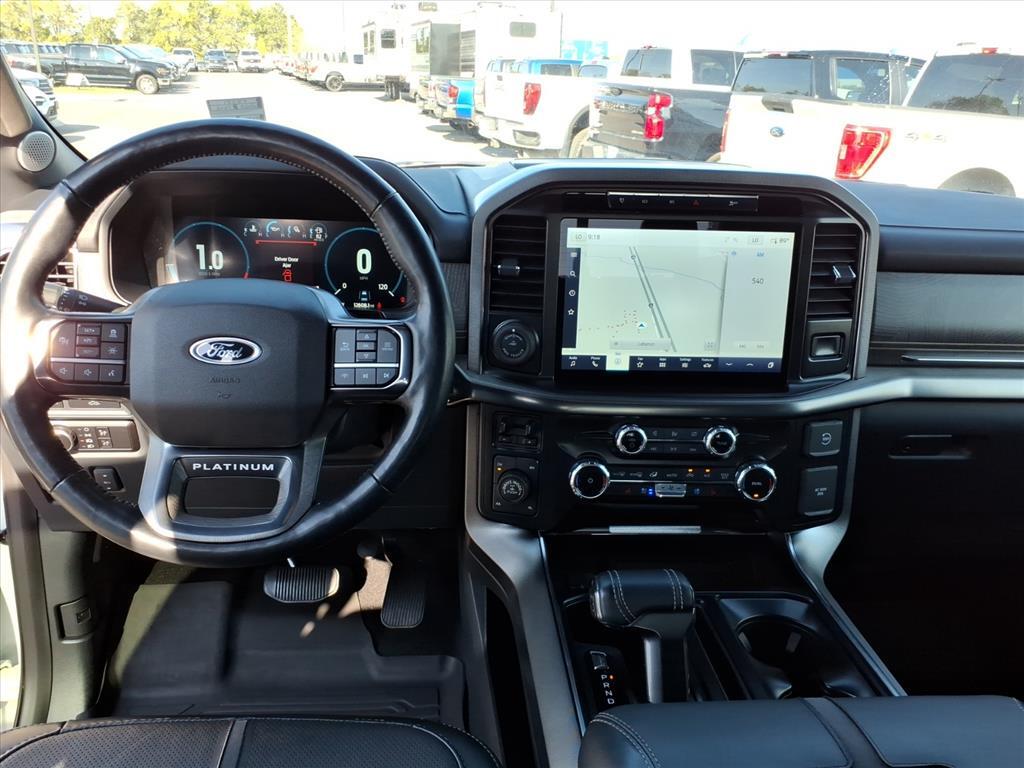 We'll trade for anything that don't eat!ONE OWNER!! NO ACCIDENT AUTOCHECK REPORT!!White Metallic 2023 Ford F-150 Platinum 4WD 10-Speed Automatic 3.5L PowerBoost Full-Hybrid V6 **ONE OWNER**, NO ACCIDENTS!!, BACKUP CAMERA, ALUMINUM WHEELS, BLUETOOTH, NAVIGATION, SUNROOF/MOONROOF, 3.5L PowerBoost Full-Hybrid V6, 4WD, 360 Degree Camera, 4-Wheel Disc Brakes, 8 Speakers, ABS brakes, Active Park Assist 2.0, Adjustable pedals, Air Conditioning, Alloy wheels, Auto High-beam Headlights, Auto tilt-away steering wheel, Auto-dimming door mirrors, Auto-dimming Rear-View mirror, Automatic temperature control, Bed Utility Package, BoxLink, Brake assist, Bumpers: body-color, Class IV Trailer Hitch Receiver, Compass, Delay-off headlights, Driver door bin, Driver vanity mirror, Dual front impact airbags, Dual front side impact airbags, Electronic Stability Control, Equipment Group 701A High, Exterior Parking Camera Rear, Ford BlueCruise 1.0, Front anti-roll bar, Front Bucket Seats, Front Center Armrest, Front dual zone A/C, Front fog lights, Front reading lights, Front wheel independent suspension, Fully automatic headlights, Garage door transmitter, Heated door mirrors, Heated front seats, Heated rear seats, Illuminated entry, Integrated Trailer Brake Controller, Interior Work Surface, LED Box Lighting, LED Sideview Mirror Spotlights, Low tire pressure warning, Memory seat, Occupant sensing airbag, Outside temperature display, Overhead airbag, Overhead console, Passenger door bin, Passenger vanity mirror, Pedal memory, Power door mirrors, Power driver seat, Power passenger seat, Power steering, Power Tailgate, Power Telescoping/Glass/Folding Trailer Tow Mirrors, Power windows, Pro Power Onboard - 7.2KW, Pro Trailer Backup Assist & Pro Trailer Hitch Assist, Radio data system, Radio: B&O Unleashed Sound System by Bang & Olufsen, Rain sensing wipers, Rear reading lights, Rear seat center armrest, Rear step bumper, Rear window defroster, Remote keyless entry, Speed cont