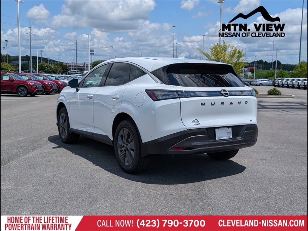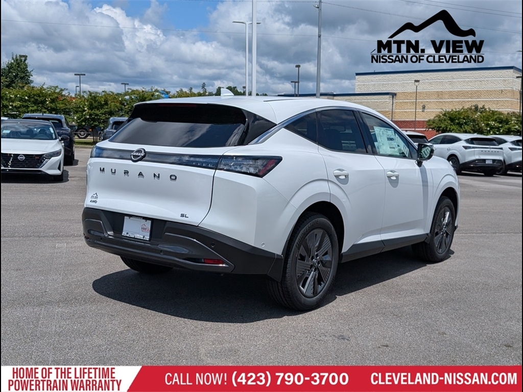 Everest White Pearl Tricoat 2025 Nissan Murano SL I4 AWD 4D Sport Utility 9-Speed Automatic * Bluetooth/Handsfree Calling *, * USB Adapter *, Murano SL AWD, 4D Sport Utility, I4, 9-Speed Automatic, AWD, Everest White Pearl Tricoat, Graphite Premium Synthetic, Navigation system: NissanConnect with Navigation and Services, 10 Speakers, 20Alloy Wheels, 4-Wheel Disc Brakes, ABS brakes, Air Conditioning, Alloy wheels, AM/FM radio: SiriusXM w/360L, Auto High-beam Headlights, Auto-dimming Rear-View mirror, Automatic temperature control, Brake assist, Bumpers: body-color, Carpeted Floor & Cargo Mats, Child-Seat-Sensing Airbag, Compass, Delay-off headlights, Driver door bin, Driver vanity mirror, Dual front impact airbags, Dual front side impact airbags, Electronic Stability Control, Emergency communication system: NissanConnect Services, Four wheel independent suspension, Front anti-roll bar, Front Bucket Seats, Front Center Armrest, Front dual zone A/C, Front reading lights, Fully automatic headlights, Garage door transmitter: myQ Connected Garage, Grained Splash Guards, Heated door mirrors, Heated Front Bucket Seats, Heated front seats, Heated steering wheel, Illuminated Cargo Scuff Plate, Illuminated entry, Knee airbag, Low tire pressure warning, Memory seat, Occupant sensing airbag, Outside temperature display, Overhead airbag, Overhead console, Panic alarm, Passenger door bin, Passenger vanity mirror, Power door mirrors, Power driver seat, Power Liftgate, Power moonroof: Panoramic, Power passenger seat, Power steering, Power windows, Premium Paint, PVC (Leatherette) Seat Trim, Radio data system, Radio: NissanConnect w/Hybrid Radio, Rear anti-roll bar, Rear reading lights, Rear seat center armrest, Rear side impact airbag, Rear window defroster, Rear window wiper, Remote keyless entry, Security system, Speed control, Speed-Sensitive Wipers, Split folding rear seat, Spoiler, Steering wheel mounted audio controls, Tachometer, Telescoping steering wheel, Tilt steering whee