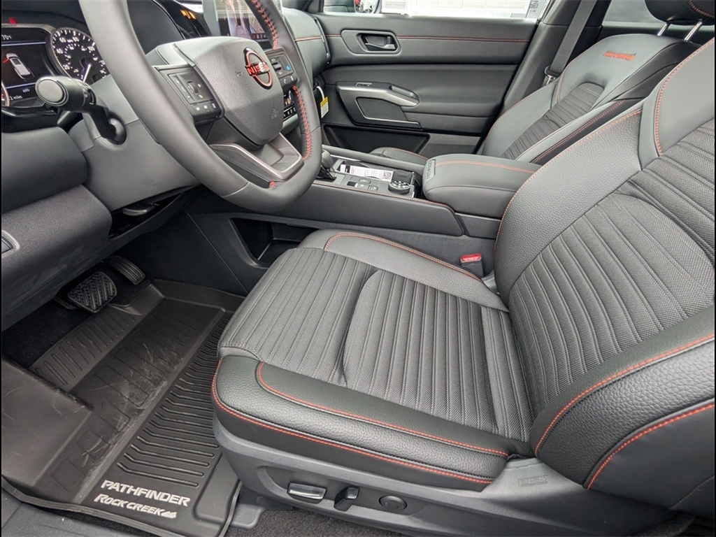 Super Black 2026 Nissan Pathfinder Rock Creek 3.5L V6 DOHC 4WD 4D Sport Utility 9-Speed Automatic * Bluetooth/Handsfree Calling *, * USB Adapter *, Pathfinder Rock Creek 4x4, 4D Sport Utility, 3.5L V6 DOHC, 9-Speed Automatic, 4WD, Super Black, Charcoal Cloth, 3rd row seats: bench, 4-Piece Black Splash Guards, 4-Wheel Disc Brakes, 6 Speakers, ABS brakes, Air Conditioning, Alloy wheels, AM/FM radio: SiriusXM w/360L, Auto High-beam Headlights, Automatic temperature control, Brake assist, Delay-off headlights, Driver door bin, Driver vanity mirror, Dual front impact airbags, Dual front side impact airbags, Electronic Stability Control, Emergency communication system: NissanConnect Services, Four wheel independent suspension, Front anti-roll bar, Front Bucket Seats, Front Center Armrest, Front dual zone A/C, Front reading lights, Fully automatic headlights, Garage door transmitter: myQ Connected Garage, Heated door mirrors, Heated Front Bucket Seats, Heated front seats, Illuminated entry, Knee airbag, Low tire pressure warning, NissanConnect featuring Apple CarPlay and Android Auto, Occupant sensing airbag, Outside temperature display, Overhead airbag, Overhead console, Panic alarm, Passenger door bin, Passenger vanity mirror, Power door mirrors, Power driver seat, Power Liftgate, Power steering, Power windows, Radio data system, Radio: AM/FM Audio System with NissanConnect, Rear air conditioning, Rear anti-roll bar, Rear reading lights, Rear side impact airbag, Rear window defroster, Rear window wiper, Reclining 3rd row seat, Remote keyless entry, Security system, Speed control, Speed-sensing steering, Split folding rear seat, Spoiler, Steering wheel mounted audio controls, Tachometer, Telescoping steering wheel, Tilt steering wheel, Traction control, Trip computer, Variably intermittent wipers, Pathfinder Rock Creek 4x4, 4D Sport Utility, 3.5L V6 DOHC, 9-Speed Automatic, 4WD, Super Black, Charcoal Cloth. Discover the latest in automotive innovation at Mtn View Nissan, a premier destination for new Nissans and a proud member of the esteemed Mtn View Auto Group with locations in Chattanooga, Cleveland, and Dalton, GA. Explore our showroom to find the perfect new Nissan for you, backed by our commitment to excellence and renowned Nationwide Lifetime Warranty. Begin your journey with us today!
