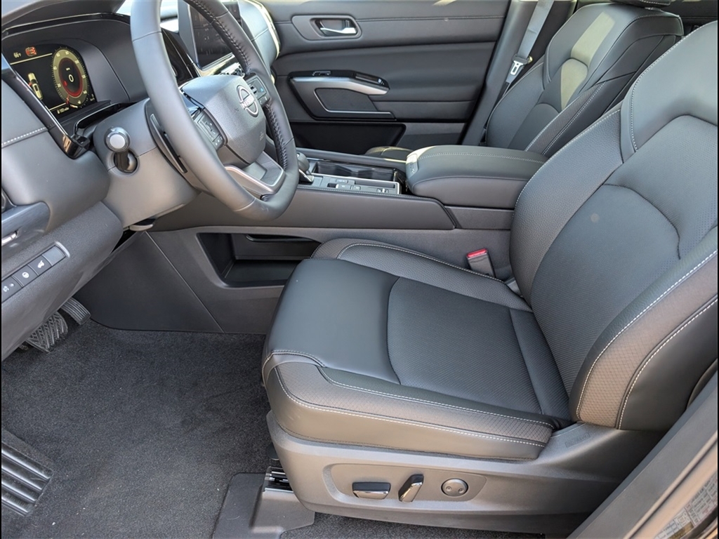 Super Black 2026 Nissan Pathfinder SL 3.5L V6 DOHC FWD 4D Sport Utility 9-Speed Automatic * Bluetooth/Handsfree Calling *, * USB Adapter *, Pathfinder SL Premium, 4D Sport Utility, 3.5L V6 DOHC, 9-Speed Automatic, FWD, Super Black, Charcoal Premium Synthetic, 2nd Row Manual Sunshades, Bose Premium Audio System, Heated Rear Seats, Panoramic Moonroof, SL Premium Package, Tow Hitch Receiver and Harness, Wheels: 20Machined Alloy with Dark Metallic Gray Finish, 18Machined Alloy Wheels, 2nd-Row Captain Chairs, 3rd row seats: bench, 4-Piece Black Splash Guards, 4-Wheel Disc Brakes, 6 Speakers, ABS brakes, Air Conditioning, Alloy wheels, AM/FM radio: SiriusXM w/360L, Auto High-beam Headlights, Auto-dimming Rear-View mirror, Automatic temperature control, Brake assist, Bumpers: body-color, Captains Chairs Carpeted Floor Mats, Cross Bars, Delay-off headlights, Driver door bin, Driver vanity mirror, Dual front impact airbags, Dual front side impact airbags, Electronic Stability Control, Emergency communication system: NissanConnect Services, Four wheel independent suspension, Front anti-roll bar, Front Bucket Seats, Front Center Armrest, Front dual zone A/C, Front reading lights, Fully automatic headlights, Garage door transmitter: HomeLink, Heated door mirrors, Heated Front Bucket Seats, Heated front seats, Heated steering wheel, Illuminated entry, Knee airbag, Low tire pressure warning, NissanConnect featuring Apple CarPlay and Android Auto, Occupant sensing airbag, Outside temperature display, Overhead airbag, Overhead console, Panic alarm, Passenger door bin, Passenger vanity mirror, Power door mirrors, Power driver seat, Power Liftgate, Power steering, Power windows, Radio data system, Radio: AM/FM Audio System with NissanConnect, Rear air conditioning, Rear anti-roll bar, Rear reading lights, Rear seat center armrest, Rear side impact airbag, Rear window defroster, Rear window wiper, Reclining 3rd row seat, Remote keyless entry, Removable Center Console, Security system, Speed control, Speed-sensing steering, Split folding rear seat, Spoiler, Steering wheel mounted audio controls, Tachometer, TailorFit Appointed Seating Surfaces, Telescoping steering wheel, Tilt steering wheel, Traction control, Trip computer, Turn signal indicator mirrors, Variably intermittent wipers, Pathfinder SL Premium, 4D Sport Utility, 3.5L V6 DOHC, 9-Speed Automatic, FWD, Super Black, Charcoal Premium Synthetic, 2nd Row Manual Sunshades, Bose Premium Audio System, Heated Rear Seats