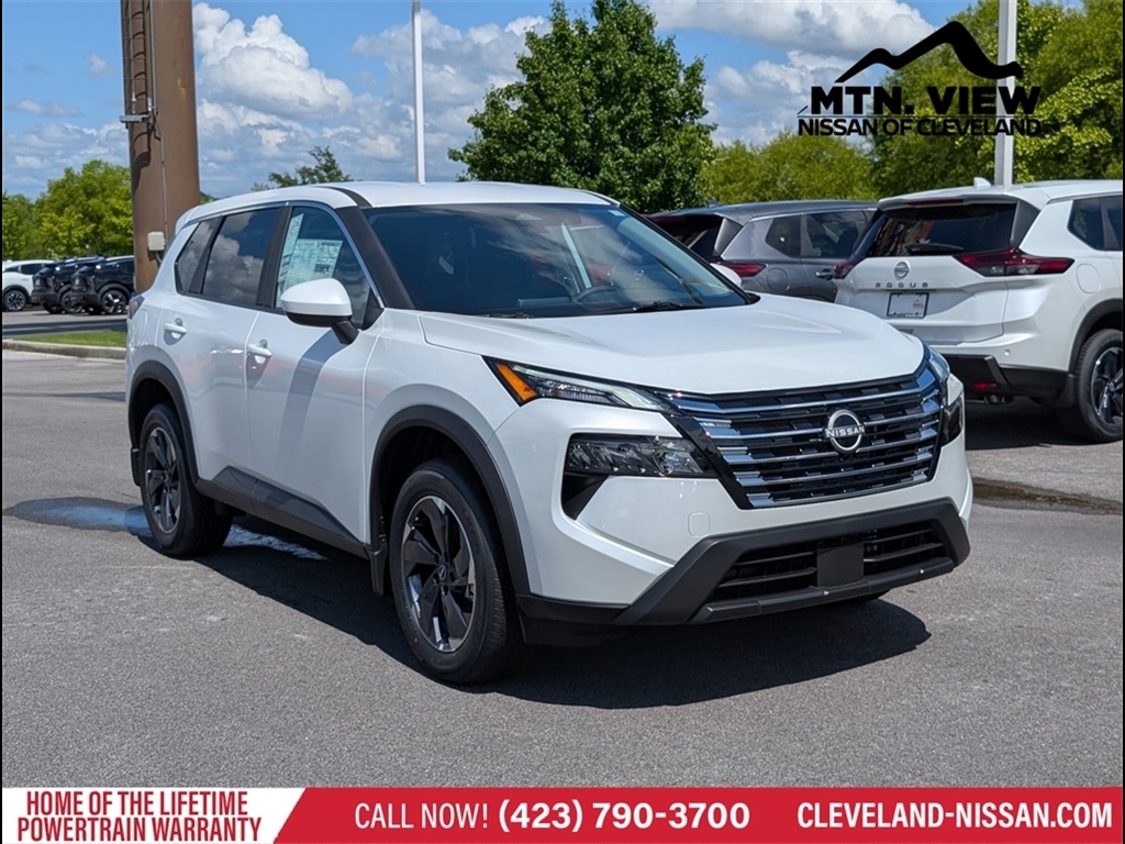 Everest White Pearl 2025 Nissan Rogue SV 1.5L DOHC FWD 4D Sport Utility CVT with Xtronic * Bluetooth/Handsfree Calling *, * USB Adapter *, Rogue SV, 4D Sport Utility, 1.5L DOHC, CVT with Xtronic, FWD, Everest White Pearl, Charcoal Cloth, 4-Wheel Disc Brakes, 6 Speakers, ABS brakes, Air Conditioning, Alloy wheels, AM/FM radio: SiriusXM, Apple CarPlay/Android Auto, Auto High-beam Headlights, Automatic temperature control, Black Splash Guards (Set of 4), Brake assist, Bumpers: body-color, Chrome Rear Bumper Protector, Cloth Seat Trim w/Patterned Inserts, Delay-off headlights, Driver door bin, Driver vanity mirror, Dual front impact airbags, Dual front side impact airbags, Electronic Stability Control, Emergency communication system: NissanConnect Services, First Aid Kit, Floor Mats w/1-Piece Cargo Area Protector, Four wheel independent suspension, Front anti-roll bar, Front Bucket Seats, Front Center Armrest, Front dual zone A/C, Front reading lights, Fully automatic headlights, Heated door mirrors, Illuminated entry, Knee airbag, Low tire pressure warning, Occupant sensing airbag, Outside temperature display, Overhead airbag, Overhead console, Panic alarm, Passenger door bin, Passenger vanity mirror, Power door mirrors, Power driver seat, Power Liftgate, Power steering, Power windows, Premium Paint, Radio data system, Radio: AM/FM NissanConnect, Rear anti-roll bar, Rear seat center armrest, Rear side impact airbag, Rear window defroster, Rear window wiper, Remote keyless entry, Speed control, Speed-sensing steering, Speed-Sensitive Wipers, Split folding rear seat, Spoiler, Steering wheel mounted audio controls, Tachometer, Telescoping steering wheel, Tilt steering wheel, Traction control, Trip computer, USB Charging Cable Set - Nissan, Variably intermittent wipers, Wheels: 18Dark Painted Machine Finished Alloy, Rogue SV, 4D Sport Utility, 1.5L DOHC, CVT with Xtronic, FWD, Everest White Pearl, Charcoal Cloth. Discover the latest in automotive innovation at Mtn View Nis