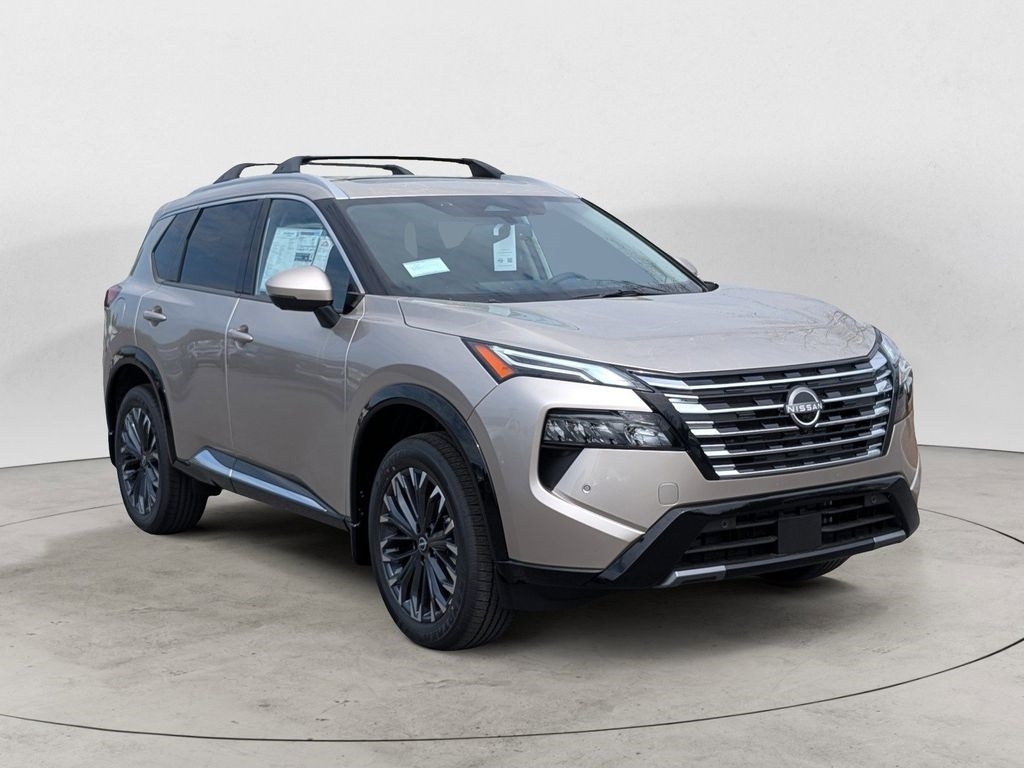 Champagne Silver Metallic 2026 Nissan Rogue Platinum 1.5L DOHC AWD 4D Sport Utility CVT with Xtronic * Bluetooth/Handsfree Calling *, * USB Adapter *, Rogue Platinum Premium AWD, 4D Sport Utility, 1.5L DOHC, CVT with Xtronic, AWD, Champagne Silver Metallic, Charcoal Leather, Head-Up Display, Heated Rear Seats, Motion-Activated Power Liftgate, Navigation system: Google Maps, Platinum Premium Package, Tri-Zone Automatic Temperature Control, 10 Speakers, 4-Wheel Disc Brakes, ABS brakes, Air Conditioning, Alloy wheels, AM/FM radio: SiriusXM w/360L, Auto High-beam Headlights, Auto-dimming Rear-View mirror, Automatic temperature control, Black Splash Guards (set of 4), Bose Premium Audio System, Brake assist, Bumpers: body-color, Delay-off headlights, Driver door bin, Driver vanity mirror, Dual front impact airbags, Dual front side impact airbags, Electronic Stability Control, Emergency communication system: NissanConnect Services, First Aid Kit, Floor Mats with 2-Piece Cargo Area Protector, Four wheel independent suspension, Front anti-roll bar, Front Bucket Seats, Front Center Armrest, Front dual zone A/C, Front reading lights, Fully automatic headlights, Garage door transmitter: myQ Connected Garage, Heated door mirrors, Heated Front Bucket Seats, Heated front seats, Heated steering wheel, Illuminated entry, Knee airbag, Low tire pressure warning, Memory seat, Occupant sensing airbag, Outside temperature display, Overhead airbag, Overhead console, Panic alarm, Passenger door bin, Passenger vanity mirror, Power door mirrors, Power driver seat, Power Liftgate, Power moonroof, Power passenger seat, Power steering, Power windows, Quilted Semi-Aniline Leather-Appointed Seat Trim, Radio data system, Radio: AM/FM NissanConnect with Navigation, Rear anti-roll bar, Rear reading lights, Rear seat center armrest, Rear side impact airbag, Rear window defroster, Rear window wiper, Remote keyless entry, Roof Rail Cross Bars, Security system, Speed control, Speed-sensing steering, Speed-Sensitive Wipers, Split folding rear seat, Spoiler, Steering wheel mounted audio controls, Tachometer, Telescoping steering wheel, Tilt steering wheel, Traction control, Trip computer, Turn signal indicator mirrors, Variably intermittent wipers, Wheels: 19Unique Dark Painted Aluminum Alloy, Wireless Apple CarPlay/Wireless Android Auto, Rogue Platinum Premium AWD, 4D Sport Utility, 1.5L DOHC, CVT with Xtronic, AWD, Champagne Silver Metallic, Charcoal Leather, Head-Up Display, Heated Rear Se