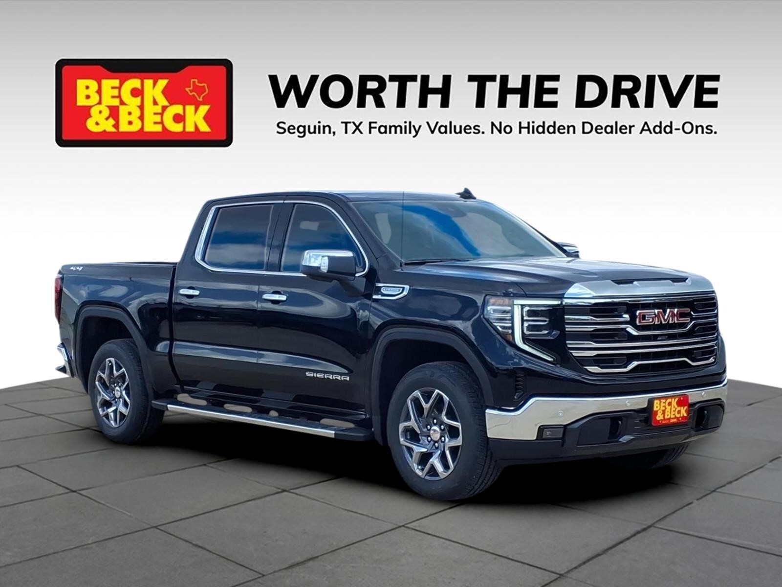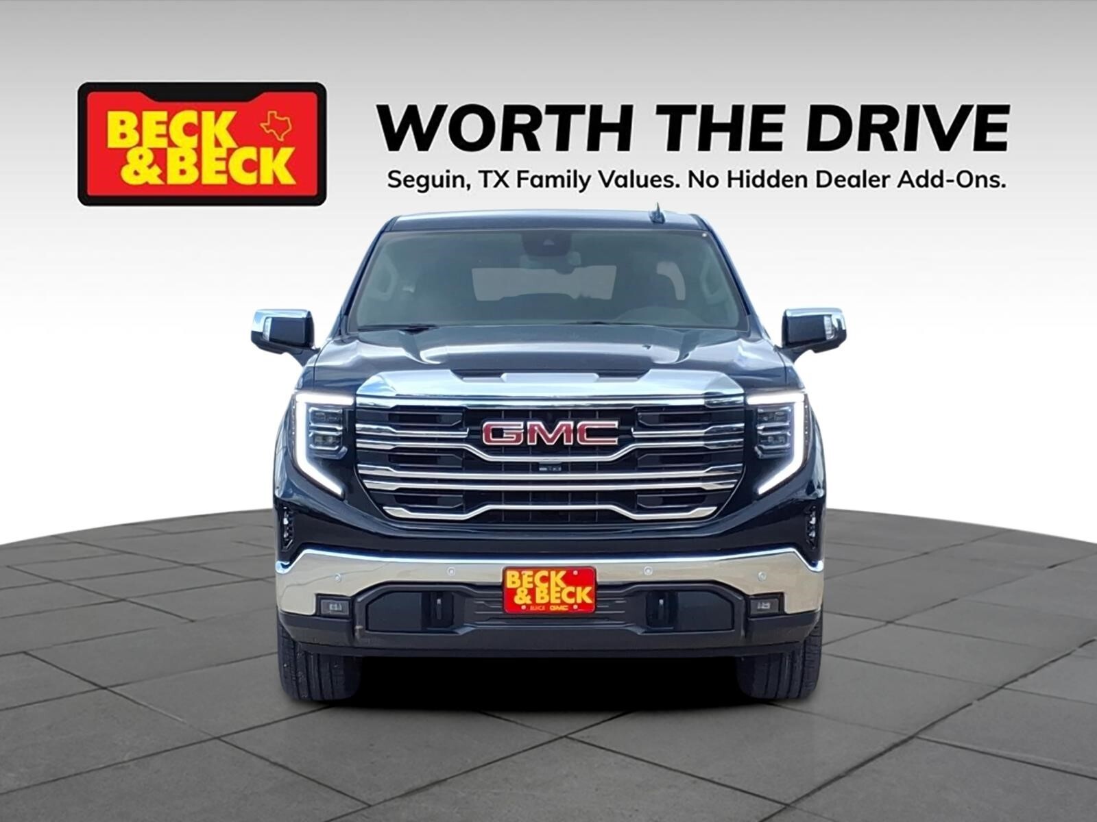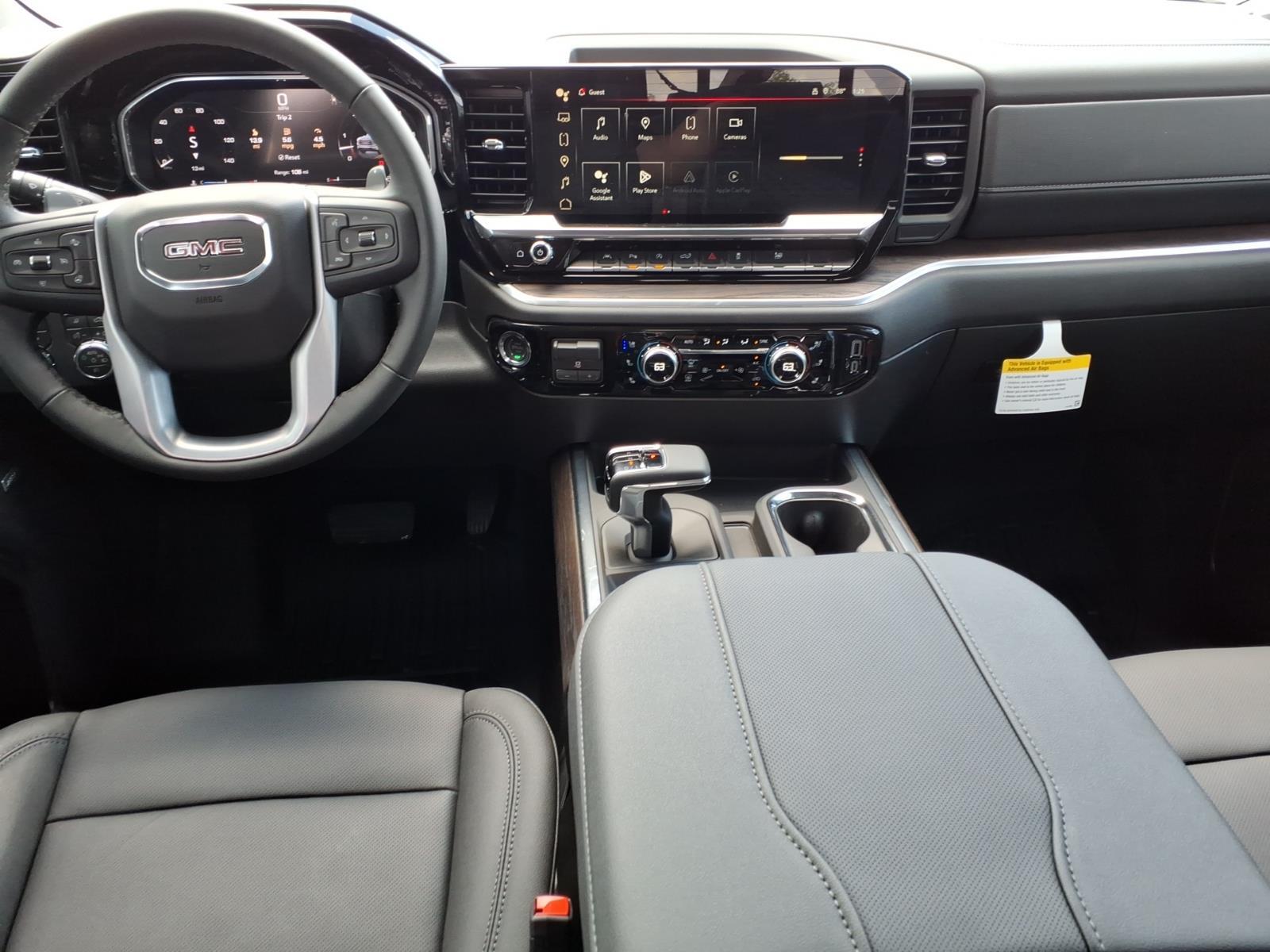 Onyx Black 2026 GMC Sierra 1500 SLT 4WD 10-Speed Automatic EcoTec3 5.3L V8 Sierra 1500 SLT, 4D Crew Cab, EcoTec3 5.3L V8, 4WD, Onyx Black, Jet Black w/Forge Perforated Leather Seat Trim, 10-Way Power Driver Seat Adjuster with Lumbar, 10-Way Power Passenger Seat Adjuster with Lumbar, 120-Volt Bed Mounted Power Outlet, 120-Volt Interior Power Outlet, 170 Amp Alternator, 2 Charge/Data USB Ports, 2 Charge/Data USB Ports Inside Center Console, 2 Type-C Charge-Only Rear USB Ports, 6-Speaker Audio System Feature, Adaptive Cruise Control, Auto-Locking Rear Differential, Auxiliary External Transmission Oil Cooler, Chrome Header and Chrome Grille Insert Bars, Chrome Wheel to Wheel Assist Steps, Color-Keyed Carpeting Floor Covering, Deep-Tinted Glass, Driver Memory, Electric Rear-Window Defogger, Electronic Precision Shift, Floor-Mounted Center Console, Front 40/20/40 Split-Bench Seat, Front Bucket Seats, Front Frame-Mounted Black Recovery Hooks, Front Rain-Sensing Wipers, HD Rear Vision Camera, HD Surround Vision, Heated 2nd Row Outboard Seats, Heated Driver and Front Outboard Passenger Seating, Hitch Guidance, Hitch View, in-Vehicle Trailering System App, Integrated Trailer Brake Controller, Keyless Open and Start, LED Cargo Area Lighting, Manual Tilt-Wheel and Telescoping Steering Column, OnStar Services Capable, Perimeter Lighting, Power Door Locks, Power Front Passenger Windows with Express Up/Down, Power Front Windows with Driver Express Up/Down, Power Rake and Telescoping Steering Column, Power Rear Windows with Express Down, Power Sliding Rear Window with Rear Defogger, Preferred Equipment Group 4SA, Premium Bose 7-Speaker Sound System, ProGrade Trailering System, Push Button Start, Rear Cross Traffic Braking, Rear Pedestrian Detection, Rear Wheelhouse Liners, Remote Vehicle Starter System, Safety Alert Seat, Sierra Safety Plus Package, SiriusXM with 360L Trial Subscription, SLT Convenience Package, SLT Preferred Package, SLT Premium Plus Package, Spray-on Pickup Bedliner with GMC Logo, Steering Wheel Audio Controls, Theft Deterrent System (unauthorized Entry), Trailer Camera Provisions, Trailer Side Blind Zone Alert, Trailering Package, Ultrasonic Front and Rear Park Assist, Universal Home Remote, Ventilated Driver and Front Passenger Seats, Wheels: 18x 8.56-Spoke Machined Aluminum, Wi-Fi Hotspot Capable, Wireless Charging. Recent Arrival! Price includes: $1750 - Purchase Allowance. Exp. 04/30/2026 $2500 - Bonus Cash. Exp. 04/30/2026