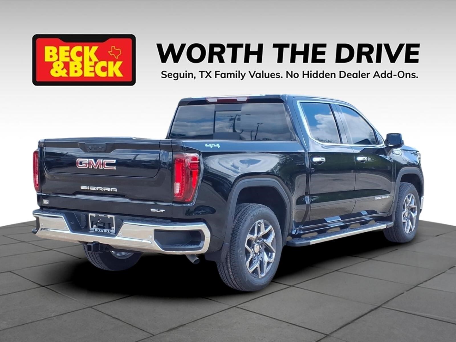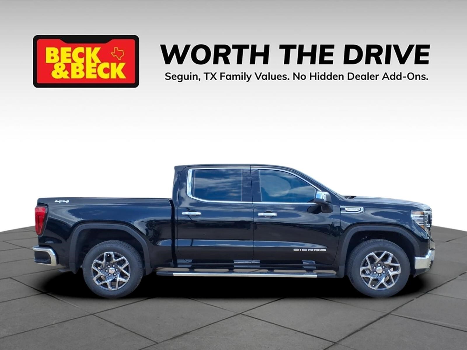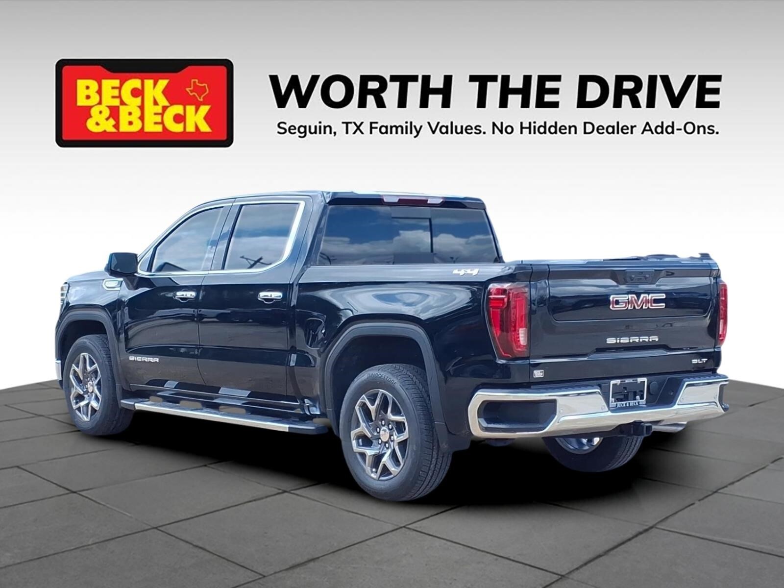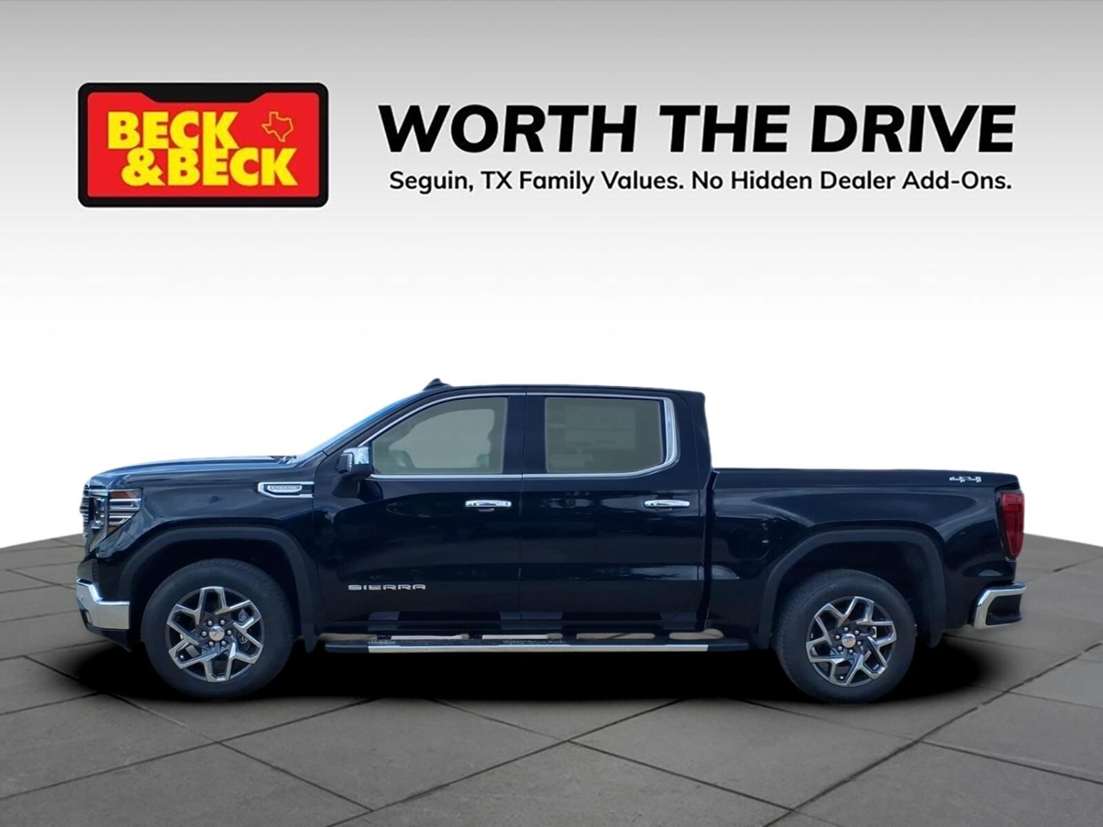 Onyx Black 2026 GMC Sierra 1500 SLT 4WD 10-Speed Automatic EcoTec3 5.3L V8 Sierra 1500 SLT, 4D Crew Cab, EcoTec3 5.3L V8, 4WD, Onyx Black, Jet Black w/Forge Perforated Leather Seat Trim, 10-Way Power Driver Seat Adjuster with Lumbar, 10-Way Power Passenger Seat Adjuster with Lumbar, 120-Volt Bed Mounted Power Outlet, 120-Volt Interior Power Outlet, 170 Amp Alternator, 2 Charge/Data USB Ports, 2 Charge/Data USB Ports Inside Center Console, 2 Type-C Charge-Only Rear USB Ports, 6-Speaker Audio System Feature, Adaptive Cruise Control, Auto-Locking Rear Differential, Auxiliary External Transmission Oil Cooler, Chrome Header and Chrome Grille Insert Bars, Chrome Wheel to Wheel Assist Steps, Color-Keyed Carpeting Floor Covering, Deep-Tinted Glass, Driver Memory, Electric Rear-Window Defogger, Electronic Precision Shift, Floor-Mounted Center Console, Front 40/20/40 Split-Bench Seat, Front Bucket Seats, Front Frame-Mounted Black Recovery Hooks, Front Rain-Sensing Wipers, HD Rear Vision Camera, HD Surround Vision, Heated 2nd Row Outboard Seats, Heated Driver and Front Outboard Passenger Seating, Hitch Guidance, Hitch View, in-Vehicle Trailering System App, Integrated Trailer Brake Controller, Keyless Open and Start, LED Cargo Area Lighting, Manual Tilt-Wheel and Telescoping Steering Column, OnStar Services Capable, Perimeter Lighting, Power Door Locks, Power Front Passenger Windows with Express Up/Down, Power Front Windows with Driver Express Up/Down, Power Rake and Telescoping Steering Column, Power Rear Windows with Express Down, Power Sliding Rear Window with Rear Defogger, Preferred Equipment Group 4SA, Premium Bose 7-Speaker Sound System, ProGrade Trailering System, Push Button Start, Rear Cross Traffic Braking, Rear Pedestrian Detection, Rear Wheelhouse Liners, Remote Vehicle Starter System, Safety Alert Seat, Sierra Safety Plus Package, SiriusXM with 360L Trial Subscription, SLT Convenience Package, SLT Preferred Package, SLT Premium Plus Package, Spray-on Pickup Bedliner with GMC Logo, Steering Wheel Audio Controls, Theft Deterrent System (unauthorized Entry), Trailer Camera Provisions, Trailer Side Blind Zone Alert, Trailering Package, Ultrasonic Front and Rear Park Assist, Universal Home Remote, Ventilated Driver and Front Passenger Seats, Wheels: 18x 8.56-Spoke Machined Aluminum, Wi-Fi Hotspot Capable, Wireless Charging. Recent Arrival! Price includes: $1750 - Purchase Allowance. Exp. 04/30/2026 $2500 - Bonus Cash. Exp. 04/30/2026