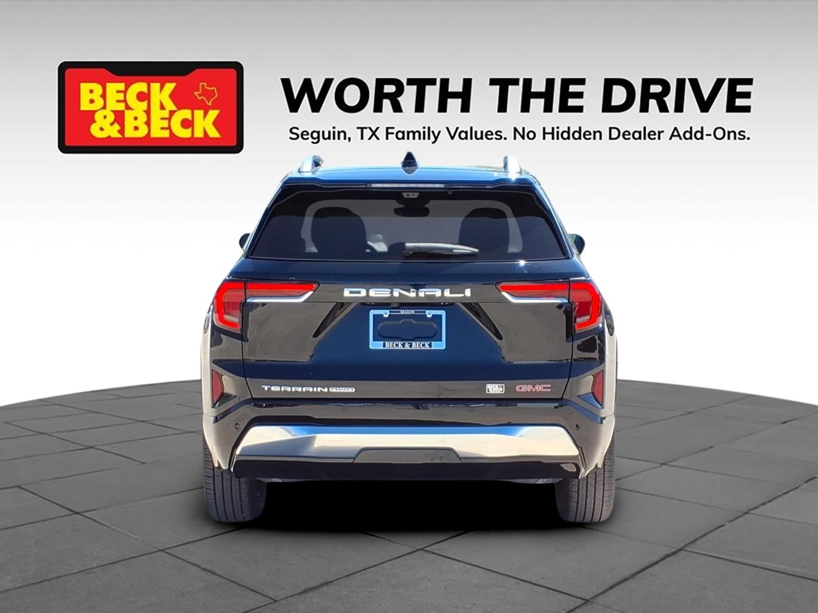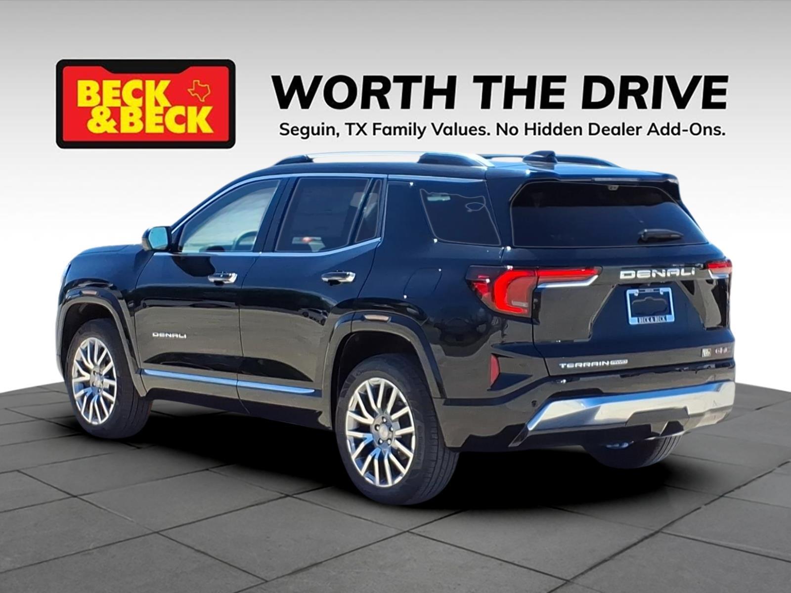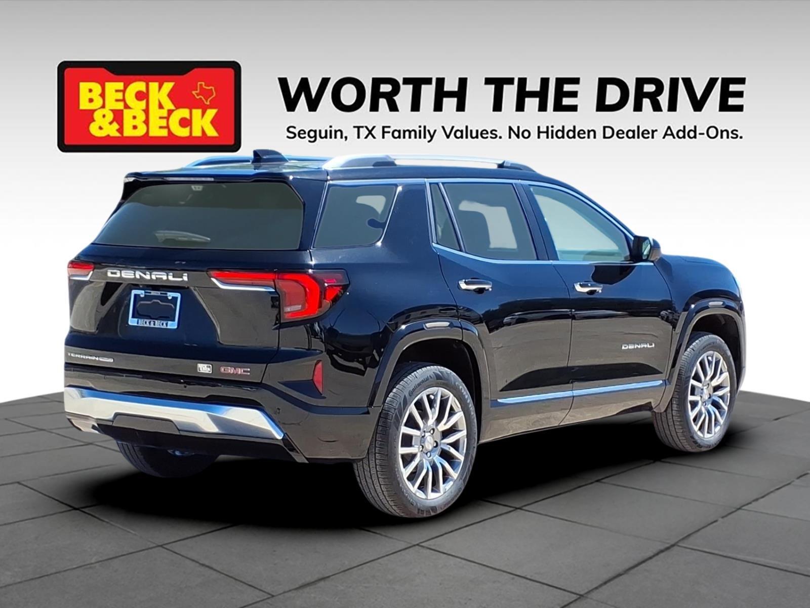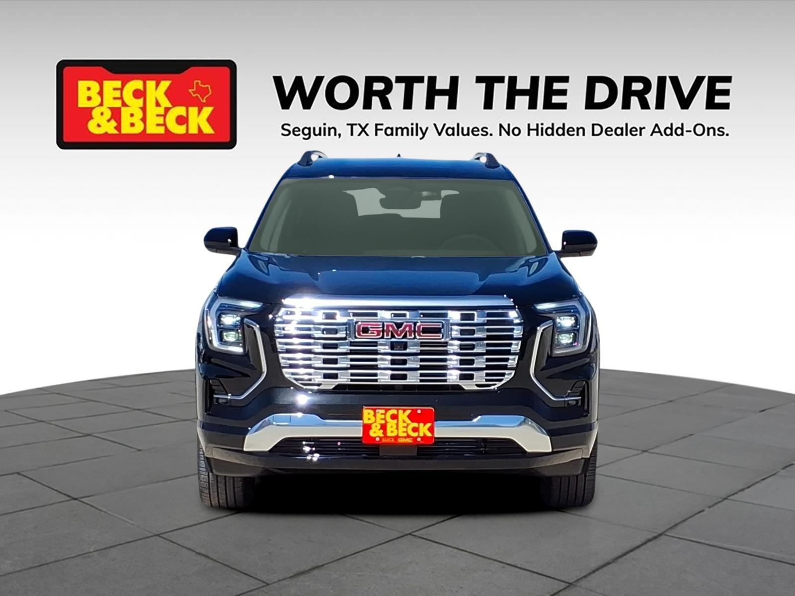 Ebony Twilight Metallic 2026 GMC Terrain Denali AWD 8-Speed Automatic with Overdrive 1.5L DOHC Terrain Denali, 4D Sport Utility, 1.5L DOHC, AWD, Ebony Twilight Metallic, After Dark w/Perforated Leather-Appointed Seat Trim, Alloy wheels, Navigation System, Power Liftgate, Preferred Equipment Group 5SB, Wheels: 19x 7.5Midnight Silver Aluminum. Recent Arrival! 24/26 City/Highway MPG Price includes: $1000 - Bonus Cash. Exp. 03/31/2026