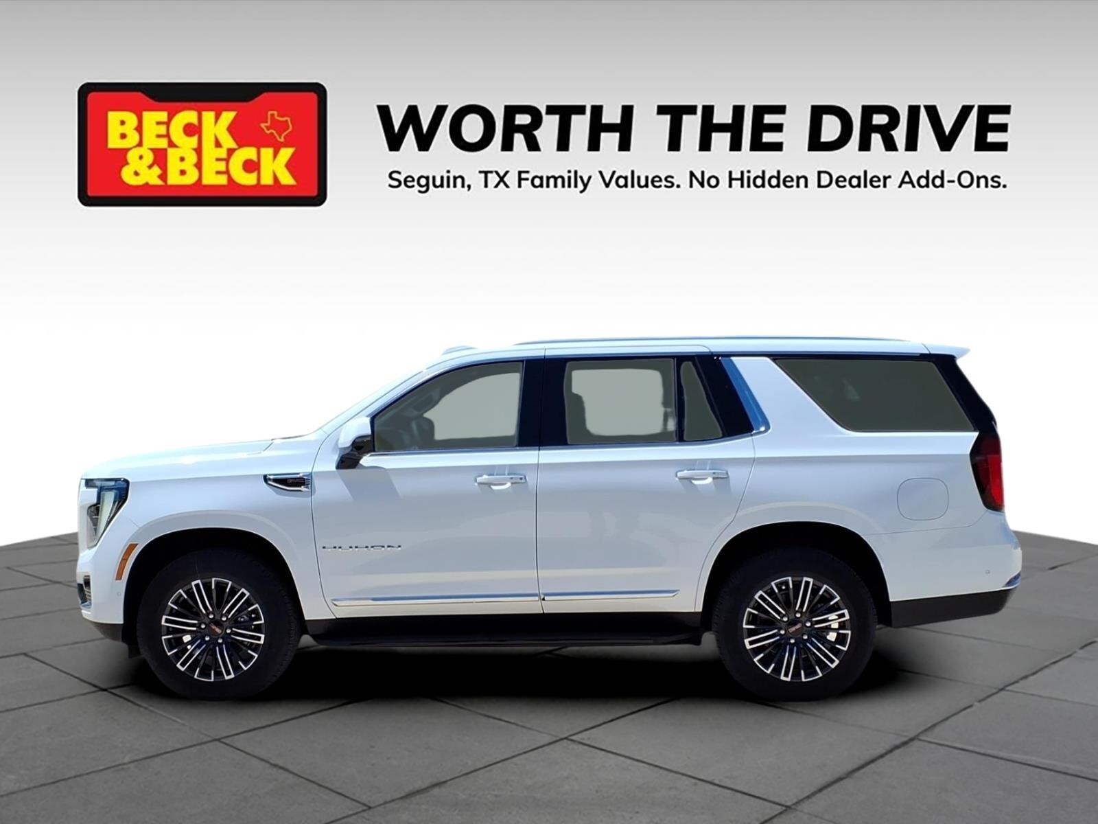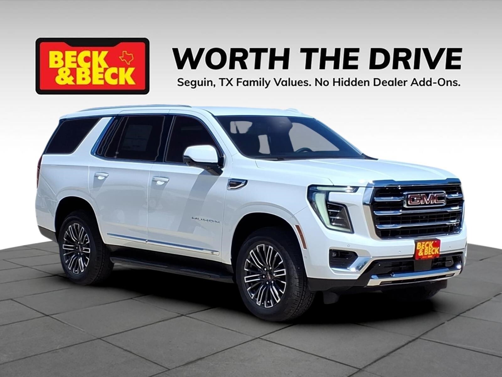 Summit White 2026 GMC Yukon Elevation 4WD 10-Speed Automatic with Overdrive EcoTec3 5.3L V8 Yukon Elevation, 4D Sport Utility, EcoTec3 5.3L V8, 4WD, Summit White, Jet Black w/Perforated Leather Seating Surfaces, Navigation system: GMC Connected Navigation, Power Liftgate, Power Release 2nd Row Bucket Seats, Preferred Equipment Group 4SA. Recent Arrival! Awards: * Car and Driver 10 Best Trucks and SUVs Car and Driver Editors Choice Car and Driver, January 2017.
