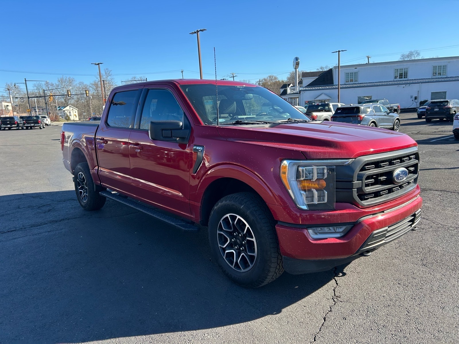 This vehicle is a 2022 Ford F-150 Supercrew 4x4 XLT, with a low mileage of 23,181 miles. It is equipped with a 5.0 liter 8 cylinder engine and has a rapid red metallic tinted clearcoat d4 exterior. The fuel economy in city is 12 mpg and on highway is 17 mpg, making it an efficient choice for drivers. The interior of this car is black fb and it has a crash test rating of 5 out of 5 stars. Additionally, it comes with features such as blind spot sensor, hill start assist, and part time four wheel drive to ensure a safe and comfortable ride. This vehicle is sure to provide an enjoyable driving experience!