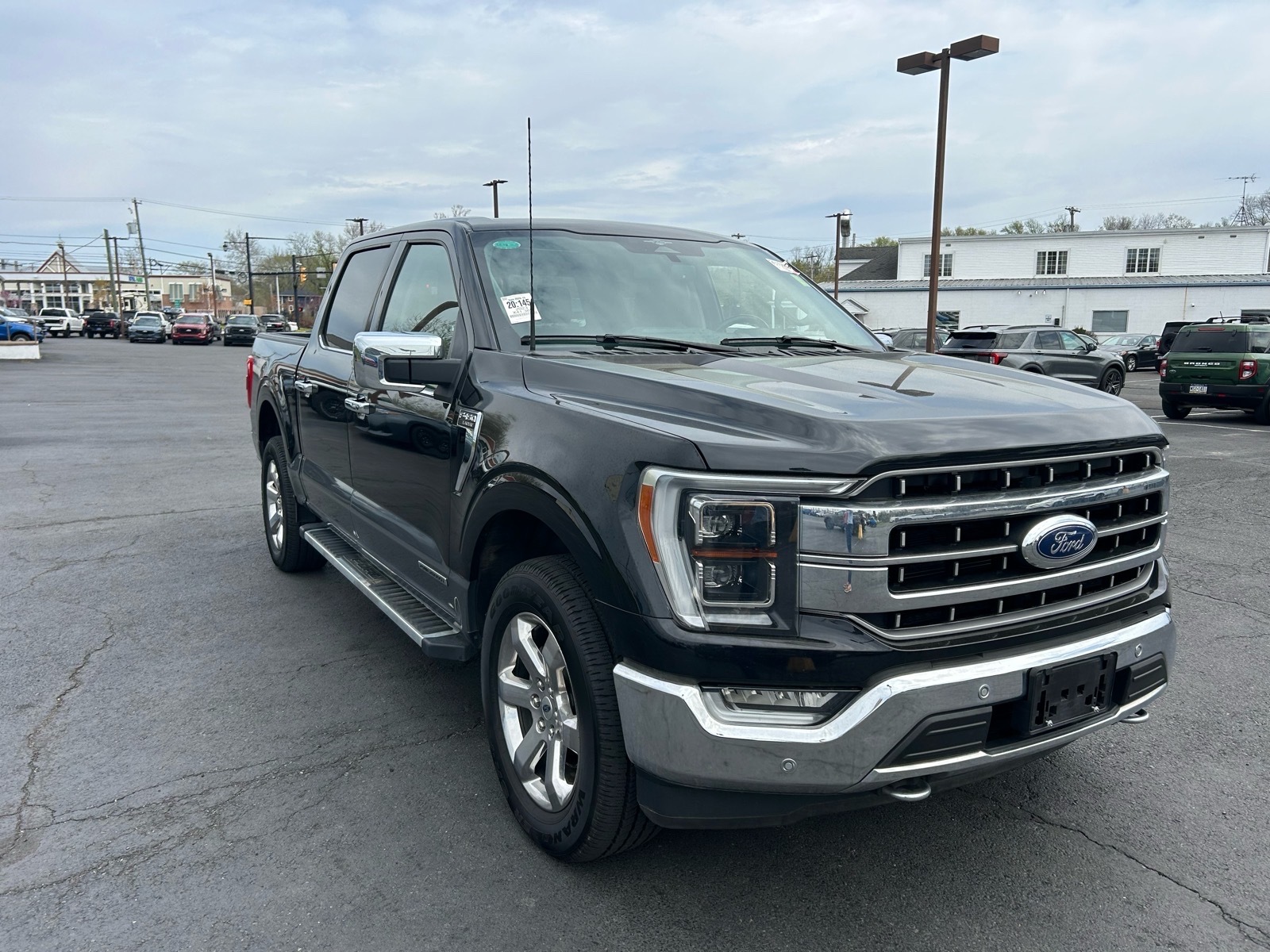 This vehicle is a 2023 Ford Supercrew 4x4 F-150 Lariat, with a 3.5 liter 6 cylinder engine and an agate black metallic exterior. It has driven 41,385 miles and has a fuel economy of 23 mpg in the city and 23 mpg on the highway. The interior is black hb and it has a crash test rating of 5 out of 5 stars. Some of the features of this vehicle include blind spot sensor, hill start assist, part time with on demand four wheel drive, navigation system with voice recognition, and navigation with touch screen display. This car is sure to provide you with a reliable and comfortable ride!