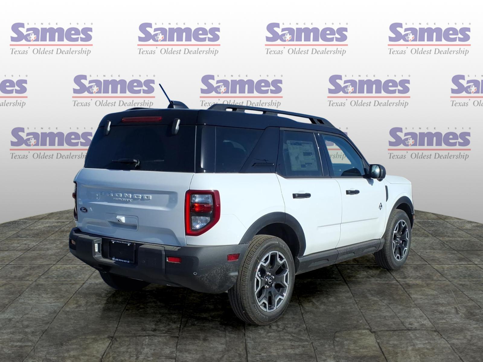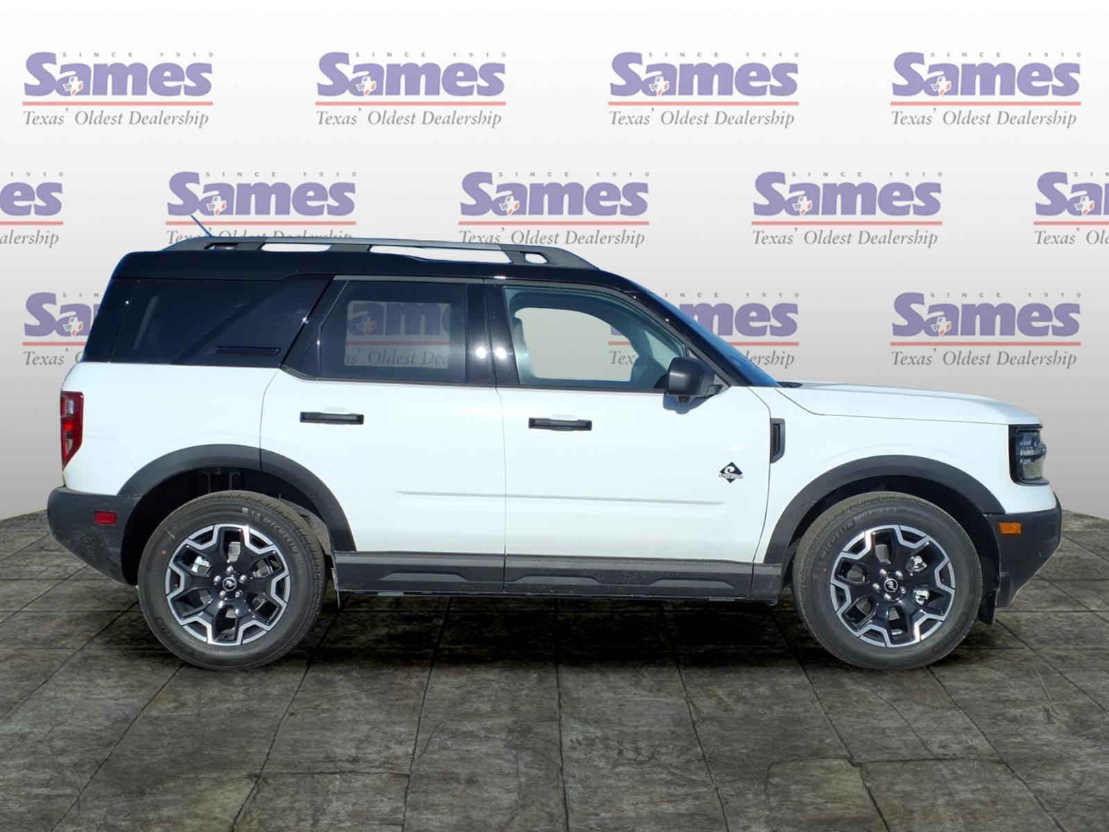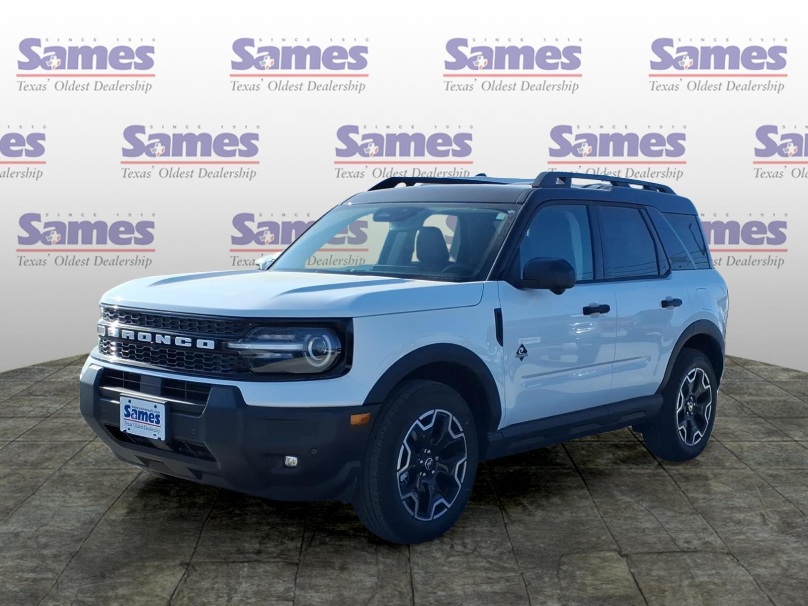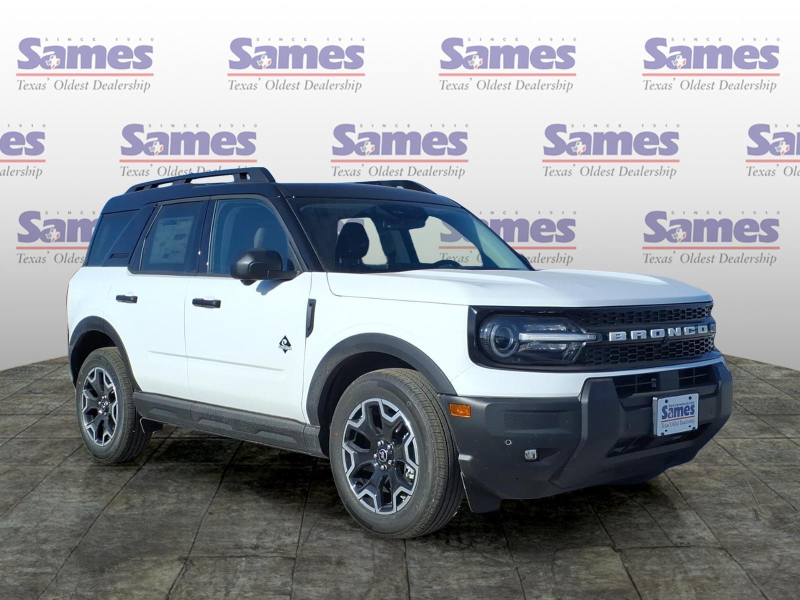 This 2026 Ford Bronco Sport Outer Banks in Oxford White comes with the following features: 1.5L EcoBoost 8-Speed Automatic 4WD Ford Connectivity Package (1-Year Included), Internet access capable: 5G Modem - Ford Connectivity Package, Outer Banks Tech Package (Connected Navigation (1-Year Included) and Radio: HD w/B&O Sound System by Bang & Olufsen), 360-Degree Camera with Trail View, 4-Wheel Disc Brakes, 6 Speakers, ABS brakes, Air Conditioning, Alloy wheels, AM/FM radio: SiriusXM with 360L, AM/FM Stereo, Apple CarPlay/Android Auto, Auto High-beam Headlights, Auto-dimming Rear-View mirror, Automatic temperature control, Brake assist, Compass, Delay-off headlights, Driver door bin, Driver vanity mirror, Dual front impact airbags, Dual front side impact airbags, Electronic Stability Control, Emergency communication system: SYNC 4 911 Assist, Exterior Parking Camera Rear, Four wheel independent suspension, Front anti-roll bar, Front Bucket Seats, Front Center Armrest, Front Driver/Passenger Seat Back Map Pockets, Front dual zone A/C, Front fog lights, Front License Plate Bracket, Front Parking Sensors, Front reading lights, Fully automatic headlights, Heated door mirrors, Heated front seats, Heated steering wheel, Illuminated entry, Knee airbag, Low tire pressure warning, Memory seat, Occupant sensing airbag, Outside temperature display, Overhead airbag, Overhead console, Panic alarm, Passenger door bin, Passenger vanity mirror, Power door mirrors, Power driver seat, Power passenger seat, Power steering, Power windows, Radio data system, Rear anti-roll bar, Rear Parking Sensors, Rear reading lights, Rear seat center armrest, Rear window defroster, Rear window wiper, Remote keyless entry, Reverse Brake Assist, Security system, SiriusXM with 360L, Speed control, Speed-sensing steering, Speed-Sensitive Wipers, Split folding rear seat, Steering wheel mounted audio controls, SYNC 4 with Enhanced Voice Recognition, Tachometer, Telescoping steering wheel, Tilt steering wheel, Traction control, Trip computer, Variably intermittent wipers, and Wheels: 18Ebony Black. Sames Auto Group stores have been in business for over 115 years, as part of the Oldest Auto Group in Texas were committed to providing exceptional service before, during, and after your purchase. Our expert team at Sames Ford of Bastrop will ensure you drive away completely satisfied. Schedule your virtual consultation or test drive today. No hassle remote delivery to Houston, Austin and San Antonio a