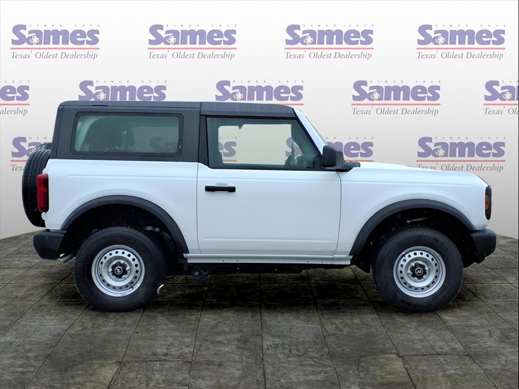 This 2025 Ford Bronco in Oxford White comes with the following features: 2.3L EcoBoost I-4 10-Speed Automatic 4WD Equipment Group 101A, 4-Wheel Disc Brakes, 4.46 Axle Ratio, 7 Speakers, ABS brakes, Air Conditioning, AM/FM radio: SiriusXM with 360L, AM/FM Stereo, Auto High-beam Headlights, Brake assist, Cloth Bucket Seats, Compass, Convertible HardTop, Convertible roof lining, Delay-off headlights, Driver door bin, Driver vanity mirror, Dual front impact airbags, Dual front side impact airbags, Electronic Stability Control, Emergency communication system: 911 Assist, Exterior Parking Camera Rear, Front anti-roll bar, Front Bucket Seats, Front Center Armrest, Front License Plate Bracket, Front reading lights, Front wheel independent suspension, Fully automatic headlights, Glass rear window, Heated door mirrors, Illuminated entry, Integrated roll-over protection, Low tire pressure warning, Occupant sensing airbag, Outside temperature display, Overhead airbag, Overhead console, Panic alarm, Passenger door bin, Passenger vanity mirror, Power door mirrors, Power steering, Power windows, Radio data system, Rear window defroster, Rear window wiper, Remote keyless entry, Security system, SiriusXM w/360L, Speed control, Split folding rear seat, Steering wheel mounted audio controls, SYNC 4, Tachometer, Telescoping steering wheel, Tilt steering wheel, Traction control, Trip computer, Variably intermittent wipers, and Wheels: 16Bright Polished Silver-Painted Steel. Sames Auto Group stores have been in business for over 115 years, as part of the Oldest Auto Group in Texas were committed to providing exceptional service before, during, and after your purchase. Our expert team at Sames Ford of Bastrop will ensure you drive away completely satisfied. Schedule your virtual consultation or test drive today. No hassle remote delivery to Houston, Austin and San Antonio and the rest of Texas available upon request. Price includes: $2000 - Retail Bonus Cash. Exp. 01/05/2026