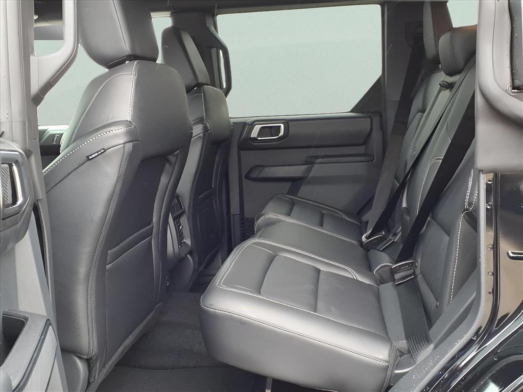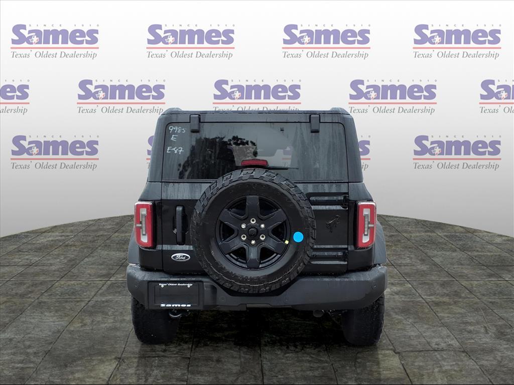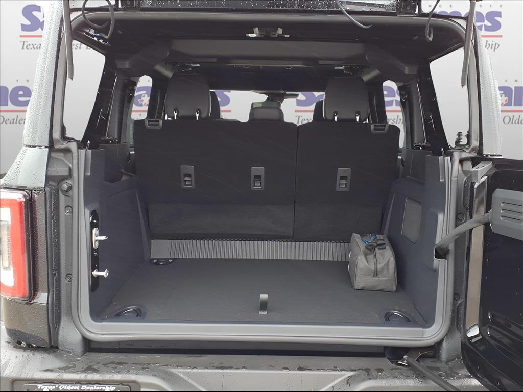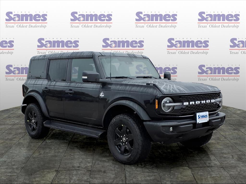 This 2025 Ford Bronco Outer Banks in Shadow Black comes with the following features: 2.7L EcoBoost V6 10-Speed Automatic 4WD Black Appearance Package (Black Molded-In-Color Door Handles, Black Molded-In-Color Fender Flares, Black Molded-In-Color Sideview Mirror Caps, and Black-Painted Molded-In-Color Grille), Equipment Group 314A Lux Package (360-Degree Camera, Adaptive Cruise Control, Evasive Steering Assist, Front Parking Sensors, Information on Demand Panel, Radio: B&O Sound System by Bang & Olufsen, Sideview Mirrors, and Universal Garage Door Opener), 18Bright Machined Aluminum Wheels, 3.73 Axle Ratio, 4-Wheel Disc Brakes, 7 Speakers, ABS brakes, Air Conditioning, Alloy wheels, AM/FM radio: SiriusXM with 360L, AM/FM Stereo, Auto High-beam Headlights, Auto-dimming Rear-View mirror, Automatic temperature control, Brake assist, Compass, Connected Navigation, Delay-off headlights, Driver door bin, Driver vanity mirror, Dual front impact airbags, Dual front side impact airbags, Electronic Stability Control, Emergency communication system: 911 Assist, Exterior Parking Camera Rear, Front anti-roll bar, Front Bucket Seats, Front Center Armrest, Front dual zone A/C, Front fog lights, Front License Plate Bracket, Front reading lights, Front wheel independent suspension, Fully automatic headlights, Hard Top Sound Deadening Headliner, Heated door mirrors, Heated front seats, Heated Leather-Trimmed/Vinyl Bucket Seats, Heated steering wheel, Illuminated entry, Integrated roll-over protection, Leather Shift Knob, Low tire pressure warning, Navigation system: Connected Navigation, Occupant sensing airbag, Outside temperature display, Overhead airbag, Overhead console, Panic alarm, Passenger door bin, Passenger vanity mirror, Power door mirrors, Power driver seat, Power passenger seat, Power steering, Power windows, Radio data system, Rear seat center armrest, Rear-Window Defroster & Washer, Remote keyless entry, Security system, Shadow Black-Painted Hard Top, SiriusXM w/360L, Speed control, Split folding rear seat, Steering wheel mounted audio controls, SYNC 4, Tachometer, Telescoping steering wheel, Tilt steering wheel, Traction control, Trip computer, Variably intermittent wipers, and Voltmeter. Sames Auto Group stores have been in business for over 115 years, as part of the Oldest Auto Group in Texas were committed to providing exceptional service before, during, and after your purchase. Our expert team at Sames Ford of Bastrop will ensure you drive away complete