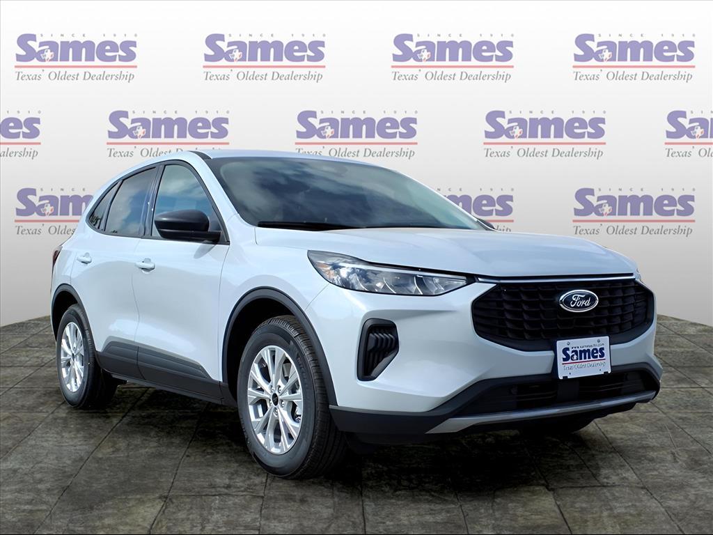 This 2026 Ford Escape Active in Space Silver Metallic comes with the following features: 1.5L EcoBoost 8-Speed Automatic FWD Equipment Group 200A, 3.81 Axle Ratio, 4-Wheel Disc Brakes, 6 Speakers, ABS brakes, Air Conditioning, Alloy wheels, AM/FM radio: SiriusXM, AM/FM Stereo, Auto High-beam Headlights, Automatic temperature control, Brake assist, Bumpers: body-color, Compass, Delay-off headlights, Driver door bin, Driver vanity mirror, Dual front impact airbags, Dual front side impact airbags, Electronic Stability Control, Emergency communication system: SYNC 4 911 Assist, Ford App, Four wheel independent suspension, Front anti-roll bar, Front Bucket Seats, Front Center Armrest, Front dual zone A/C, Front License Plate Bracket, Front reading lights, Fully automatic headlights, Illuminated entry, Knee airbag, Low tire pressure warning, Occupant sensing airbag, Outside temperature display, Overhead airbag, Overhead console, Panic alarm, Passenger door bin, Passenger vanity mirror, Power door mirrors, Power Liftgate, Power steering, Power windows, Radio data system, Rear anti-roll bar, Rear reading lights, Rear seat center armrest, Rear window defroster, Rear window wiper, Remote keyless entry, Speed control, Speed-sensing steering, Speed-Sensitive Wipers, Split folding rear seat, Spoiler, Steering wheel mounted audio controls, SYNC 4, Tachometer, Telescoping steering wheel, Tilt steering wheel, Traction control, Trip computer, Unique Cloth Front Bucket Seats, Variably intermittent wipers, and Wheels: 17Shadow Silver-Painted Aluminum. Sames Auto Group stores have been in business for over 115 years, as part of the Oldest Auto Group in Texas were committed to providing exceptional service before, during, and after your purchase. Our expert team at Sames Ford of Bastrop will ensure you drive away completely satisfied. Schedule your virtual consultation or test drive today. No hassle remote delivery to Houston, Austin and San Antonio and the rest of Texas available upon request. Price includes: $1000 - Bonus Customer Cash. Exp. 01/05/2026
