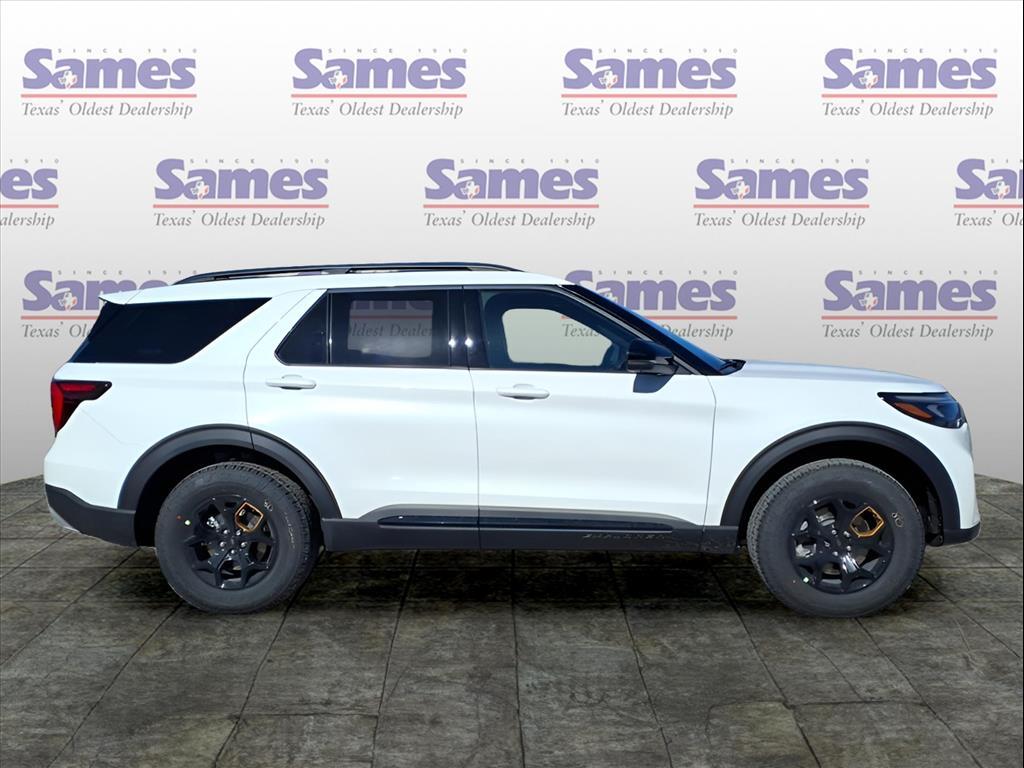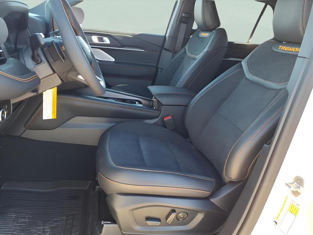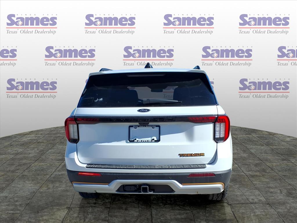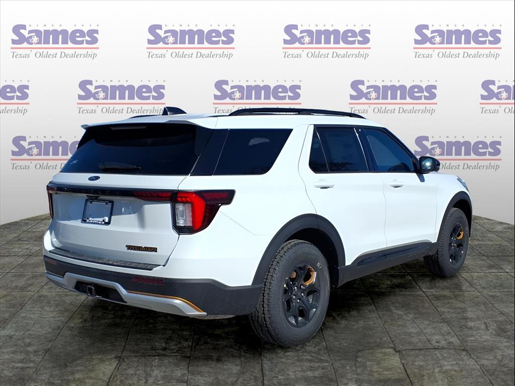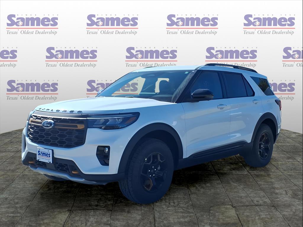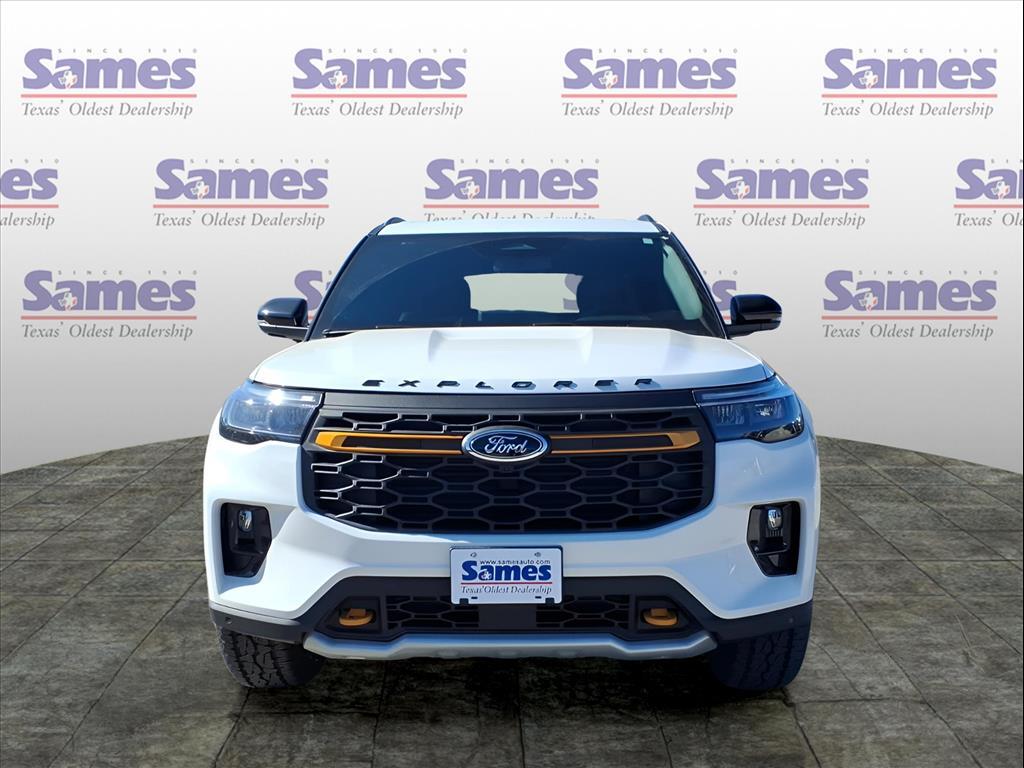 This 2026 Ford Explorer Tremor in Star White Metallic Tri-Coat comes with the following features: 3.0L EcoBoost V6 10-Speed Automatic 4WD Equipment Group 800A Standard Package (Heated/Ventilated Miko Captains Chairs, Radio: B&O Sound System by Bang and Olufsen, and Wheels: 18High Gloss Black-Painted Aluminum), Tremor Ultimate Package (3rd Row PowerFold Seats, Ambient Lighting, Memory Drivers Seat, Multicontour Seats with Front Active Motion, Panoramic Fixed Glass Roof with Power Shade, Power-Folding with Autofold Side Mirrors, Radio: B&O Sound System by Bang & Olufsen, and Rain-Sensing Wipers (front Only)), 10 Speakers, 3rd row seats: bench, 4-Wheel Disc Brakes, ABS brakes, Air Conditioning, Alloy wheels, AM/FM radio: SiriusXM with 360L, Apple CarPlay/Android Auto, Auto High-beam Headlights, Automatic temperature control, BlueCruise (equipment 1-Year 90-Day Plan), BlueCruise Hardware, Brake assist, Bumpers: body-color, Compass, Delay-off headlights, Driver door bin, Driver vanity mirror, Dual front impact airbags, Dual front side impact airbags, Electronic Stability Control, Emergency communication system: 911 Assist, Exterior Parking Camera Rear, Four wheel independent suspension, Front anti-roll bar, Front Bucket Seats, Front Center Armrest, Front dual zone A/C, Front fog lights, Front License Plate Bracket, Front reading lights, Fully automatic headlights, Heated door mirrors, Heated front seats, Heated rear seats, Heated steering wheel, Illuminated entry, Knee airbag, Leather steering wheel, Low tire pressure warning, Navigation System, Occupant sensing airbag, Outside temperature display, Overhead airbag, Overhead console, Panic alarm, Passenger door bin, Passenger vanity mirror, Power door mirrors, Power driver seat, Power Liftgate, Power passenger seat, Power steering, Power windows, Rear air conditioning, Rear anti-roll bar, Rear reading lights, Rear window defroster, Rear window wiper, Remote keyless entry, SecuriCode Keyless Entry Keypad, Security system, Speed control, Speed-sensing steering, Speed-Sensitive Wipers, Split folding rear seat, Spoiler, Sport steering wheel, Steering wheel mounted audio controls, Tachometer, Telescoping steering wheel, Tilt steering wheel, Traction control, Trip computer, Variably intermittent wipers, and Ventilated front seats. Sames Auto Group stores have been in business for over 115 years, as part of the Oldest Auto Group in Texas were committed to providing exceptional service before, during, and after yo