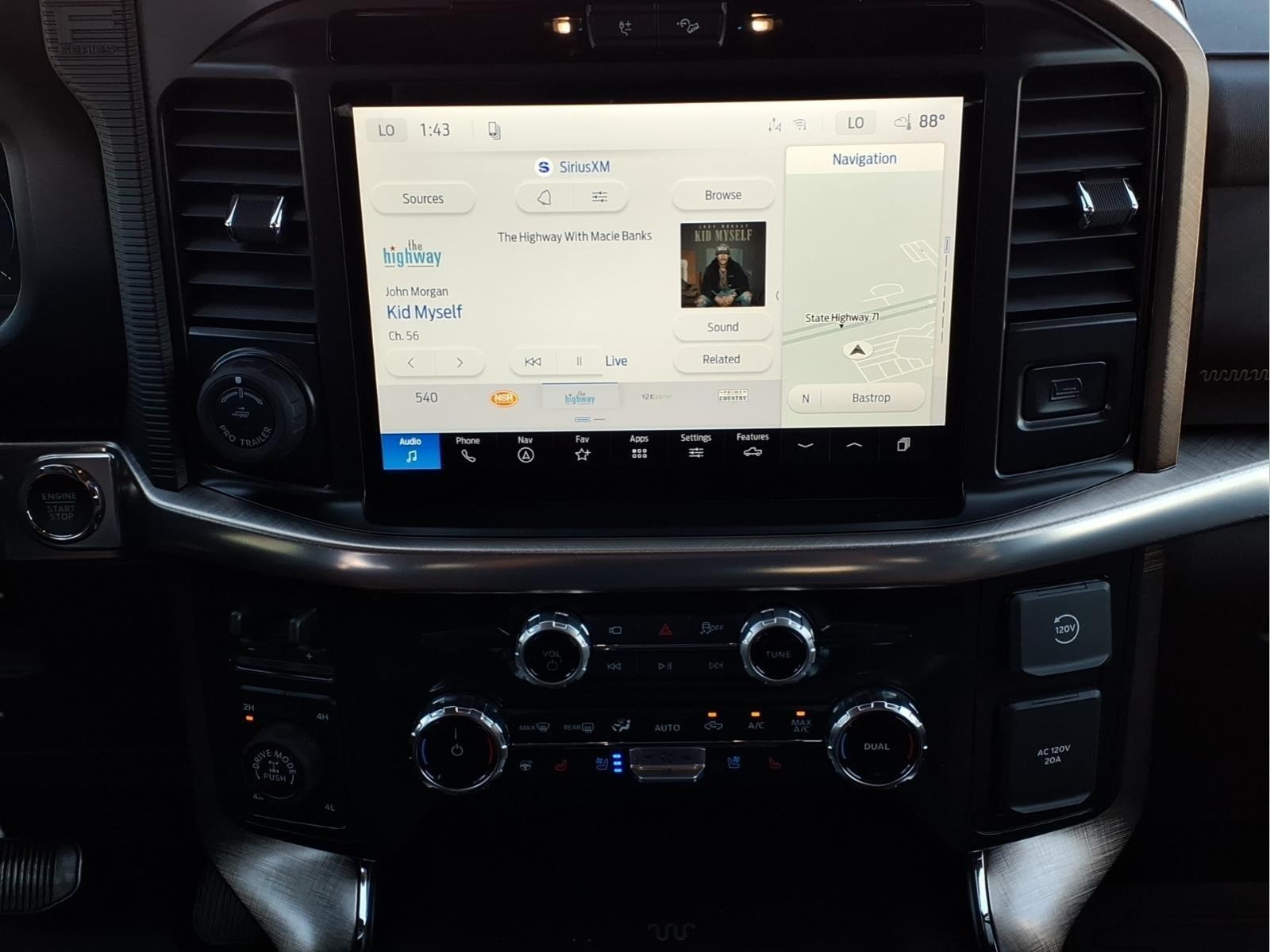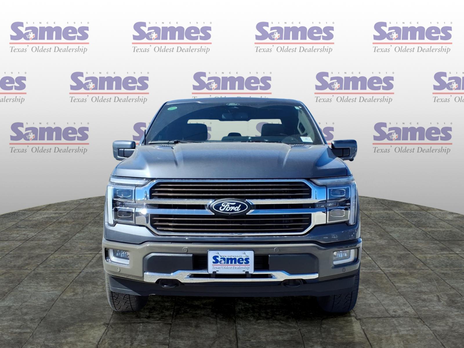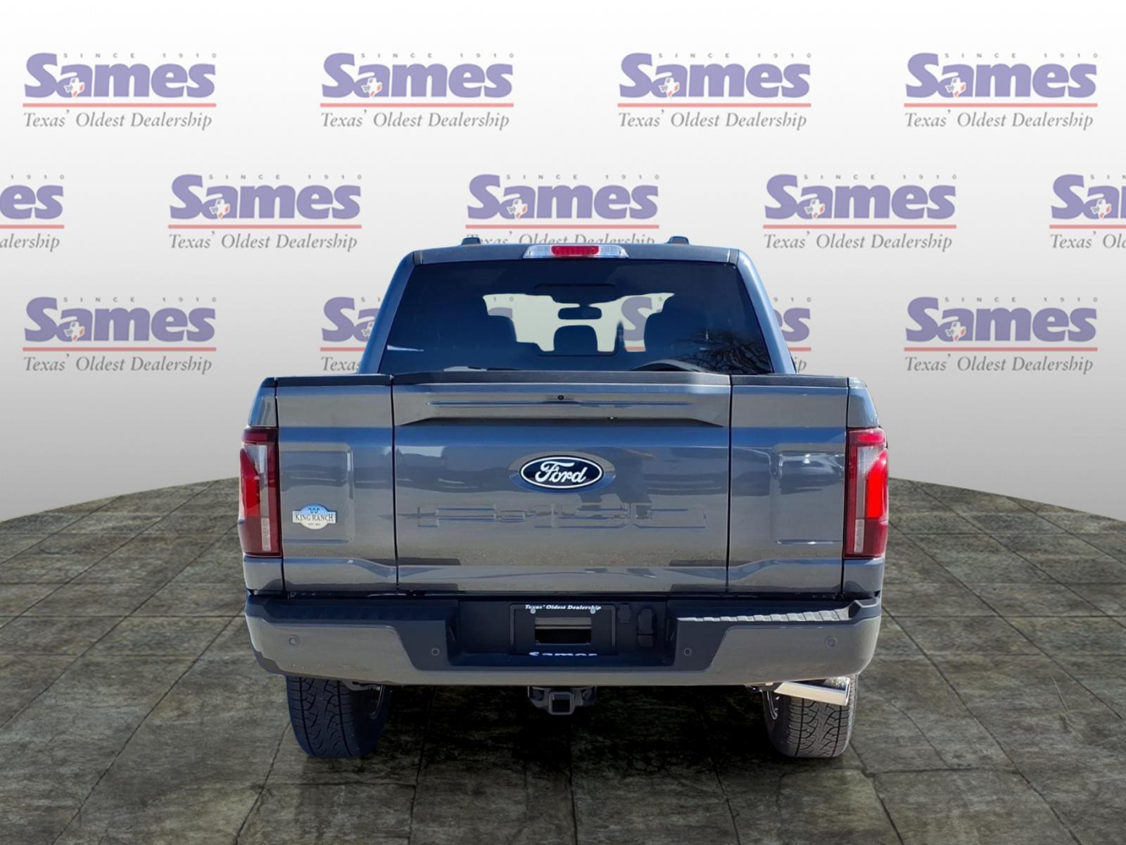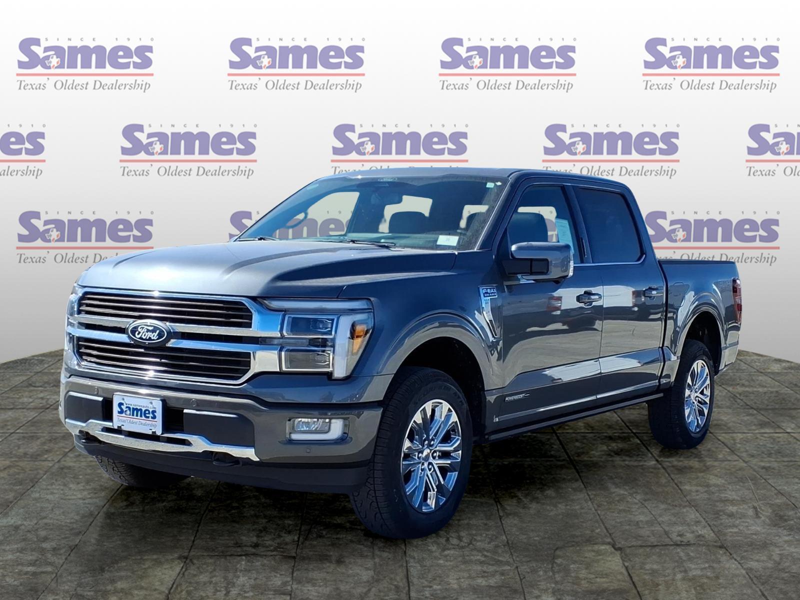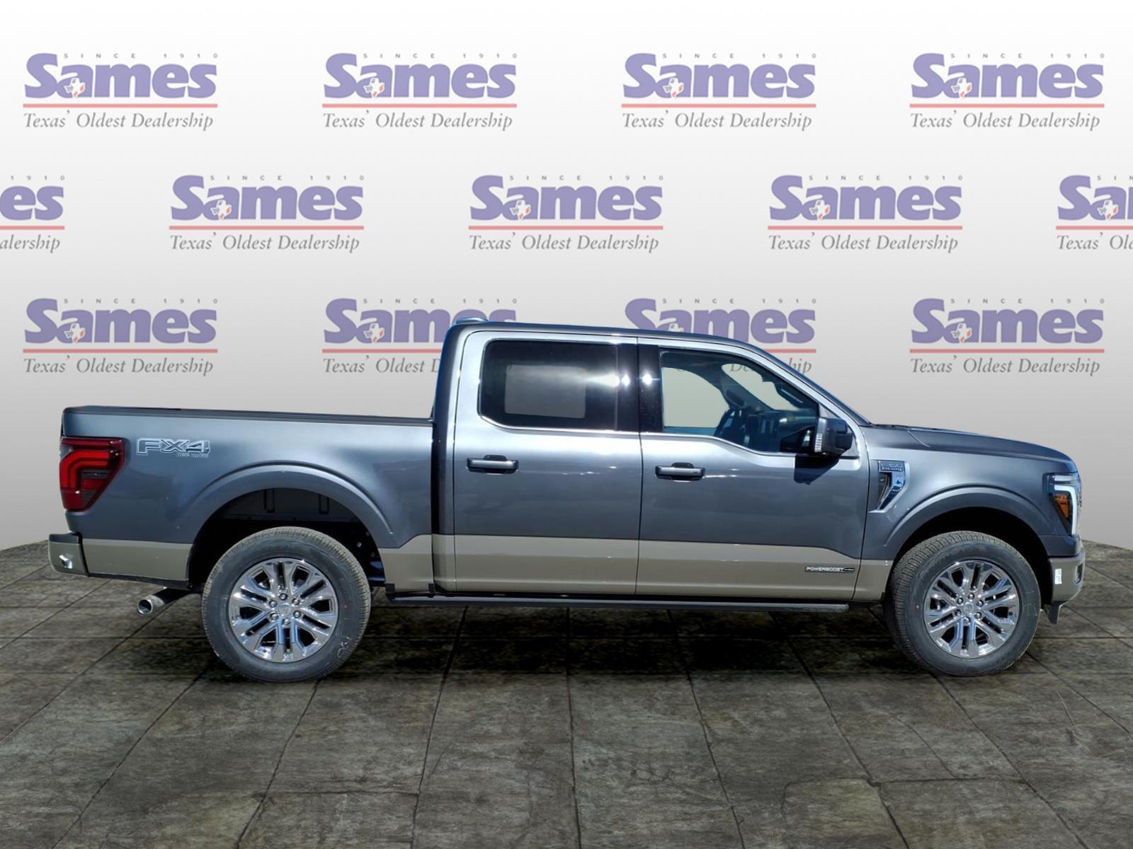 This 2026 Ford F-150 King Ranch in Carbonized Gray Metallic comes with the following features: 3.5L PowerBoost Full-Hybrid V6 10-Speed Automatic 4WD Equipment Group 601A High (King Ranch Multicontour Leather Bucket Seats and Wheels: 20Chrome-Like PVD), Ford Connectivity Package (1-Year Included), FX4 Off-Road Package (4x4 FX4 Off-Road Bodyside Decal, Hill Descent Control, and Off-Road Tuned Front Shock Absorbers), Internet access capable: 5G Modem - Ford Connectivity Package, 4-Wheel Disc Brakes, 8 Speakers, ABS brakes, Adjustable pedals, Air Conditioning, Alloy wheels, AM/FM radio: SiriusXM with 360L, Auto High-beam Headlights, Auto tilt-away steering wheel, Auto-dimming door mirrors, Auto-dimming Rear-View mirror, Automatic temperature control, Brake assist, Chrome wheels, Compass, Delay-off headlights, Driver door bin, Driver vanity mirror, Drivers Side SecuriCode Keyless-Entry Keypad, Dual front impact airbags, Dual front side impact airbags, Electronic Stability Control, Emergency communication system: SYNC 4 911 Assist, Front anti-roll bar, Front Bucket Seats, Front Center Armrest, Front dual zone A/C, Front fog lights, Front License Plate Bracket, Front reading lights, Front wheel independent suspension, Fully automatic headlights, Garage door transmitter, Genuine wood dashboard insert, Head-Up Display, Heated door mirrors, Heated front seats, Heated rear seats, Heated steering wheel, Illuminated entry, Leather steering wheel, Low tire pressure warning, Memory seat, Navigation system: Connected Navigation, Occupant sensing airbag, Outside temperature display, Overhead airbag, Overhead console, Panic alarm, Passenger door bin, Passenger vanity mirror, Pedal memory, Power door mirrors, Power driver seat, Power passenger seat, Power steering, Power windows, Pro Access Tailgate, Pro Power Onboard - 7.2KW, Radio data system, Radio: B&O Sound System by Bang and Olufsen, Rain sensing wipers, Rear reading lights, Rear seat center armrest, Rear step bumper, Rear window defroster, Remote keyless entry, Security system, Speed control, Split folding rear seat, Steering wheel memory, Steering wheel mounted audio controls, SYNC 4 with Enhanced Voice Recognition, Tachometer, Telescoping steering wheel, Tilt steering wheel, Traction control, Trip computer, Turn signal indicator mirrors, Twin Panel Moonroof, Variably intermittent wipers, and Ventilated front seats. Sames Auto Group stores have been in business for over 115 years, as part of the Oldest Auto Group i