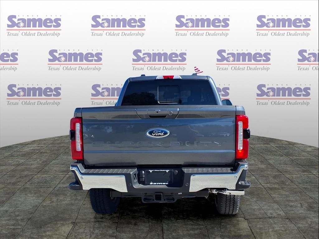 This 2026 Ford F-250SD Lariat in Carbonized Gray Metallic comes with the following features: Power Stroke 6.7L V8 DI 32V OHV Turbodiesel 10-Speed Automatic 4WD Chrome Package (6Angular Bright Anodized Step Bars, Chrome Door Handles, Chrome Exhaust Tip, Unique Chrome Mirror Caps, and Wheels: 20Chrome PVD Aluminum), F-250 >10K GVWR Package, Ford Connectivity Package (1-Year Included), FX4 Off-Road Package (Hill Descent Control, Off-Road Specifically Tuned Shock Absorbers, and Unique FX4 Off-Road Box Decal), Internet access capable: 5G Modem - Ford Connectivity Package, Order Code 608A, 4-Wheel Disc Brakes, 8 Speakers, ABS brakes, Adjustable pedals, Air Conditioning, Alloy wheels, AM/FM radio: SiriusXM with 360L, Auto High-beam Headlights, Auto-dimming Rear-View mirror, Automatic temperature control, BLIS w/Cross-Traffic Alert, Brake assist, Bumpers: chrome, Compass, Delay-off headlights, Driver door bin, Driver vanity mirror, Dual AGM 68 AH Battery, Dual front impact airbags, Dual front side impact airbags, Electronic Stability Control, Emergency communication system: SYNC 4 911 Assist, Engine Block Heater, Flow-Through Console, Front ActiveX Trimmed 40/Console/40 Seats, Front anti-roll bar, Front Bucket Seats, Front Center Armrest, Front dual zone A/C, Front fog lights, Front License Plate Bracket, Front reading lights, Fully automatic headlights, Garage door transmitter, Heated door mirrors, Heated front seats, Heated rear seats, Heated steering wheel, Illuminated entry, Low tire pressure warning, Memory seat, Navigation system: Connected Navigation, Outside temperature display, Overhead airbag, Overhead console, Panic alarm, Passenger door bin, Passenger vanity mirror, Pedal memory, Power door mirrors, Power driver seat, Power passenger seat, Power steering, Power windows, Power-Sliding Rear-Window w/Defrost, Privacy Glass, Radio: B&O Sound System by Bang & Olufsen, Rain sensing wipers, Rear Parking Sensors, Rear reading lights, Rear seat center armrest, Rear step bumper, Rear window defroster, Remote keyless entry, SecuriCode Keyless Entry Keypad (Drivers Side), Security system, SiriusXM w/360L, Speed control, Split folding rear seat, Steering wheel mounted audio controls, SYNC 4 w/Enhanced Voice Recognition, Tachometer, Tailgate Step & Handle, Telescoping steering wheel, Tilt steering wheel, Traction control, Trip computer, Turn signal indicator mirrors, Upfitter Switches (6), Variably intermittent wipers, Ventilated front seats, and Wheels: 18Bri