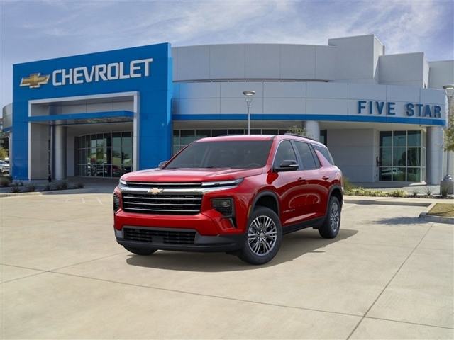 New Feature. Recent Arrival! 20/27 City/Highway MPG 2026 Chevrolet Traverse LT 1LT 2.5L DOHC 8-Speed Automatic FWD ***Dealer add ons and accessories are not included in the advertised price. Visit us at www.sampacksfivestarchevrolet.com for more details. This 2026 Radiant Red Tintcoat Chevrolet Traverse LT FWD is well equipped and includes these features and benefits: Driver Confidence Package (HD Surround Vision, Key Card, Power Outlet, Rear Camera Mirror, Rear Pedestrian Alert, and Traffic Sign Recognition), Preferred Equipment Group 1LT, 3rd row seats: split-bench, 4-Way Manual Front Passenger Seat Adjuster, 4-Wheel Disc Brakes, 6 Speakers, 6-Speaker Audio System Feature, 8-Passenger Seating (2-3-3 Seating Configuration), 8-Way Power Driver Seat Adjuster, ABS brakes, Air Conditioning, Alloy wheels, AM/FM radio: SiriusXM with 360L, Apple CarPlay/Android Auto, Auto High-beam Headlights, Automatic temperature control, Brake assist, Bumpers: body-color, Child-Seat-Sensing Airbag, Compass, Delay-off headlights, Deleted Mobile Service Plus, Driver door bin, Driver vanity mirror, Dual front impact airbags, Dual front side impact airbags, Electronic Stability Control, Emergency communication system: OnStar, Four wheel independent suspension, Front anti-roll bar, Front Bucket Seats, Front Center Armrest, Front dual zone A/C, Front reading lights, Fully automatic headlights, Heated door mirrors, Heated Driver & Front Passenger Seats, Heated front seats, Heated steering wheel, Illuminated entry, Low tire pressure warning, Navigation System, Occupant sensing airbag, Outside temperature display, Overhead airbag, Overhead console, Panic alarm, Passenger door bin, Passenger vanity mirror, Power door mirrors, Power driver seat, Power Liftgate, Power steering, Power windows, Premium Cloth Seat Trim, Radio data system, Radio: Audio System w/17.7Diagonal Display, Rear air conditioning, Rear anti-roll bar, Rear reading lights, Rear window defroster, Rear window wiper, Remote keyless