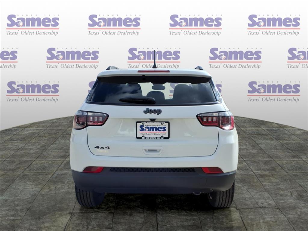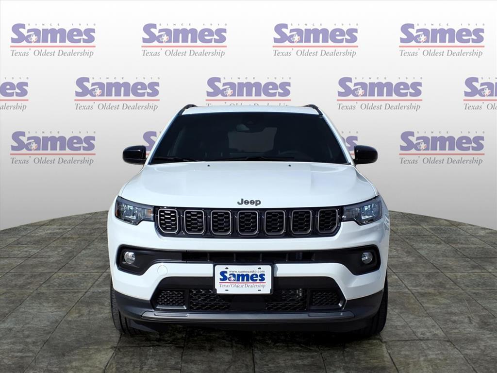 This 2026 Jeep Compass Latitude in Bright White Clearcoat comes with the following features: 2.0L I4 DOHC 8-Speed Automatic 4WD Quick Order Package 29N Altitude (10.1Touchscreen Display, Altitude Special Edition, Black Day Light Opening Moldings, Gloss Black Surround/Neutral Gray Rings, Neutral Gray Exterior Badging, Piano Black Interior Accents, Sliding Sun Visors with Illuminated Mirrors, and Wheels: 18x 7Gloss Black Painted Aluminum), 17x 7Aluminum Wheels, 3.73 Final Drive Ratio, 4-Wheel Disc Brakes, 4G LTE Wi-Fi Hot Spot, 6 Speakers, ABS brakes, Air Conditioning, AM/FM radio: SiriusXM, Auto High-beam Headlights, Automatic temperature control, Bluetooth Handsfree Phone and Audio, Brake assist, Bumpers: body-color, Compass, Delay-off headlights, Driver door bin, Driver vanity mirror, Dual front impact airbags, Dual front side impact airbags, Electronic Stability Control, Emergency communication system: SiriusXM Guardian, Four wheel independent suspension, Front anti-roll bar, Front Bucket Seats, Front Center Armrest w/Storage, Front fog lights, Front License Plate Bracket, Front reading lights, Fully automatic headlights, Global Telematics Box Module, Heated door mirrors, Heated front seats, Heated steering wheel, Illuminated entry, Knee airbag, Leather Shift Knob, Leather steering wheel, Low tire pressure warning, Occupant sensing airbag, Outside temperature display, Overhead airbag, Overhead console, Panic alarm, ParkView Rear Back-Up Camera, Passenger door bin, Passenger vanity mirror, Power door mirrors, Power steering, Power windows, Premium audio system: UConnect 5, Premium Cloth/Vinyl Bucket Seats, Radio: Uconnect 5 with 8.4Display, Rear anti-roll bar, Rear seat center armrest, Rear window defroster, Rear window wiper, Remote keyless entry, Security system, SiriusXM Satellite Radio, Speed control, Split folding rear seat, Spoiler, Steering wheel mounted audio controls, Tachometer, Telescoping steering wheel, Tilt steering wheel, Traction control, Trip computer, Variably intermittent wipers, and Wheels: 19x 7.5Aluminum Painted. Sames Auto Group stores have been in business for over 115 years, as part of the Oldest Auto Group in Texas were committed to providing exceptional service before, during, and after your purchase. Our expert team at Sames Chrysler Dodge Jeep Ram of Bastrop will ensure you drive away completely satisfied. Schedule your virtual consultation or test drive today. No hassle remote delivery to Houston, Austin and S