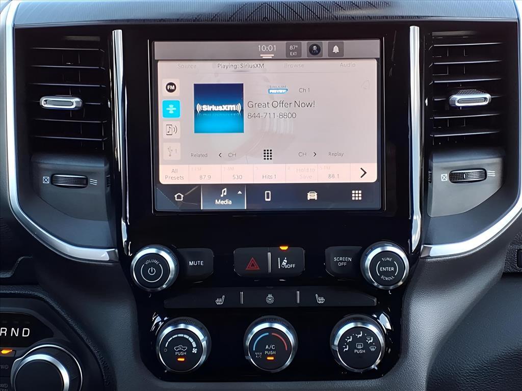 This 2026 Ram 1500 Big Horn/Lone Star in Granite Crystal Metallic Clearcoat comes with the following features: 3.0L I6 8-Speed Automatic 4WD Big Horn Level 1 Equipment Group (115V Auxiliary Power Outlet, 2nd Row In Floor Storage Bins, 3 Rear Seat Head Restraints, 4 Way Front Headrests, 400W Inverter, Auto Power-Folding Mirrors, Auto-Dimming Exterior Driver Mirror, Auto-Dimming Rear-View Mirror, Black Exterior Mirrors, Black Premium Power Mirrors, Body Color Fender Flares, Bucket Seats, Center Console Parts Module, Convex Wide-Angle Exterior Mirror Insert, Deluxe Cloth Bucket Seats, Exterior Mirrors Courtesy Lamps, Exterior Mirrors w/Heating Element, Exterior Mirrors w/Supplemental Signals, Front Seat Back Map Pockets, Full Length Floor Console, Glove Box Lamp, Heated Front Seats, Heated Steering Wheel, Leather Wrapped Steering Wheel, Manual Adjust 4-Way Front Passenger Seat, Power 2-Way Driver Lumbar Adjust, Power Adjust 8-Way Driver Seat, Power Adjustable Pedals, Rear 60/40 Folding Seat, Rear Center Armrest, Rear Dome w/On/Off Switch Lamp, Rear Power Sliding Window, Rear Window Defroster, Secondary Active Grille Shutters, SiriusXM Radio Service, SiriusXM Satellite Radio, Steering Wheel Mounted Audio Controls, and Sun Visors w/Illuminated Vanity Mirrors), Quick Order Package 21R Lone Star (Regional) (Lone Star Badge), Sport Appearance Package (Black Interior Accents, Body Color Door Handles, Body Color Front Bumper, Body Color Rear Bumper w/Step Pads, Body Color Tailgate Handle, Grille Surround 1 Body Color Texture 1 Black, and RAM Grille Badge - Chrome), 3.21 Rear Axle Ratio, 3.55 Rear Axle Ratio, 4-Wheel Disc Brakes, 4G LTE Wi-Fi Hot Spot, 6 Speakers, ABS brakes, Air Conditioning, Alloy wheels, AM/FM radio, Apple CarPlay, Apple CarPlay/Android Auto, Auto High-beam Headlights, Brake assist, Bumpers: chrome, Cloth Bucket Seats, Compass, Connectivity - US/Canada, Delay-off headlights, Driver door bin, Dual front impact airbags, Dual front side impact airbags, Electronic Stability Control, Front anti-roll bar, Front Bucket Seats, Front Center Armrest w/Storage, Front fog lights, Front License Plate Bracket, Front reading lights, Front wheel independent suspension, Fully automatic headlights, Global Telematics Box Module (TBM), Google Android Auto, GPS Antenna Input, Heated door mirrors, Illuminated entry, Integrated Center Stack Radio, Integrated Voice Command w/Bluetooth, Low tire pressure warning, Manual Adjust 4-Way Driver Seat, Manual Folding Exterior Mi