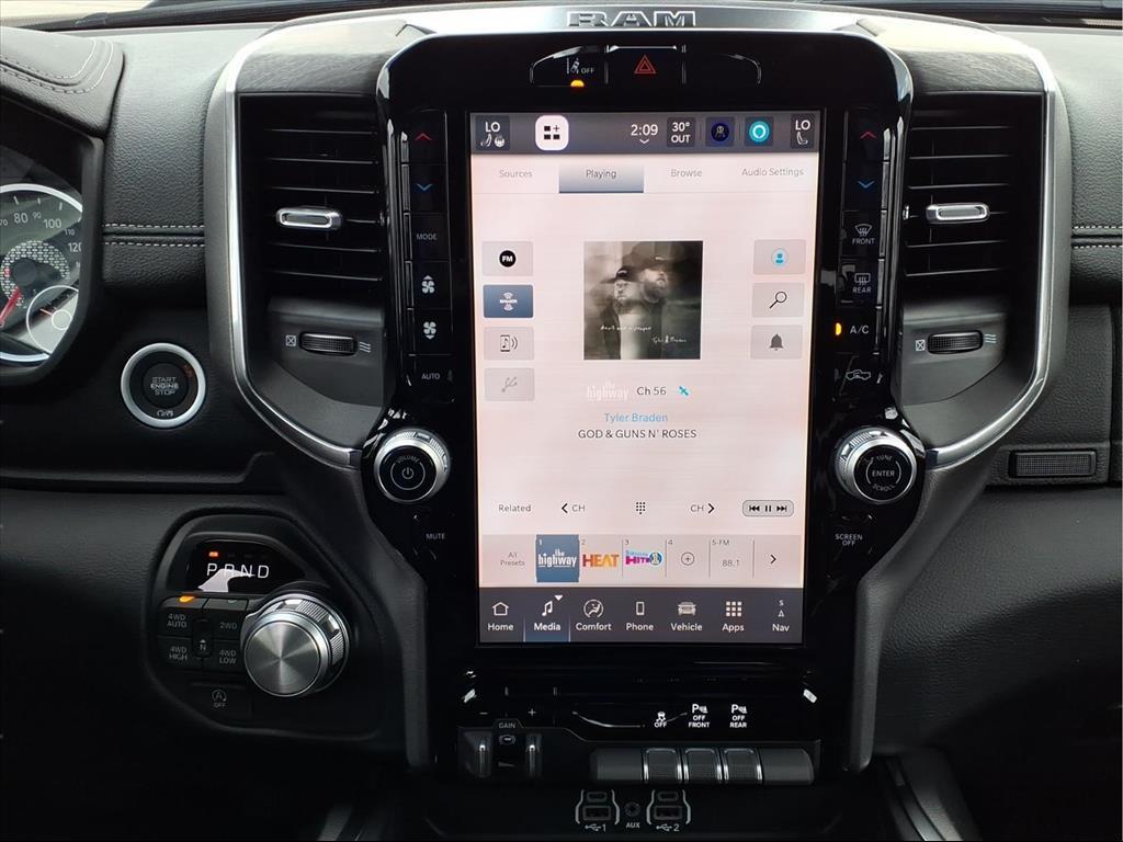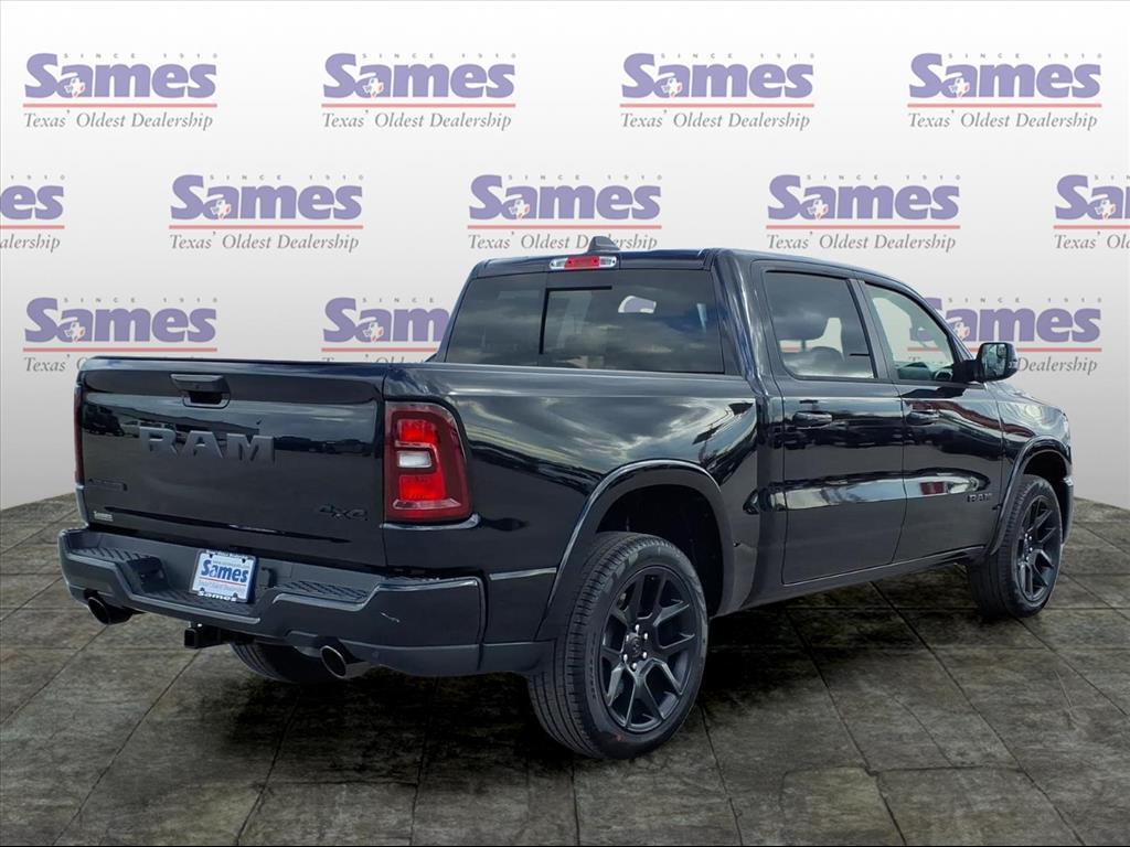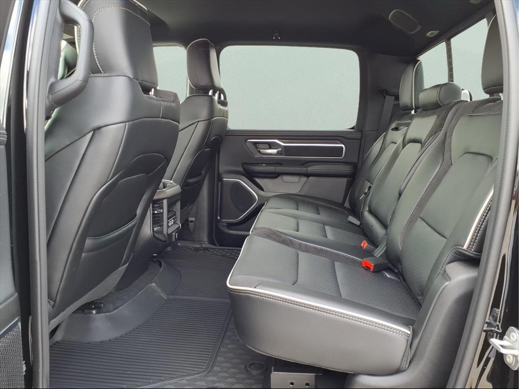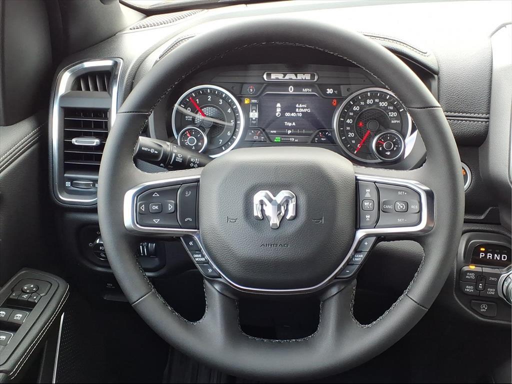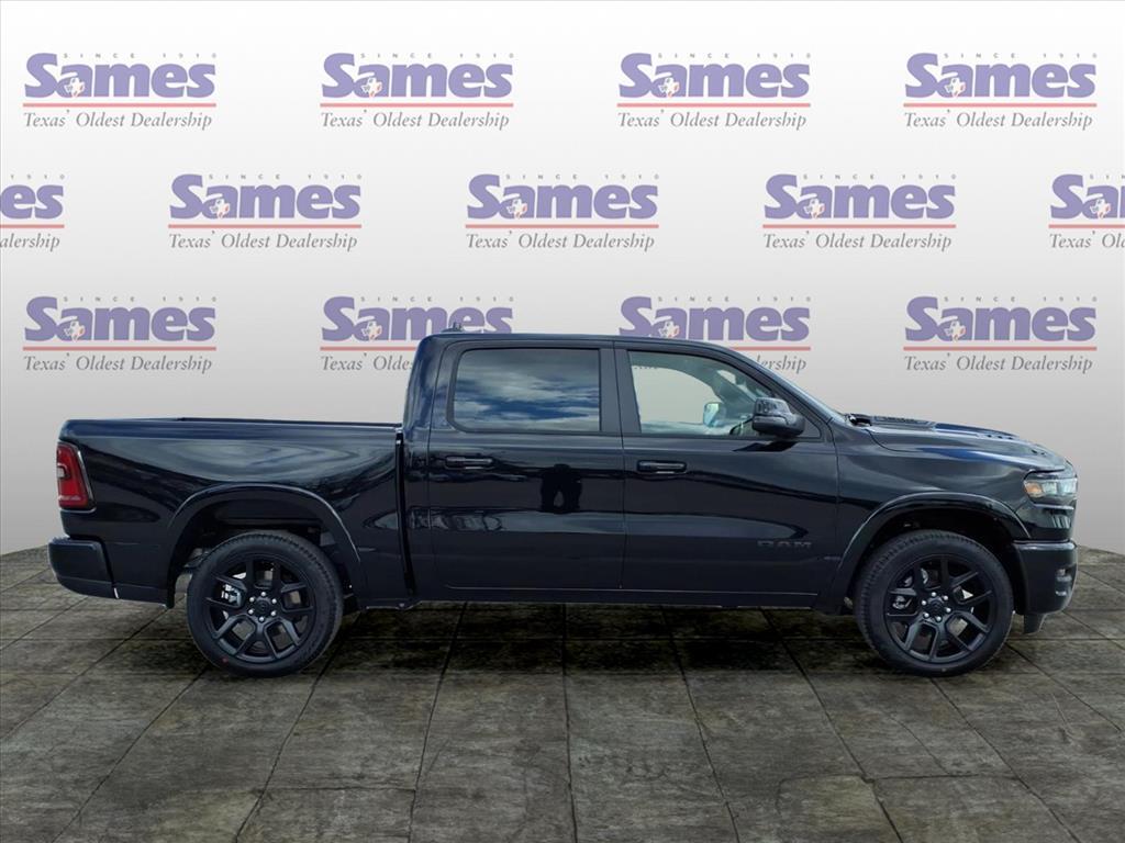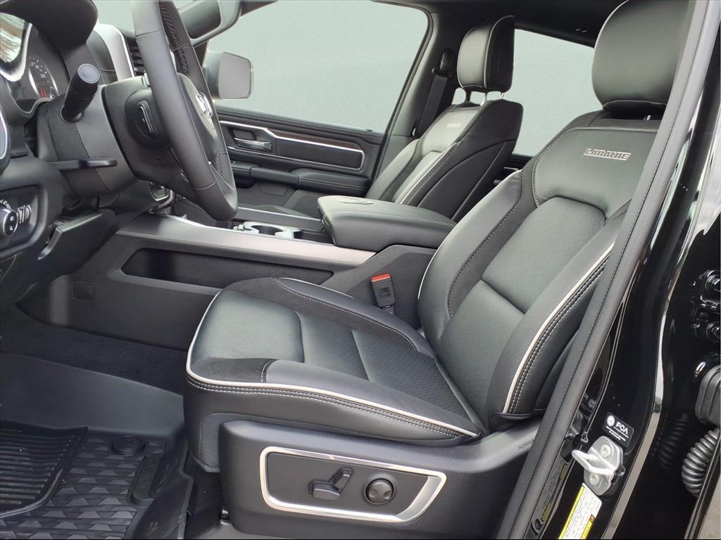 This 2026 Ram 1500 Laramie in Diamond Black Crystal Pearlcoat comes with the following features: 3.0L I6 8-Speed Automatic 4WD Laramie Level 1 Equipment Group (Rain Sensitive Windshield Wipers and Remote Tailgate Release), Night Edition (Accent Color Door Handles, Accent Color Premium Power Mirrors, Accent Color Tailgate Handle, Anti-Spin Differential Rear Axle, Auto Power-Folding Mirrors, Auto-Dimming Exterior Driver Mirror, Black Exterior Truck Badging, Black Headlamp Bezels, Black Interior Accents, Black Painted Exterior Mirrors Caps, Black Tail Lamp Bezels, Body Color Front Bumper, Body Color Rear Bumper with Step Pads, Convex Wide-Angle Exterior Mirror Insert, Dual Exhaust with Black Tips, Exterior Mirrors Approach Lamps, Exterior Mirrors Courtesy Lamps, Exterior Mirrors with Heating Element, Exterior Mirrors with Memory, Exterior Mirrors with Supplemental Signals, Grille Surround 3 Black Texture 2 Black, Pirelli Brand Tires, Proximity Approach/Departure Lamps, RAM Grille Badge - Black, Sport Performance Hood, and Wheels: 22x 9Forged Aluminum), Quick Order Package 21H Laramie, 10 Speakers, 3.55 Rear Axle Ratio, 4-Wheel Disc Brakes, 4G LTE Wi-Fi Hot Spot, ABS brakes, Active Noise Control System, Air Conditioning, Alloy wheels, AM/FM radio: SiriusXM with 360L, Apple CarPlay/Android Auto, Audio memory, Auto High-beam Headlights, Auto-dimming door mirrors, Auto-dimming Rear-View mirror, Automatic temperature control, Brake assist, Bumpers: chrome, Chrome Exterior Mirrors, Compass, Connected Travel and Traffic Services, Connectivity - US/Canada, Delay-off headlights, Driver door bin, Driver vanity mirror, Dual front impact airbags, Dual front side impact airbags, Electronic Stability Control, Front anti-roll bar, Front Bucket Seats, Front Center Armrest w/Storage, Front dual zone A/C, Front fog lights, Front License Plate Bracket, Front reading lights, Front wheel independent suspension, Fully automatic headlights, Garage door transmitter, GPS Navigation, Heated door mirrors, Heated front seats, Heated rear seats, Heated steering wheel, Illuminated entry, Integrated Center Stack Radio, Integrated Voice Command with Bluetooth, Leather steering wheel, Leather Trimmed Bucket Seats, Low tire pressure warning, Memory seat, MOPAR Front and Rear Rubber Floor Mats, Navigation System, Occupant sensing airbag, Off-Road Information Pages, Outside temperature display, Overhead airbag, Overhead console, Panic alarm, ParkView Rear Back-Up Camera, Passenger door bin,