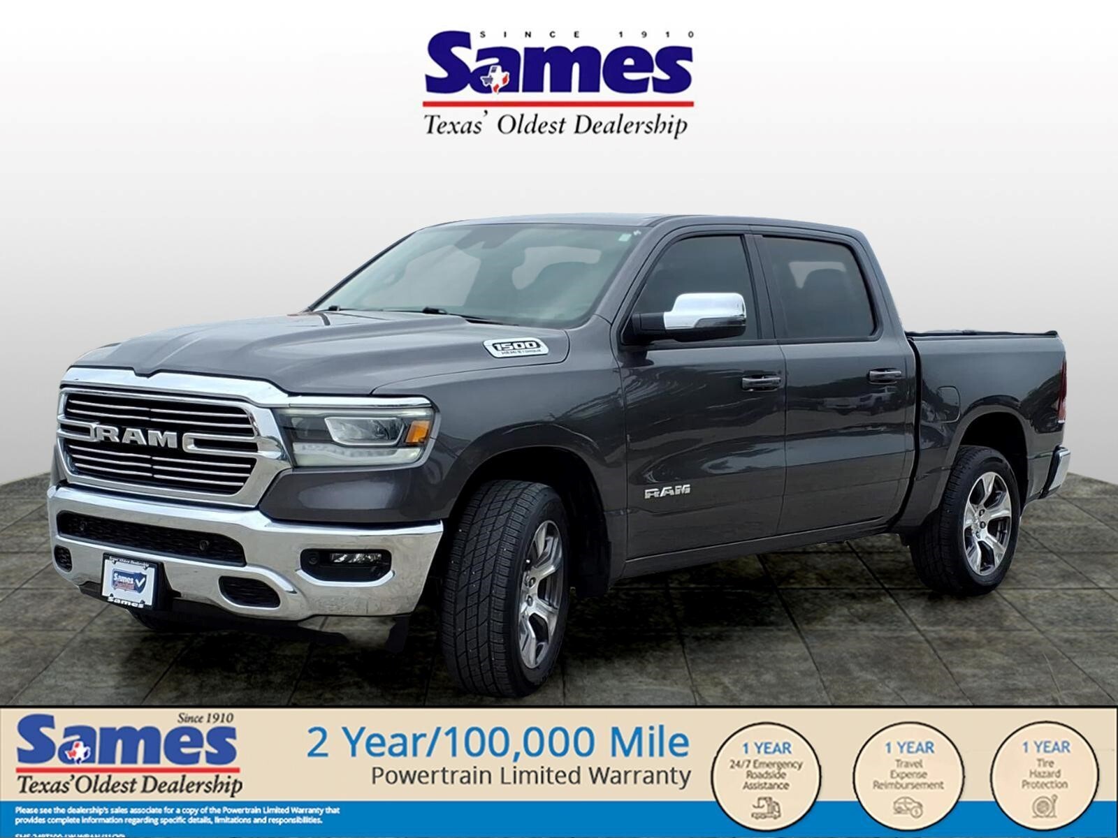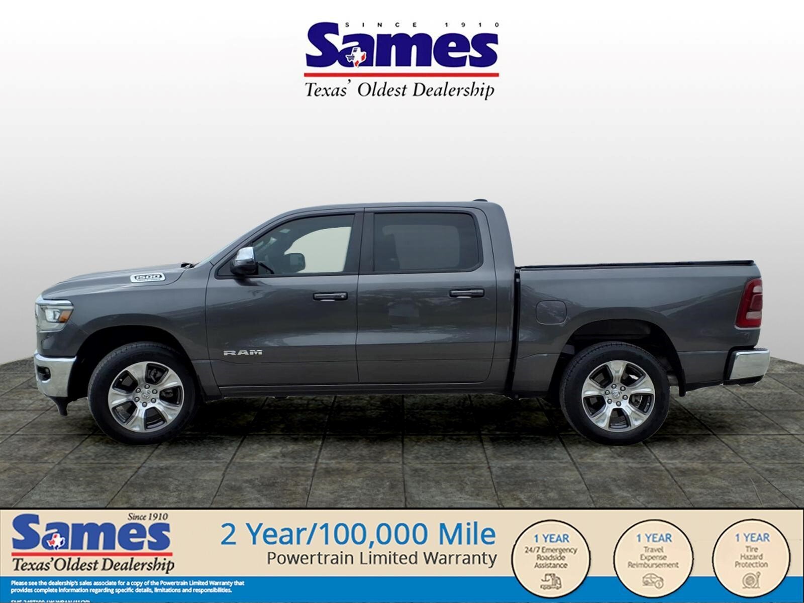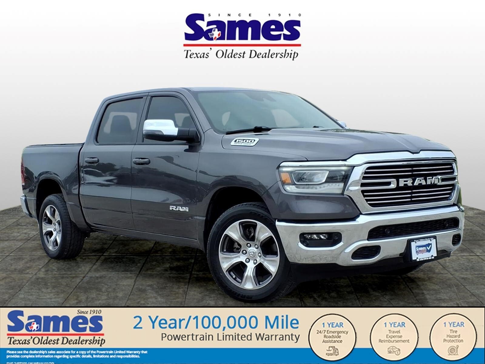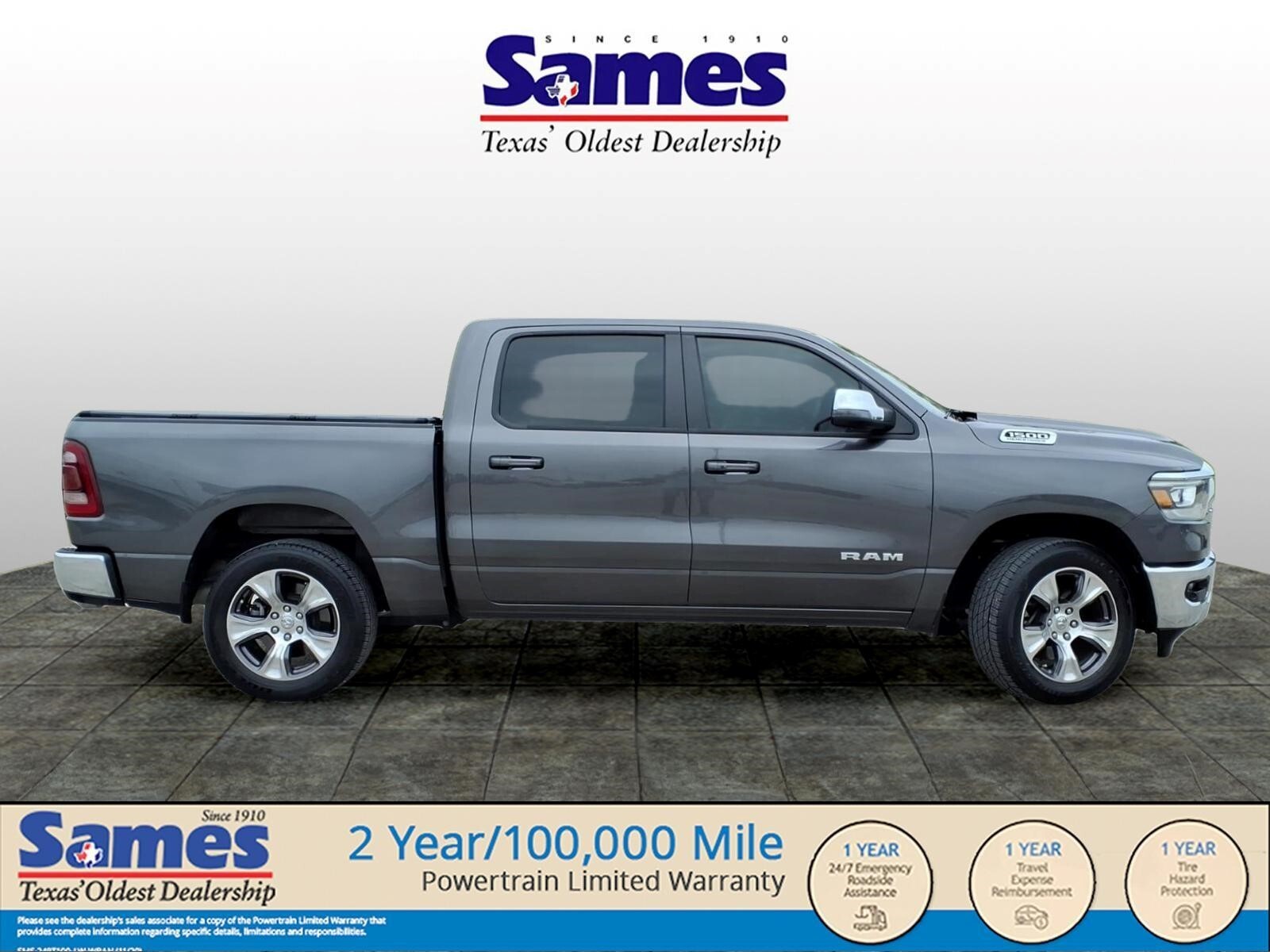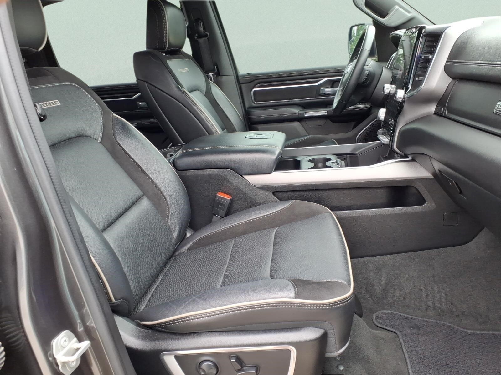 This 2024 Ram 1500 Laramie in Granite Crystal Metallic Clearcoat comes with the following features: HEMI 5.7L V8 Multi Displacement VVT eTorque 8-Speed Automatic 4WD Laramie Level 1 Equipment Group (2nd Row In Floor Storage Bins, 4G LTE Wi-Fi Hot Spot, Apple CarPlay, Auto High Beam Headlamp Control, Blind Spot & Cross Path Detection, Connected Travel & Traffic Services, Connectivity - US/Canada, Electric Shift-On-Demand Transfer Case, Foam Bottle Insert (Door Trim Panel), For Details, Visit DriveUconnect.com, For More Info, Call 800-643-2112, Front Door Accent Lighting, Front LED Fog Lamps, Global Telematics Box Module (TBM), Google Android Auto, GPS Navigation, HD Radio, Heated Second Row Seats, Integrated Voice Command w/Bluetooth, LED Reflector Headlamps, Power Adjustable Pedals w/Memory, Radio: Uconnect 5 Nav w/12.0Display, Rain Sensitive Windshield Wipers, Rear Door Accent Lighting, Rear Power Sliding Window, Rear Window Defroster, Remote Tailgate Release, SiriusXM Radio Service, SiriusXM w/360L, and USB Host Flip), Quick Order Package 27H Laramie, 10 Speakers, 3 Rear Seat Head Restraints, 3.21 Rear Axle Ratio, 4 Way Front Headrests, 4-Wheel Disc Brakes, 48V Belt Starter Generator, ABS brakes, Air Conditioning, Alloy wheels, AM/FM radio: SiriusXM with 360L, Anti-Spin Differential Rear Axle, Apple CarPlay/Android Auto, Audio memory, Auto-dimming door mirrors, Auto-Dimming Exterior Driver Mirror, Auto-dimming Rear-View mirror, Automatic temperature control, Brake assist, Bumpers: chrome, Chrome Exterior Mirrors, Class IV Receiver Hitch, Compass, Convex Wide-Angle Exterior Mirror Insert, Delay-off headlights, Driver door bin, Driver Seat Memory, Driver vanity mirror, Dual front impact airbags, Dual front side impact airbags, Electronic Stability Control, Exterior Mirrors Courtesy Lamps, Exterior Mirrors w/Heating Element, Exterior Mirrors w/Memory, Exterior Mirrors w/Supplemental Signals, Front anti-roll bar, Front Center Armrest w/Storage, Front dual zone A/C, Front fog lights, Front License Plate Bracket, Front reading lights, Front Seat Back Map Pockets, Front wheel independent suspension, Fully automatic headlights, Garage door transmitter, Heated door mirrors, Heated Front Seats, Heated front seats, Heated Steering Wheel, Heated steering wheel, Illuminated entry, Leather steering wheel, Leather Trim 40/20/40 Bench Seat, Low tire pressure warning, Memory seat, Navigation System, Occupant sensing airbag, Outside temperature display, Overhead airbag,