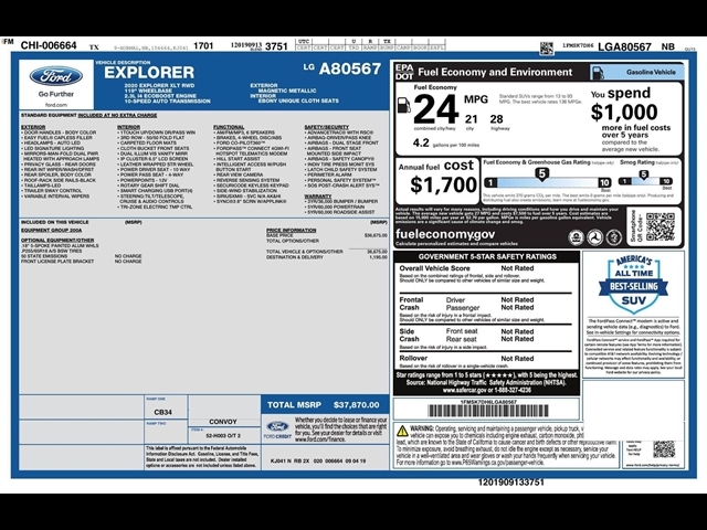 SUMMARY Clean Carfax! One Owner! EQUIPMENT GROUP 200A, 2.3L I4, 10-SPEED AUTO TRANSMISSION, RWD, KEYLESS ENTRY, PUSH BUTTON START, REMOTE START, BUCKET SEATS, SYNC 3, 8 IN SCREEN DISPLAY, FORD CO-PILOT360T, FORDPASST CONNECT 4GWI-FI, HOTSPOT TELEMATICS MODEM, REAR VIEW CAMERA, POWER DRIVERS SEAT, POWER PASSENGER SEAT, LED HEADLAMPS, LED SIGNATURE LIGHTING, LED TAILLAMPS, HILL START ASSIST, REVERSE SENSING SYSTEM, PERSONAL SAFETY SYSTEM, SOS POST-CRASH ALERT SYSTEM EQUIPMENT Safety and Security The vehicle is equipped with a system that senses, and then prepares, the vehicle and/or occupants, for an impending forward collision. The vehicle constantly monitors the roadway in front of the vehicle and identifies and tracks pedestrians on an interior display. If the system determines a likely impact, it will automatically take preventative steps to avoid hitting the pedestrian. The vehicle is equipped with a camera that displays an image of the area behind the vehicle on an interior display. The camera is equipped with its own washer.Technology and Telematics Without the need for a manufacturer specific app to be installed on the smart device, the vehicle infotainment system can access and control functions of a smart device physically plugged-into the vehicle. Mobile devices can wirelessly connect to the internet through the vehicles private mobile network. PACKAGES Equipment Group 200A10-Speed Automatic Transmission with SelectShiftUnique Cloth Captains Chairs2.3L EcoBoost I-4 Engine3.58 Non-Limited-slip Rear Axle RatioTBD GVWRAM/FM StereoP255/65R18 AS BSW Tires18 5-Spoke Sparkle Silver-Painted Aluminum W