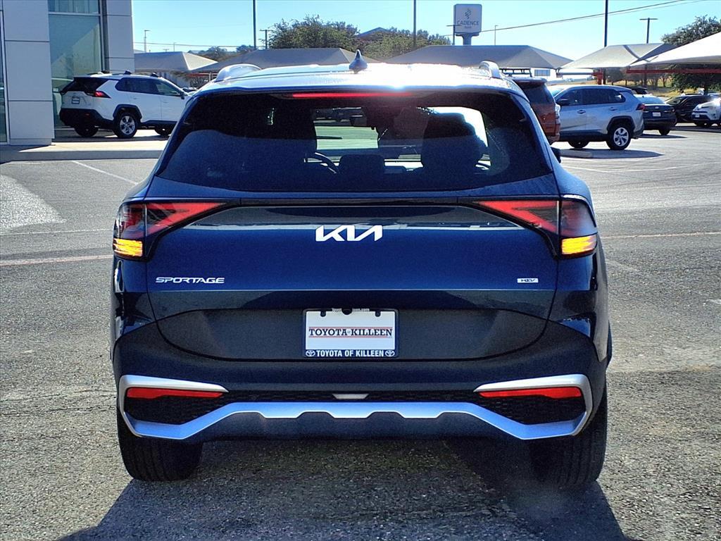CARFAX One-Owner. Clean CARFAX. Vesta Blue 2025 Kia Sportage Hybrid EX AWD 6-Speed Automatic I4 Toyota of Killeens promise is that every interaction with a member of Toyota of Killeen will be simple, straight forward, and satisfaction guaranteed! Odometer is 1529 miles below market average! 38/38 City/Highway MPG Navigation System, 4-Wheel Disc Brakes, 6 Speakers, ABS brakes, Air Conditioning, Alloy wheels, AM/FM radio: SiriusXM, Apple CarPlay & Android Auto, Auto High-beam Headlights, Automatic temperature control, Brake assist, Bumpers: body-color, Cargo Mat w/Seatback Protection, Carpet Floor Mats, Compass, Delay-off headlights, Driver door bin, Driver vanity mirror, Dual front impact airbags, Dual front side impact airbags, Dual/Hybrid w/o Audio Cargo Net, Electronic Stability Control, Emergency communication system, Four wheel independent suspension, Front anti-roll bar, Front Bucket Seats, Front Center Armrest, Front dual zone A/C, Fully automatic headlights, Heated door mirrors, Heated Front Bucket Seats, Heated front seats, Illuminated entry, Leather steering wheel, Leatherette Seat Trim, Low tire pressure warning, Occupant sensing airbag, Outside temperature display, Overhead airbag, Overhead console, Panic alarm, Passenger door bin, Passenger vanity mirror, Power door mirrors, Power driver seat, Power steering, Power windows, Radio: AM/FM/HD Audio System, Rain sensing wipers, Rear anti-roll bar, Rear seat center armrest, Rear side impact airbag, Rear window defroster, Rear window wiper, Remote keyless entry, Security system, Speed control, Speed-sensing steering, Split folding rear seat, Spoiler, Steering wheel mounted audio controls, Tachometer, Telescoping steering wheel, Tilt steering wheel, Traction control, Trip computer, Turn signal indicator mirrors, Variably intermittent wipers, and Wheels: 18x 7.5J Machined Alloy.